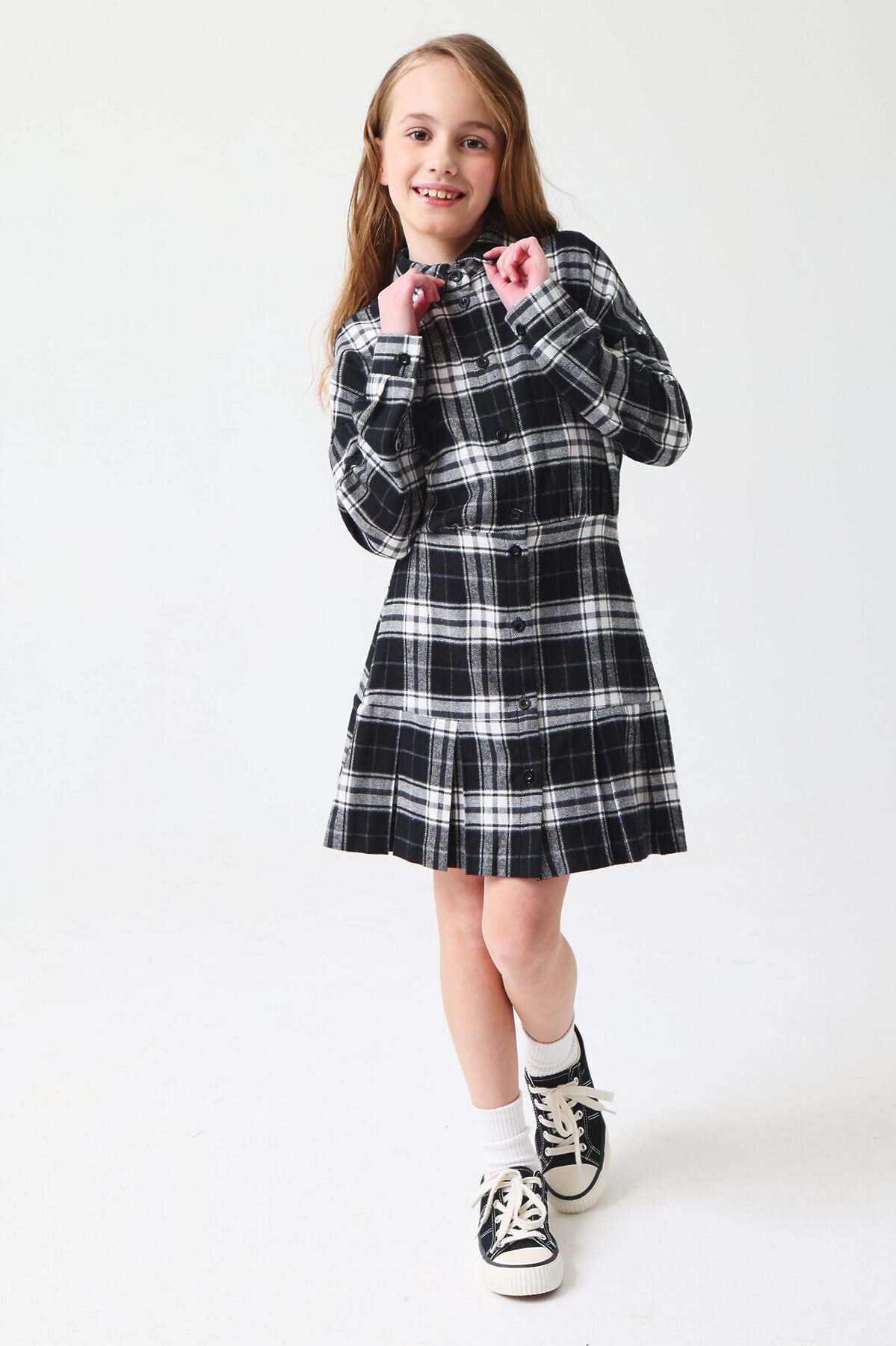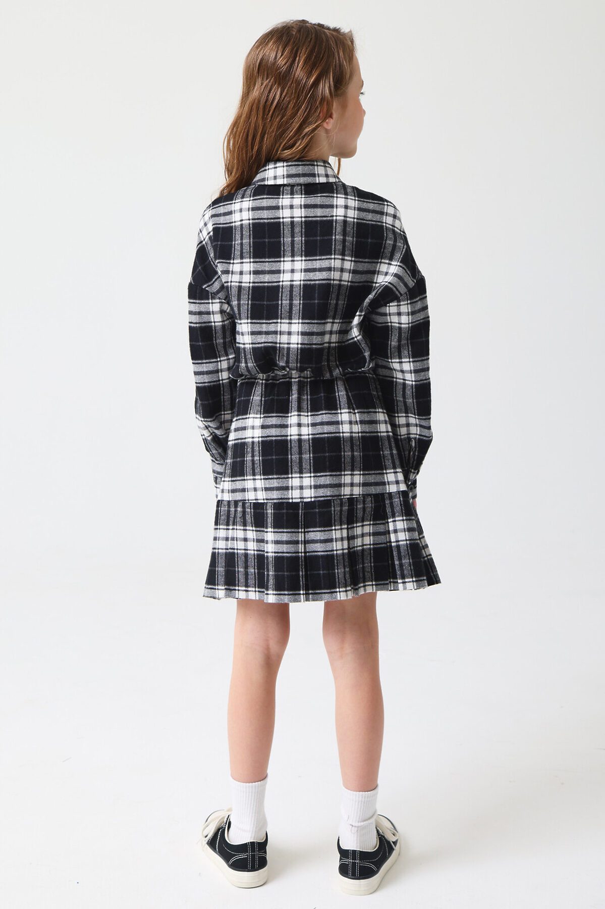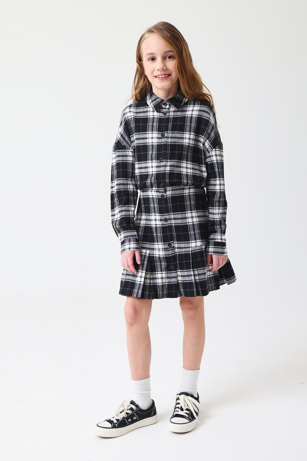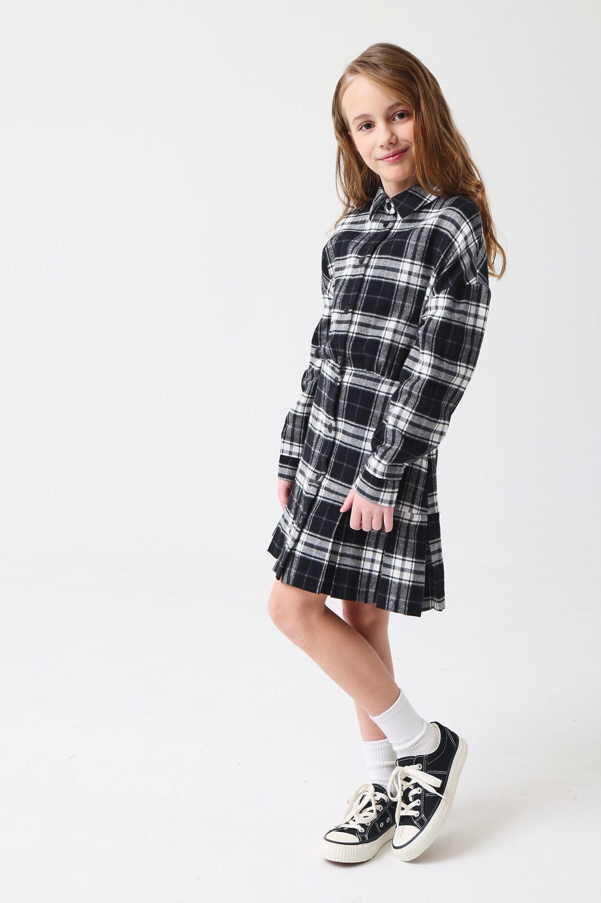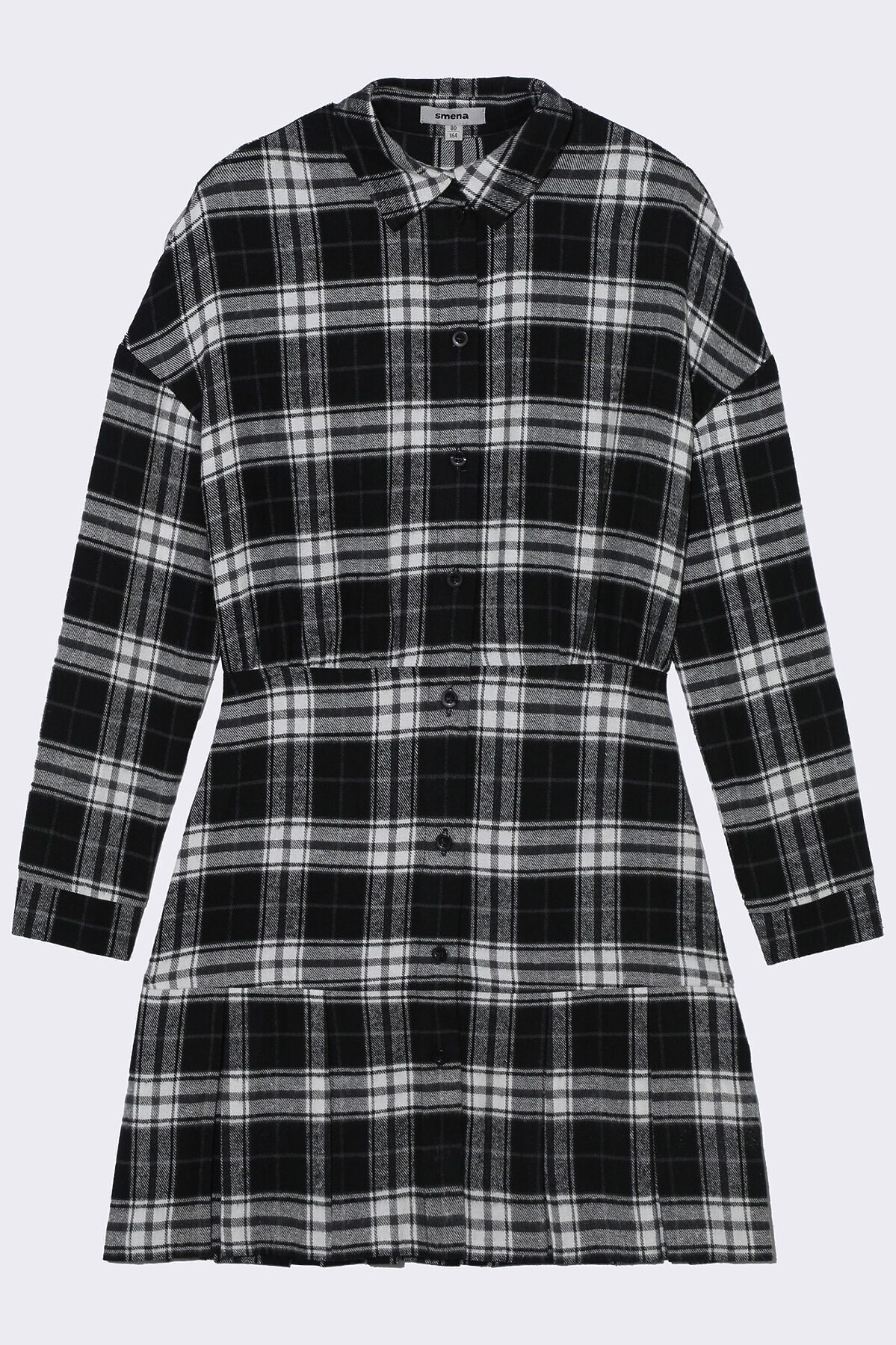 Приталенное платье-рубашка в клетку. Модель дополнена центральную застежкой на пуговицы и длинными прямыми рукава с манжетами. Юбка платья из верхней расклешенной части и нижней части - в складку. Фланель защитит от холода, а трендовая клетка впишется как в кэжуал-образ, так и в женственный лук. Доступно в 2 цветах.