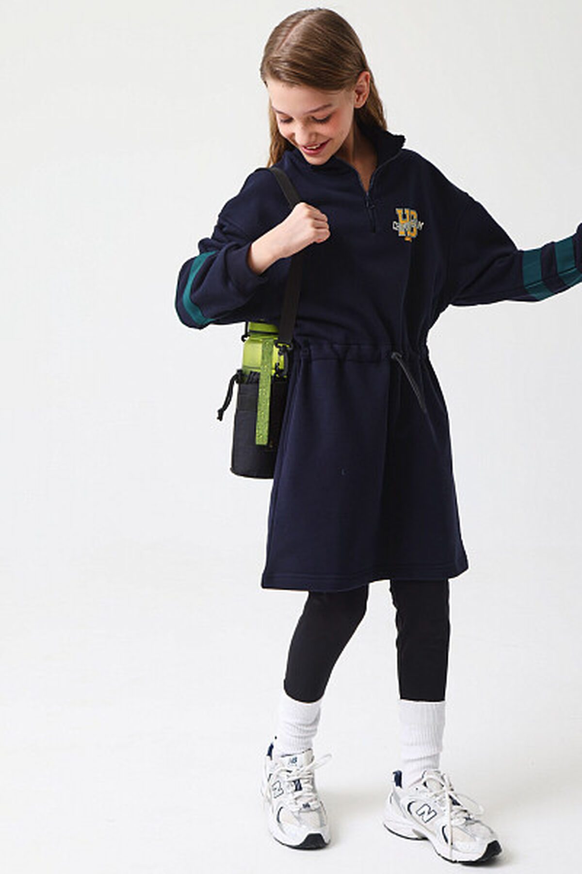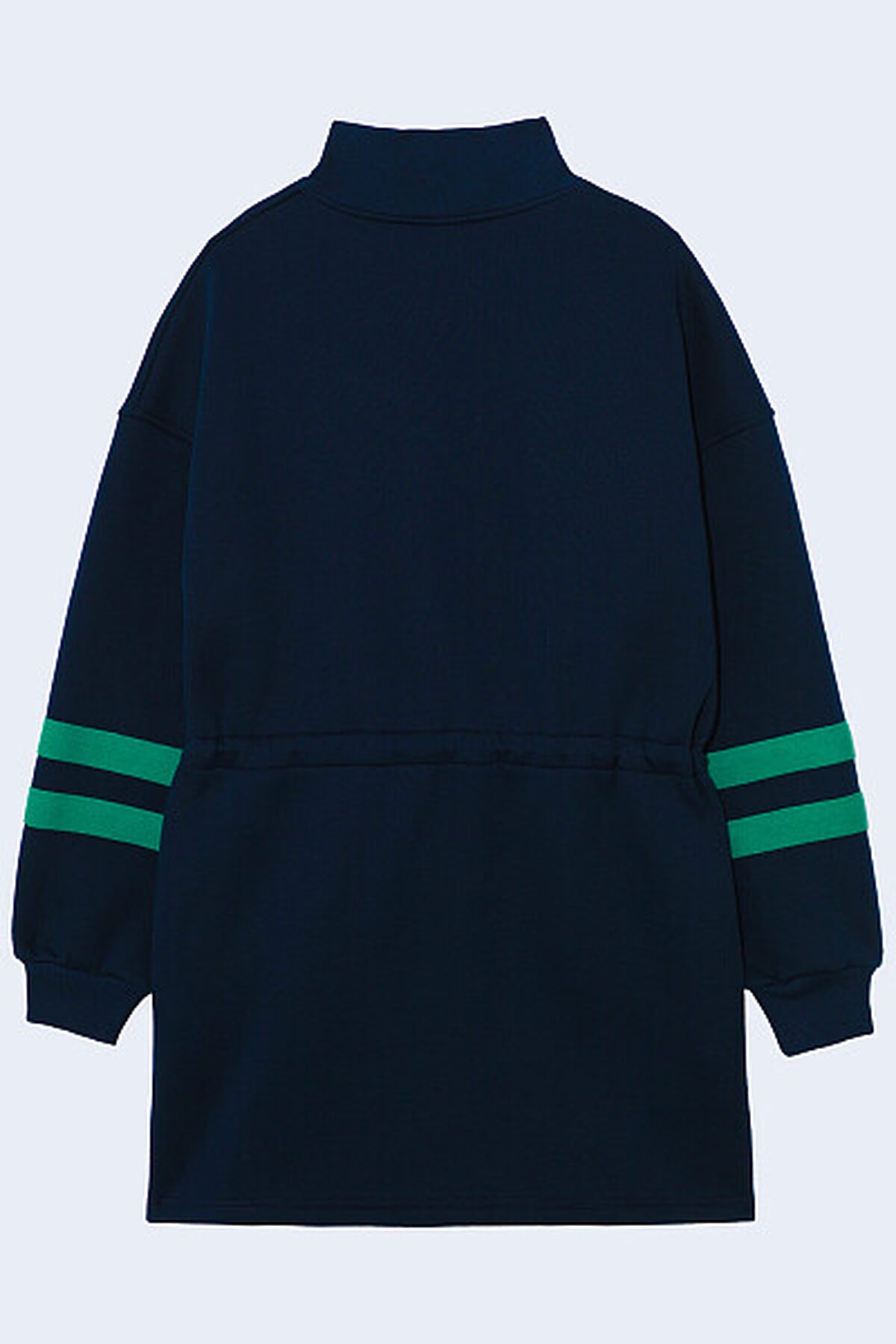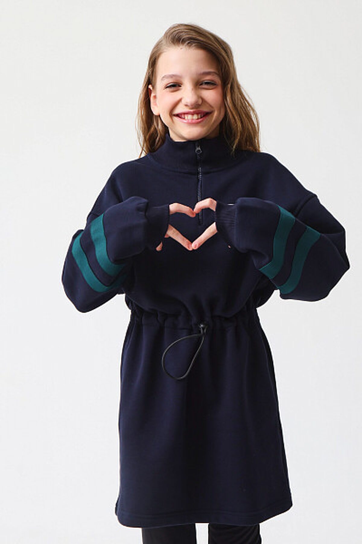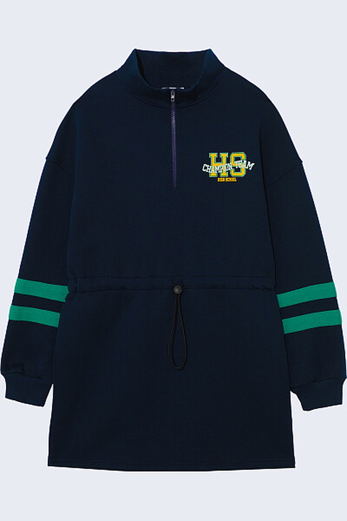 Платье с длинными рукавами из футера с начесом, идеально подходящее для холодного времени года. Модель дополнена центральной застежкой на молнию, а также воротником-стойкой. Платье имеет кулиску на уровне талии, что позволяет изменять силуэт от прямого до приталенного по желанию. В боковых швах расположены удобные карманы. Рукава оформлены контрастными полосками. Теплое платье идеально на зиму, а стильный принт на груди, сделает его интересным дополнением к зимнему гардеробу. Представлено в 2 цветах.
