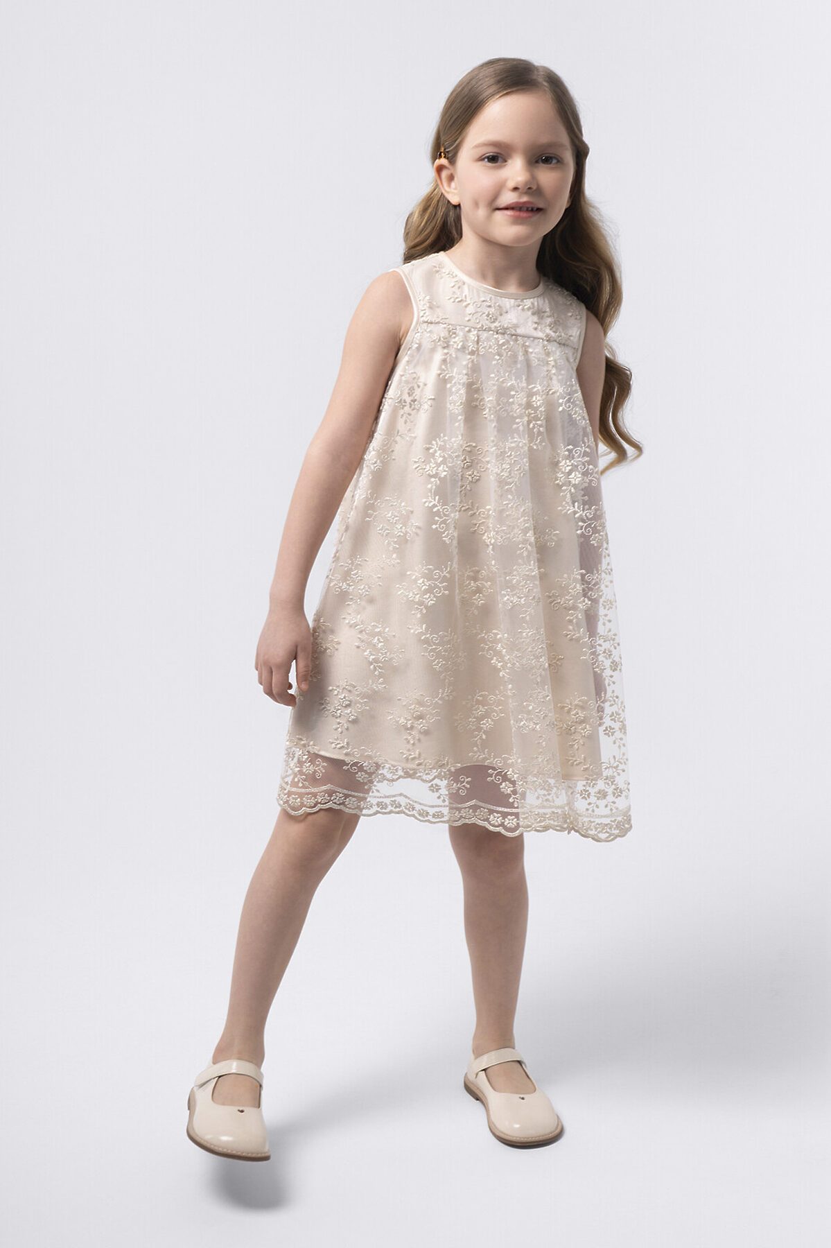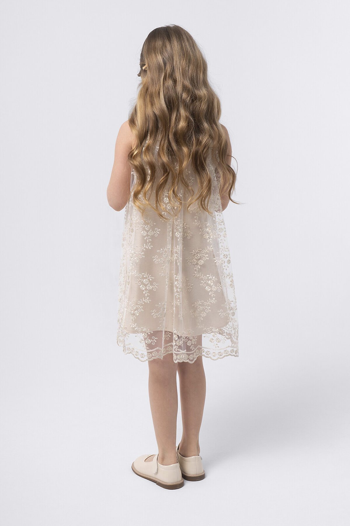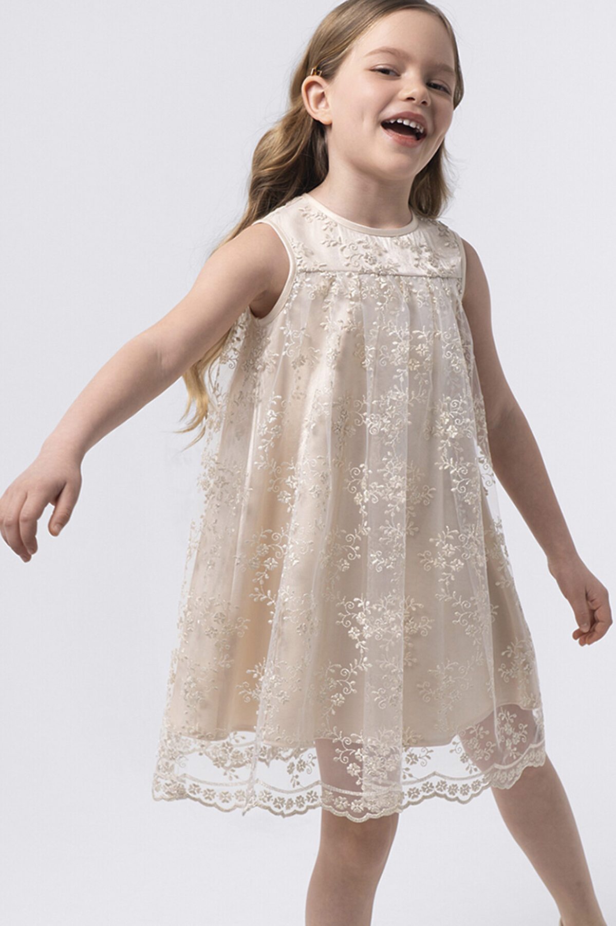 Платье с кокеткой на груди - свободный силуэт с расширением к низу придаёт лёгкость движений и комфорт в носке. Благодаря отсутствию рукавов, создаётся ощущение полной свободы. Комбинация сетки и хлопковой подкладки создаёт богатый объём. Хлопковая подкладка заботится о комфорте ребенка, позволяя коже дышать. Изюминкой становится сетка с блестящими декоративными элементами.
