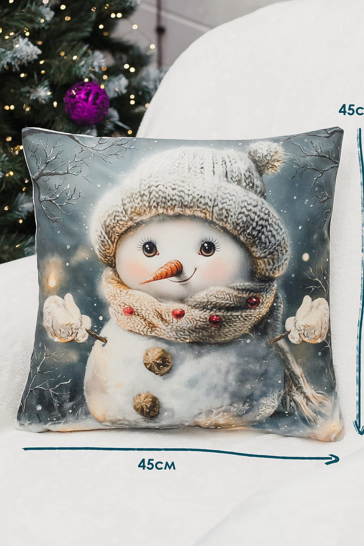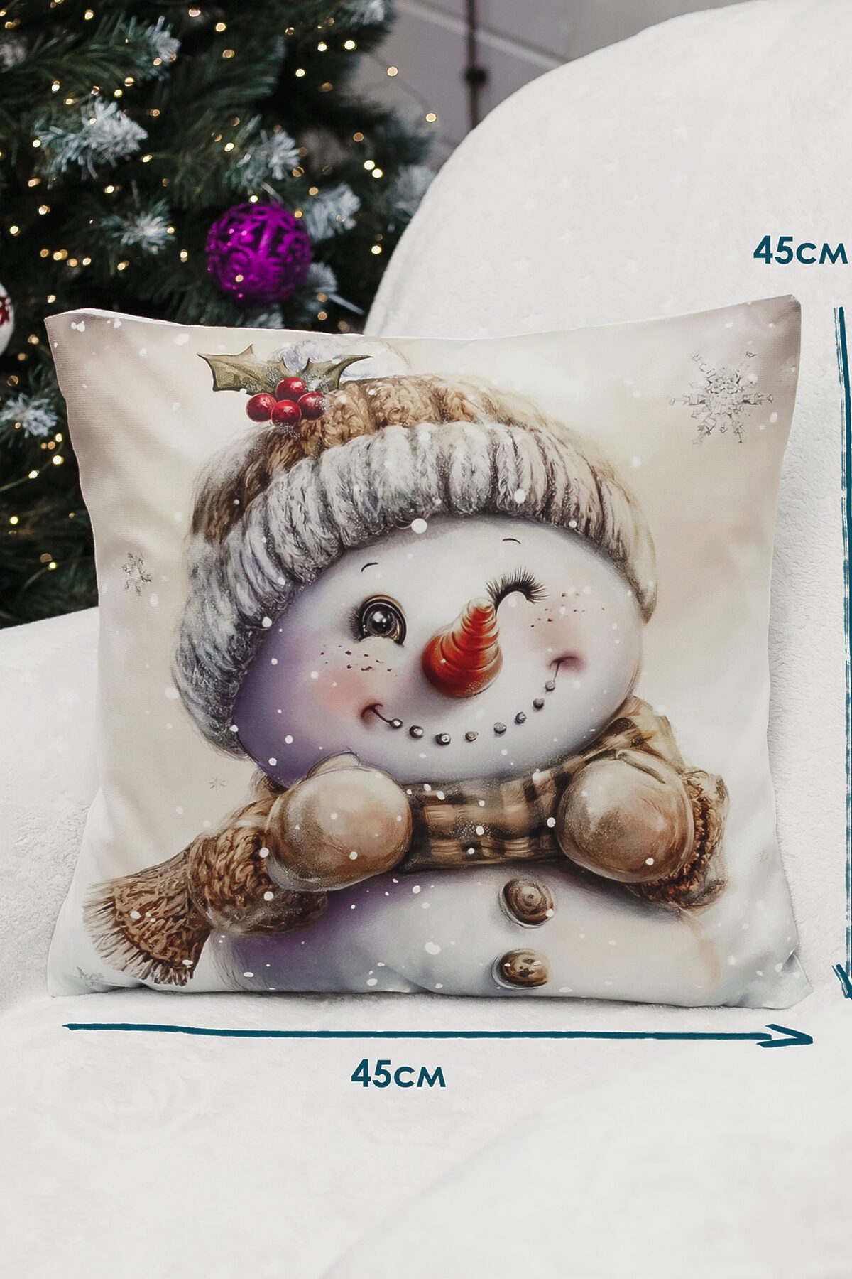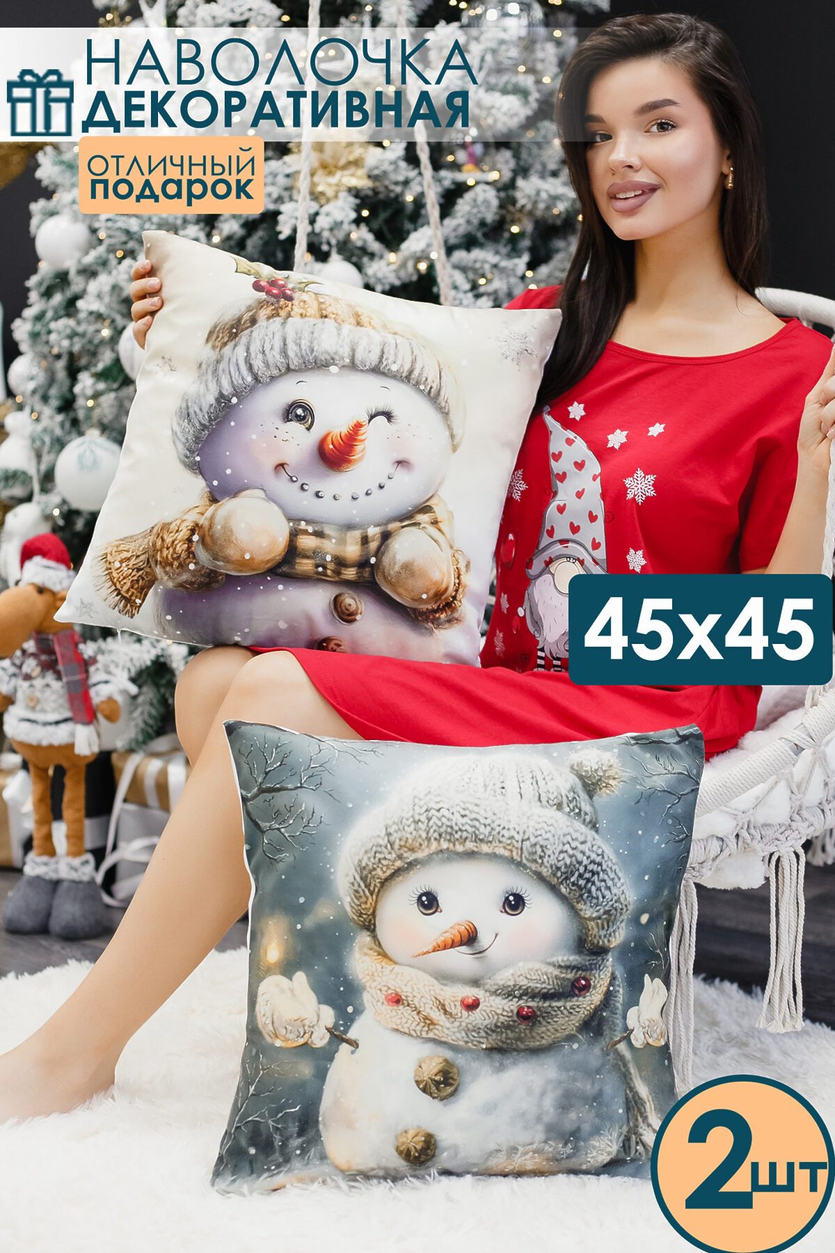 Новогодняя наволочка 4545 см выполнена из качественного материала. Лицевая сторона украшена выразительным 3Д рисунком на новый год, который придаёт интерьеру глубину и настроение праздника, а обратная сторона однотонная, что облегчает сочетание с другими элементами декора. Ткань мягкая, гладкая и очень приятная на ощупь, дарит тактильный комфорт при прикосновении и выглядит элегантно вблизи. Мягкий материал обеспечивает износостойкость, устойчивость к выцветанию и простоту ухода наволочка легко стирается, быстро сохнет и сохраняет форму даже после многократных стирок. Потайная молния аккуратно спрятана в шве и не нарушает целостности узора, позволяя быстро снять чехол для стирки и при этом сохранять аккуратный внешний вид. Изделие мало мнётся и долговечно, поэтому прекрасно подходит для повседневного использования в спальне, гостиной или детской, а также станет стильным и практичным подарком на Новый год 2026. Сочетание визуальной выразительности рисунка с гномом и снеговиком, делает эту наволочку универсальным элементом, который добавит уюта и современности любому интерьеру. Её универсальный размер подходит как для дивана, так и для кресла, а также может украсить спальню или гостиную. Эта наволочка станет чудесным подарком на Новый год для мамы или сестры, принося радость и уют в их повседневную жизнь. Создайте атмосферу праздника и заботы с этой очаровательной наволочкой!