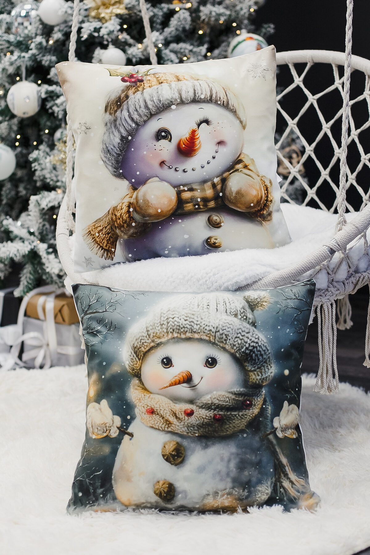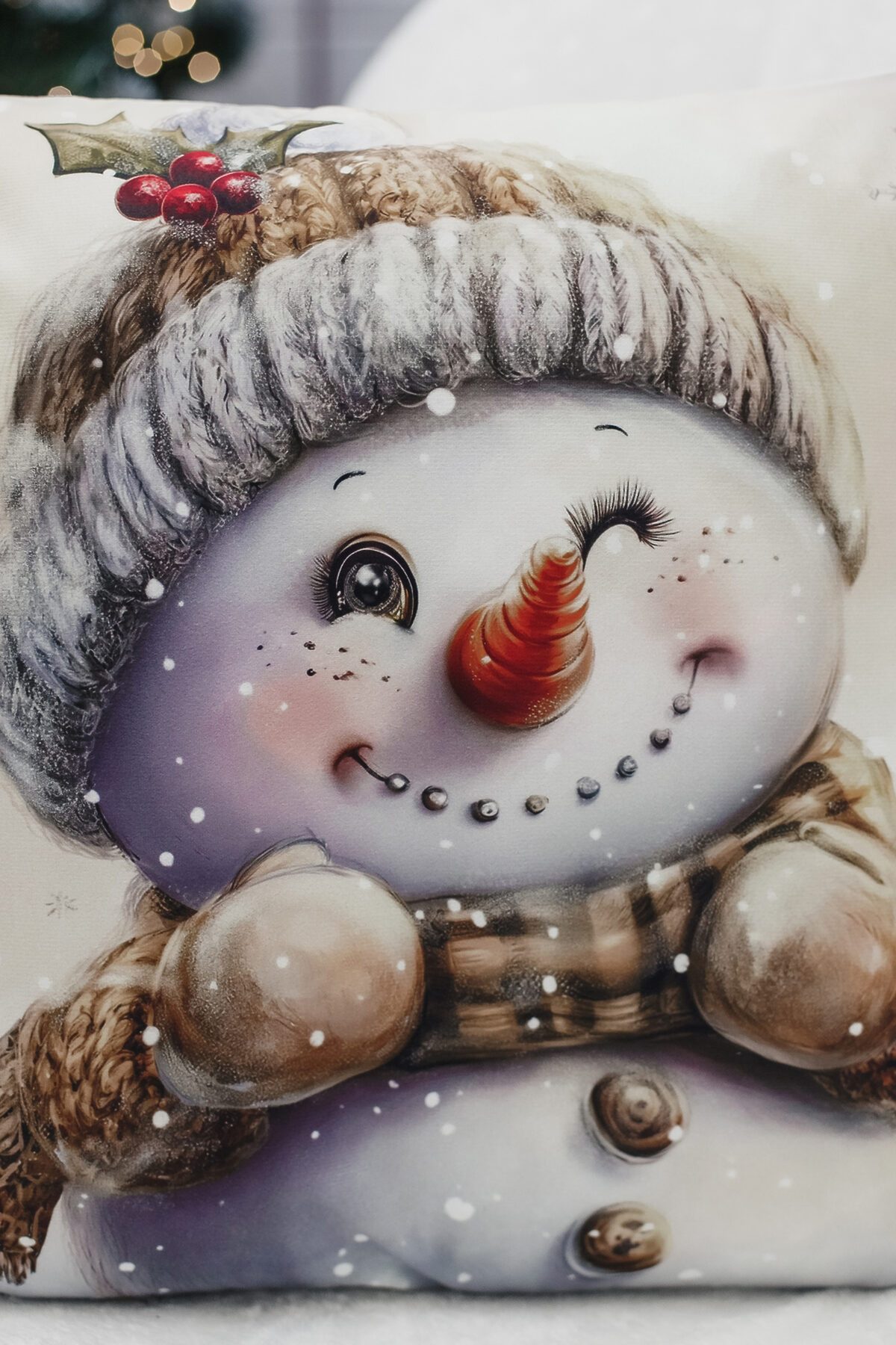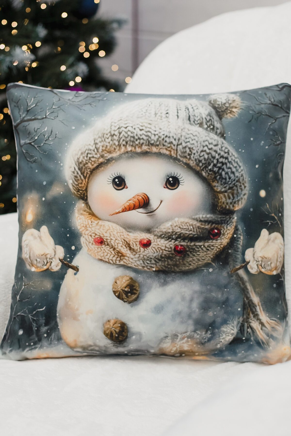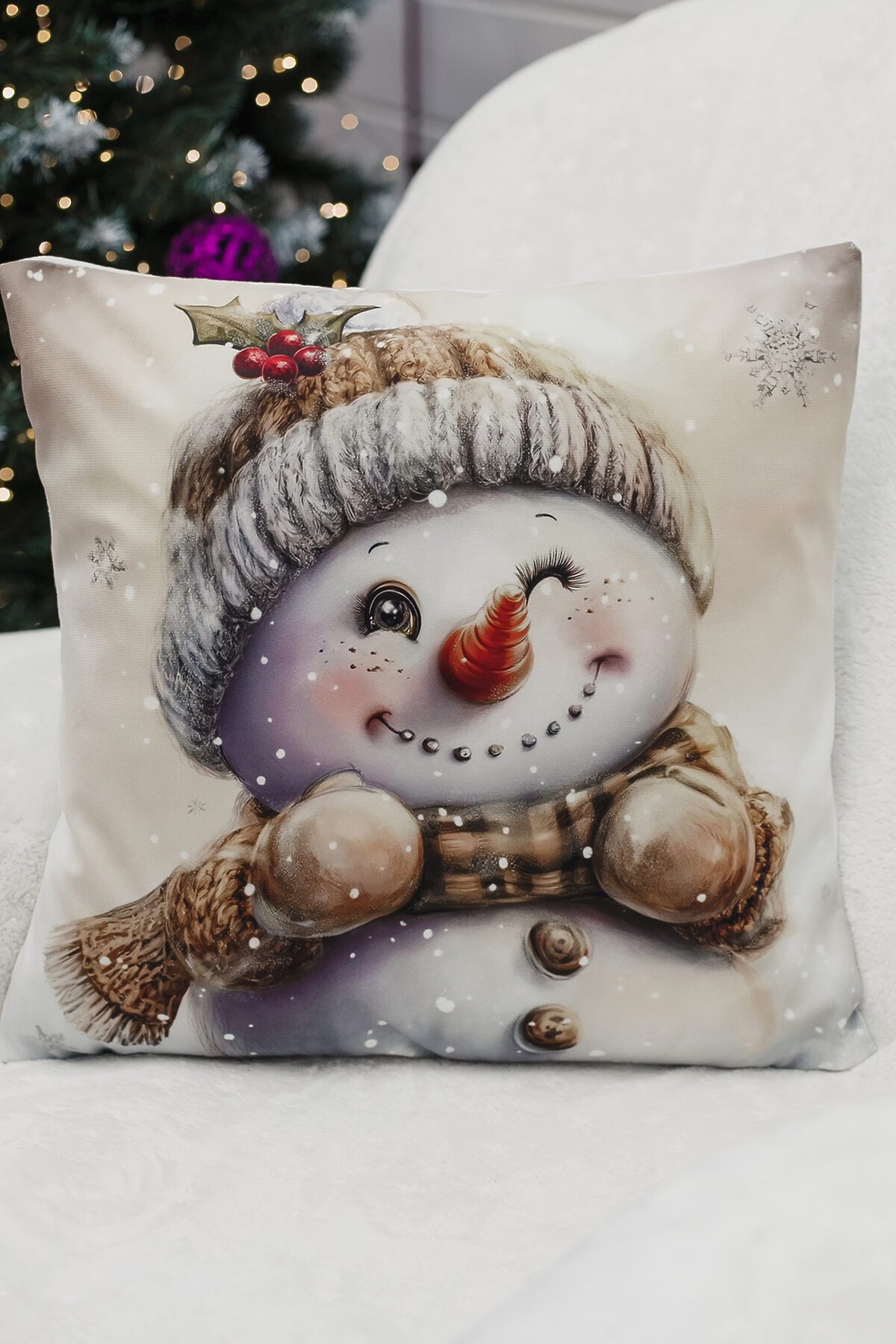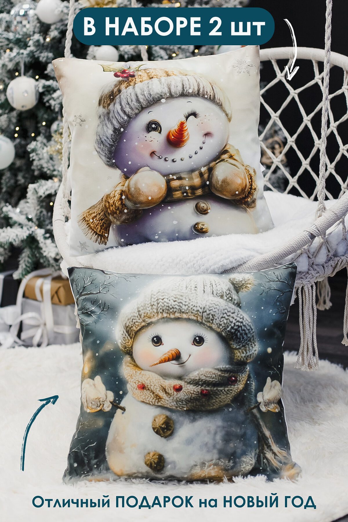 Наволочка декоративная новогодняя 2 шт 3D эффект велюр НАТАЛИ, снеговикподмигни