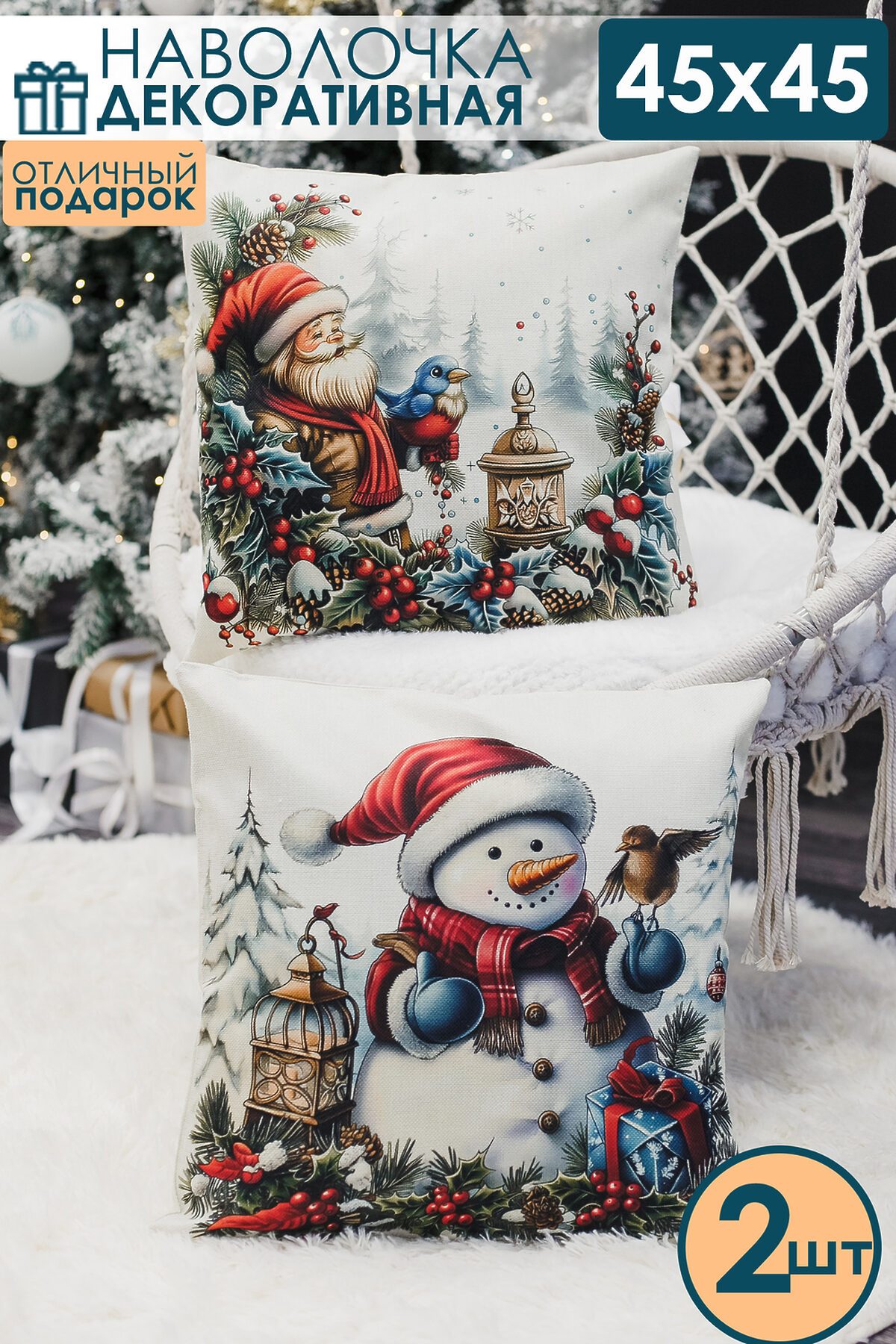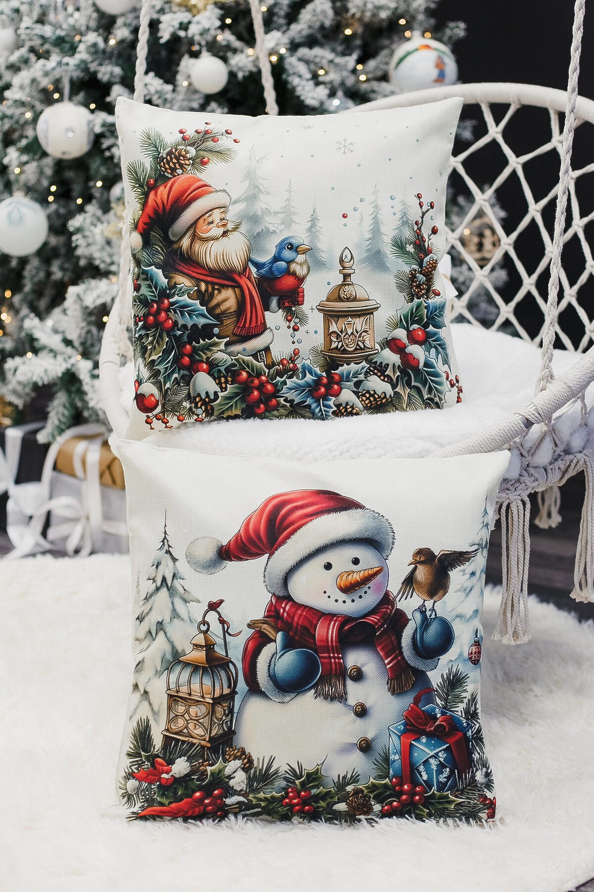 Наволочка декоративная новогодняя 2 шт рогожка НАТАЛИ, дедфонарьснеговик