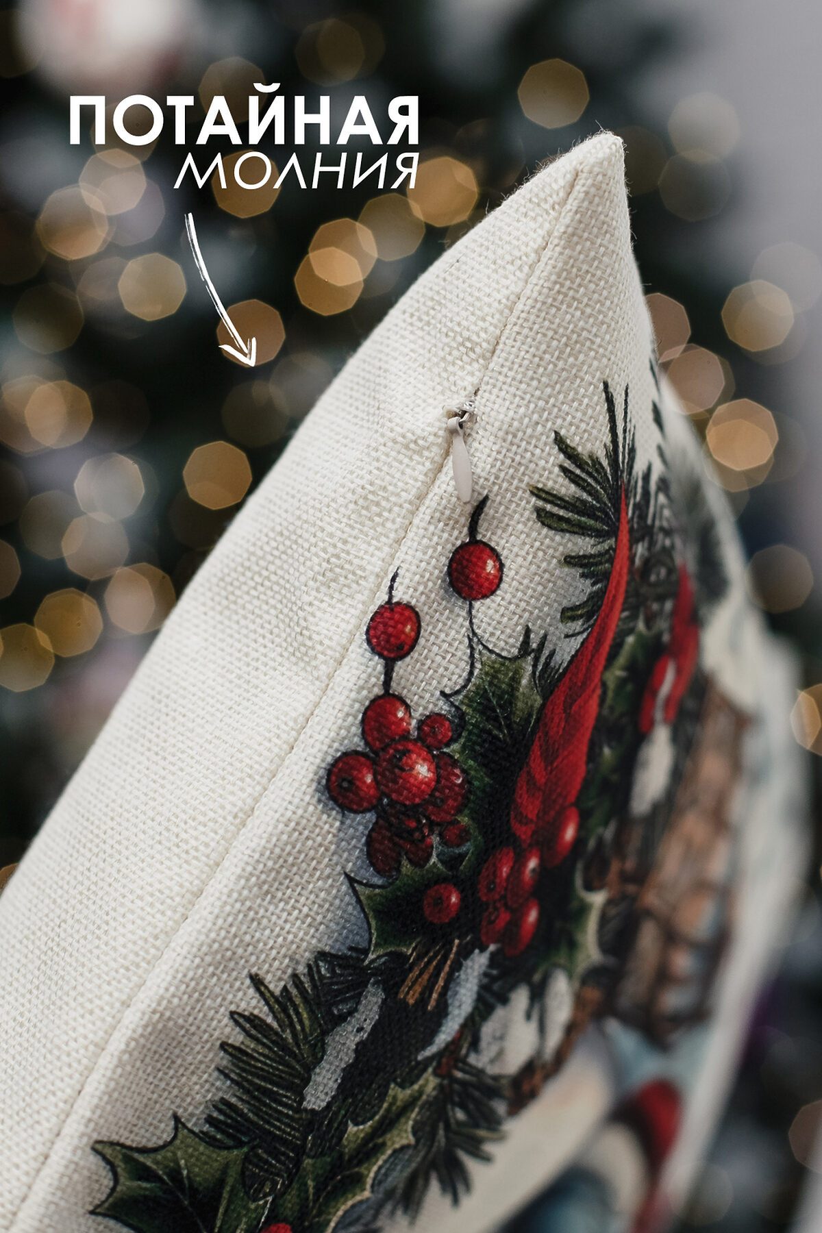 Наволочка 4545 см выполнена из качественного рогожки. Лицевая сторона украшена выразительным новогодним рисунком, который придаёт интерьеру глубину и динамику, а обратная сторона однотонная, что облегчает сочетание с другими элементами декора. Ткань мягкая, гладкая и очень приятная на ощупь, дарит тактильный комфорт при прикосновении и выглядит элегантно вблизи. Рогожка обеспечивает износостойкость, устойчивость к выцветанию и простоту ухода наволочка легко стирается, быстро сохнет и сохраняет форму даже после многократных стирок. Потайная молния аккуратно спрятана в шве и не нарушает целостности узора, позволяя быстро снять чехол для стирки и при этом сохранять аккуратный внешний вид. Изделие мало мнётся и долговечно, поэтому прекрасно подходит для повседневного использования в спальне, гостиной или детской, а также станет стильным и практичным подарком. Сочетание визуальной выразительности рисунка с дедом морозами снеговиком и нежной гладкой ткани делает эту наволочку универсальным элементом, который добавит уюта и современности любому интерьеру. Её универсальный размер подходит как для дивана, так и для кресла, а также может украсить спальню или гостиную. Эта наволочка станет чудесным подарком на Новый год для мамы или сестры, принося радость и уют в их повседневную жизнь. Создайте атмосферу праздника и заботы с этой очаровательной наволочкой!