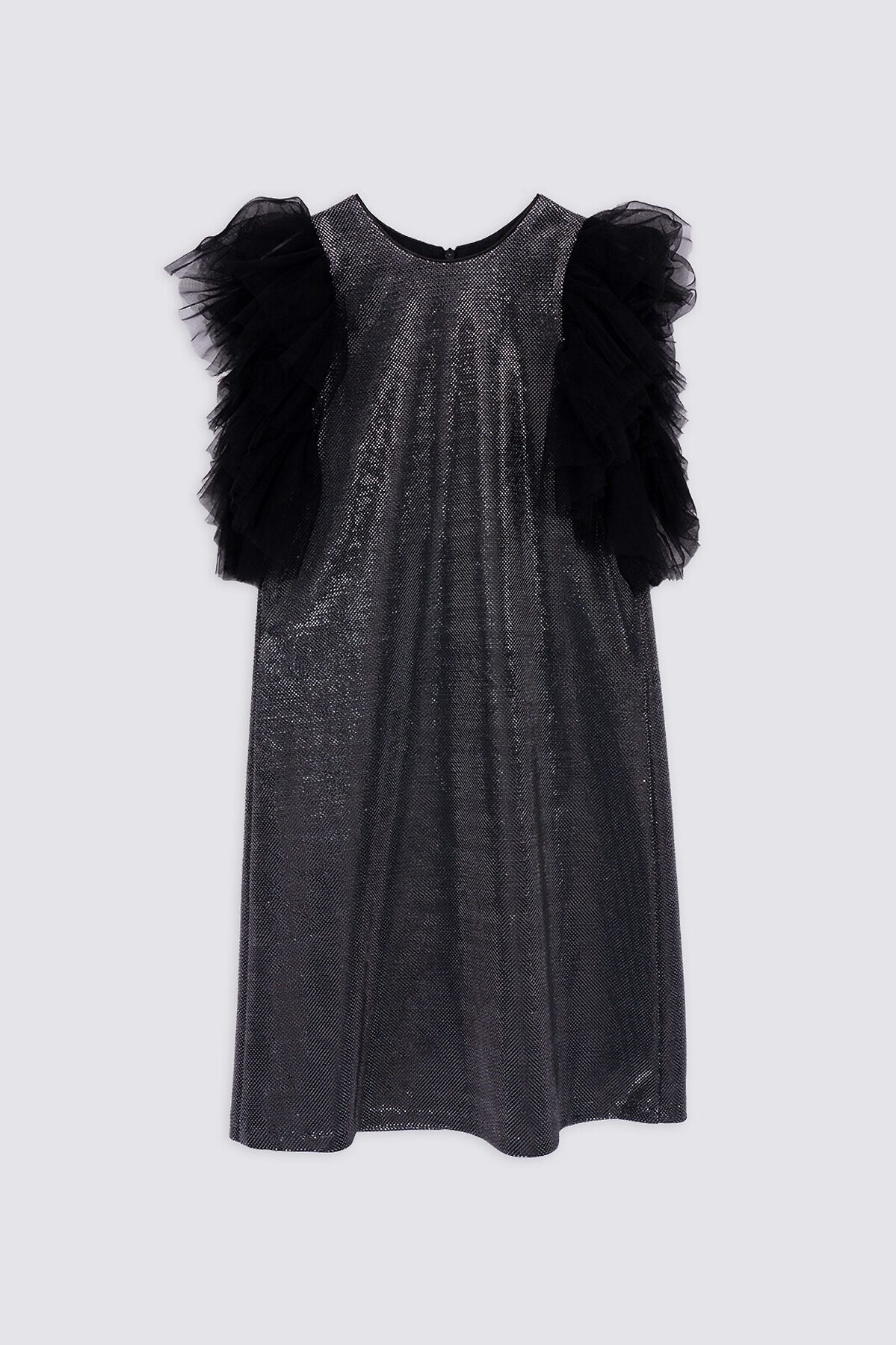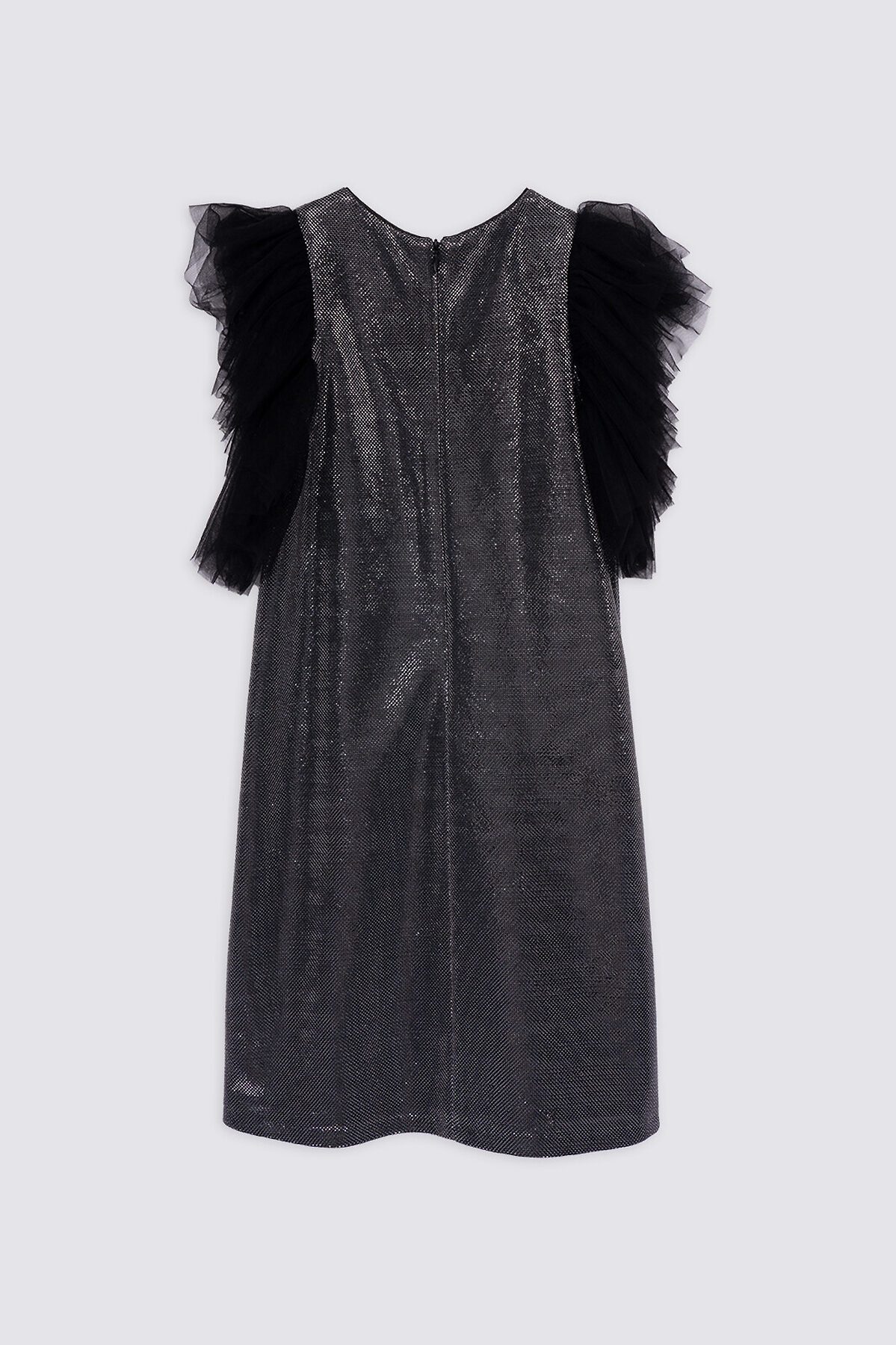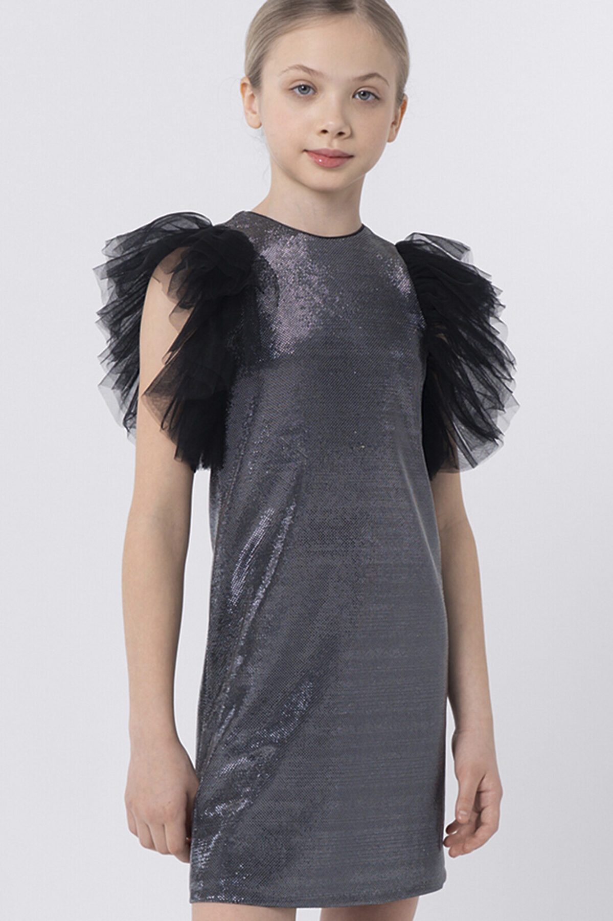 Мини-платье прямого силуэта — элегантный и эффектный выбор для праздничных мероприятий. Силуэт и крой: прямой, подчёркивающий стройность фигуры. Материал: мерцающая ткань придаёт образу блеск и праздничное настроение. Детали: без рукавов с декоративной воздушной драпировкой на плечах, создающей лёгкость и изящность. Застёжка: потайная молния обеспечивает аккуратный и удобный выход из платья. Идеально подходит для торжеств, фотосессий и ярких вечеринок.
