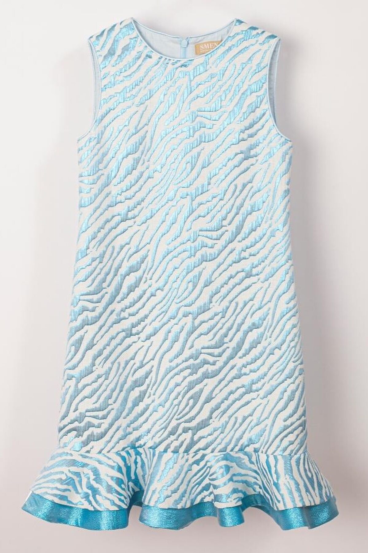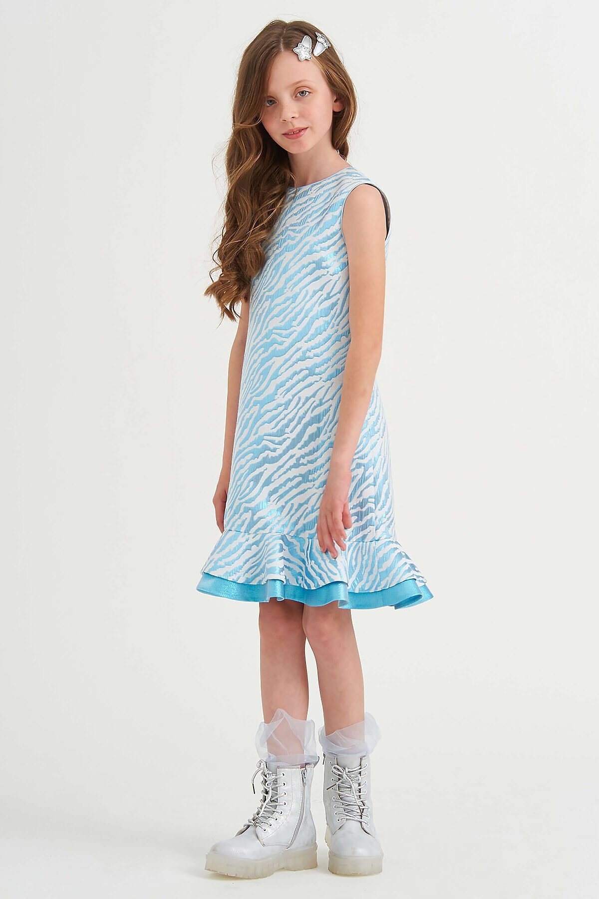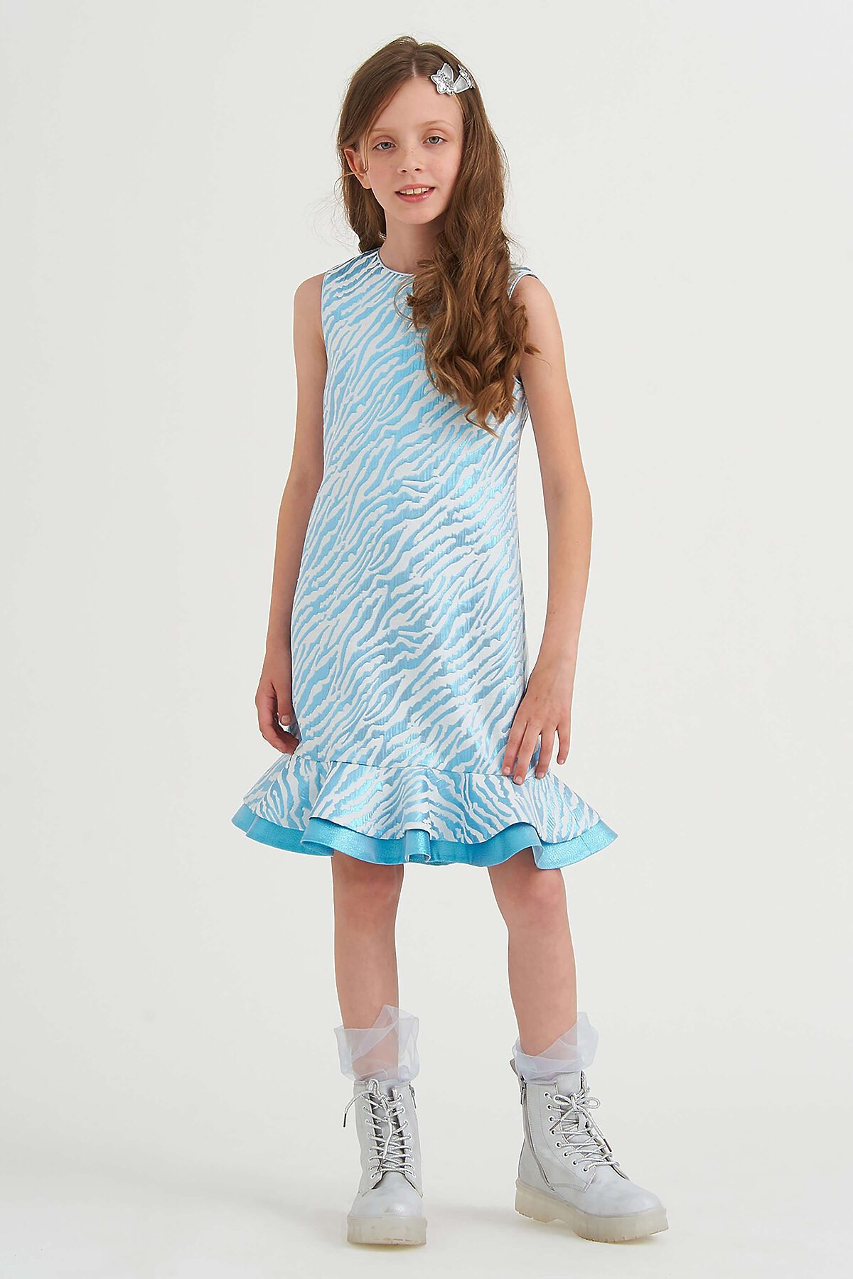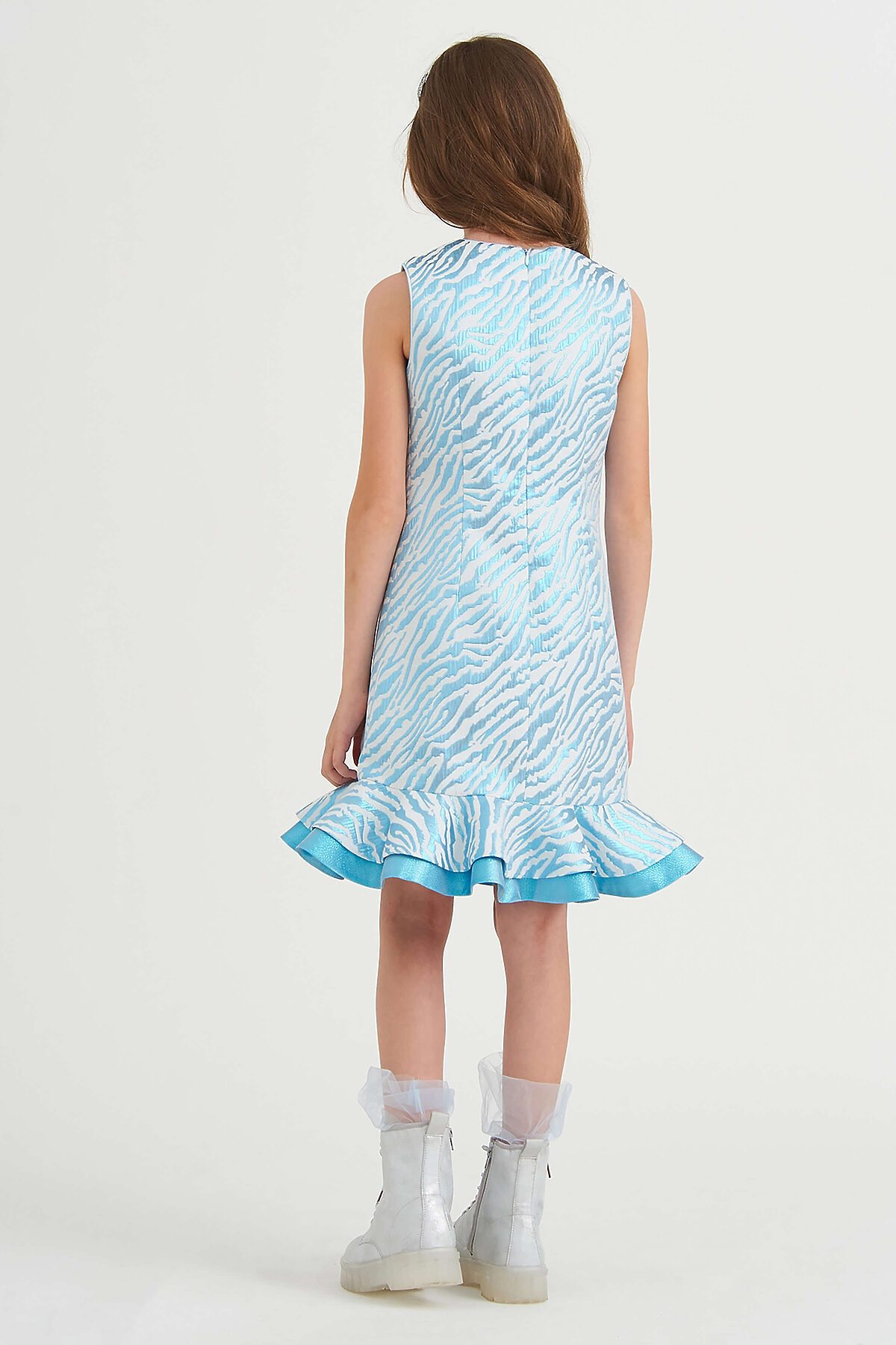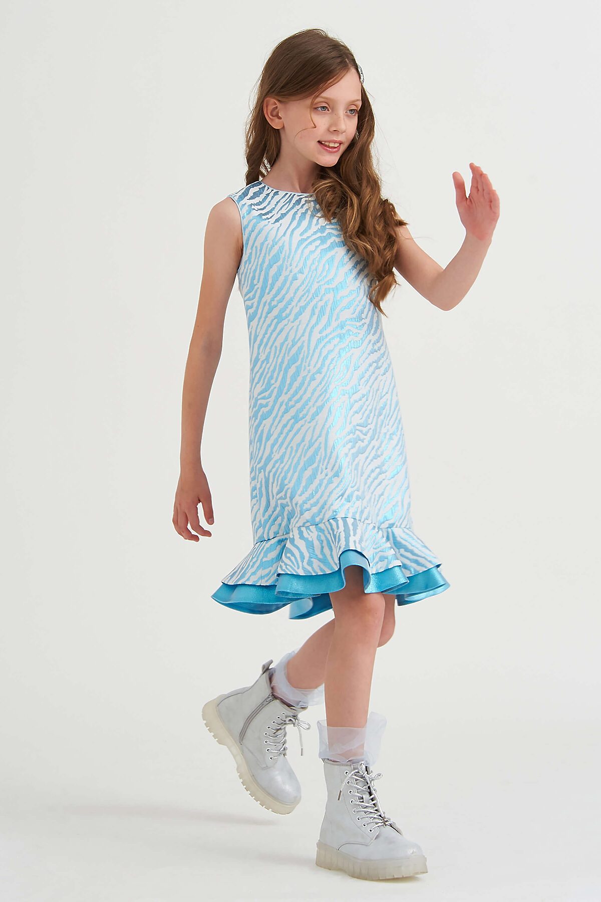 Эффектное платье А- силуэта из жаккарда "тигр" с двойным воланом по низу. Застёжка на потайную молнию по центру спинки. Подкладка хлопок.
