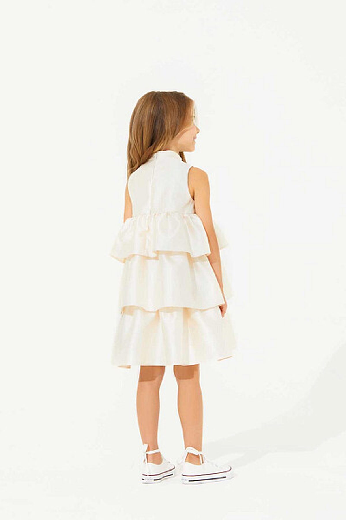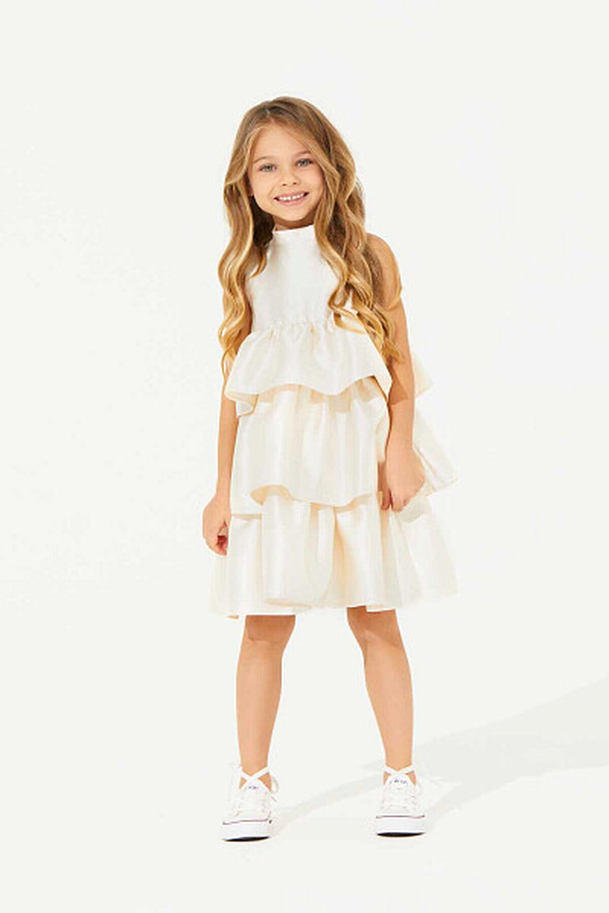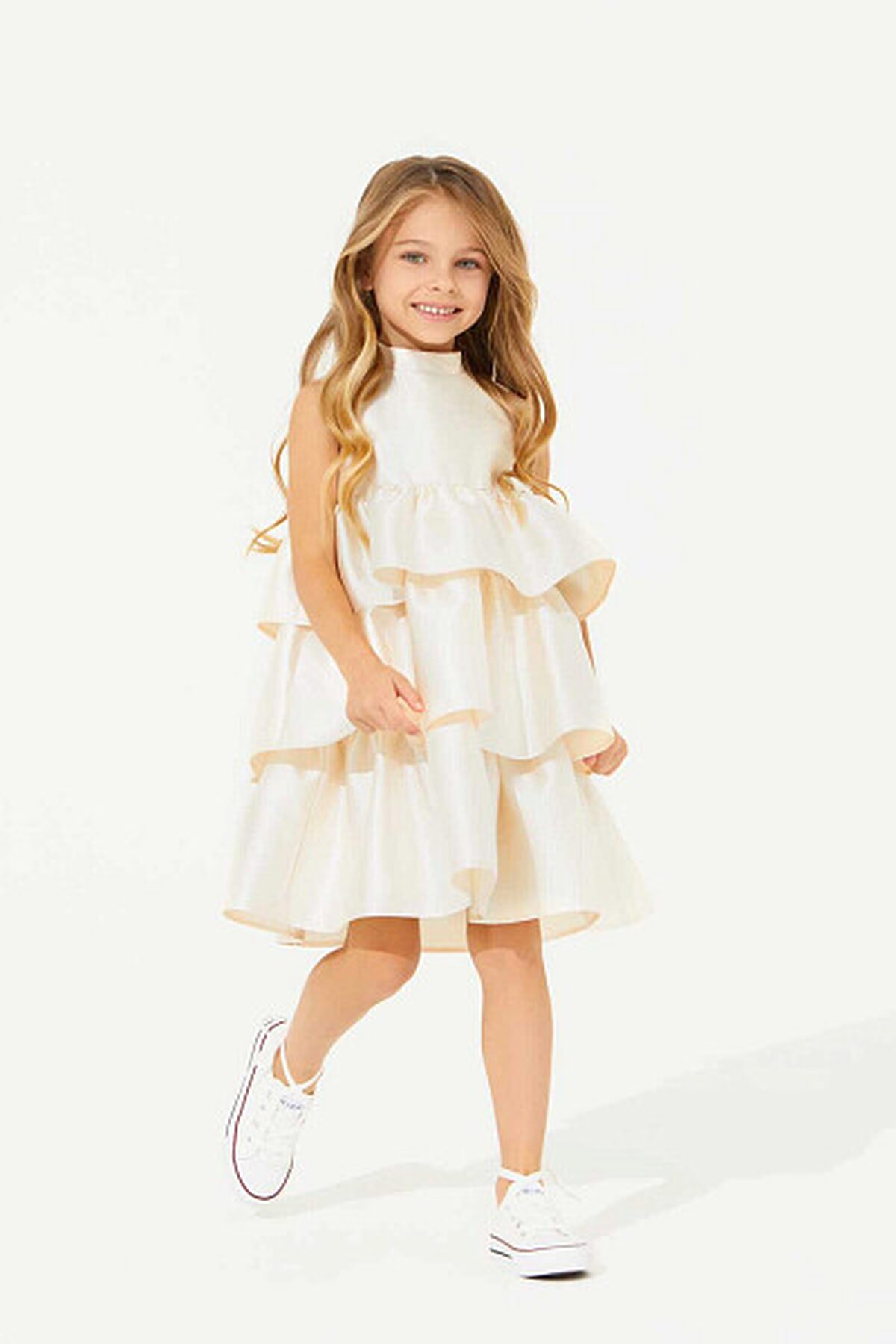 Стильное платье А-силуэта, которое понравится любой маленькой моднице. Верхний слой платья выполнен из жаккарда с добавлением люрекса, а приятная к телу подкладка из хлопка обеспечивает комфорт и отводит влагу во время активных игр. Юбка «каскад» выполнена из нескольких слоев ткани и придает платью объем и воздушность, а воротник-стойка добавляет изысканности и баланса образу. Застежка на потайную молнию по спинке обеспечивает комфорт и легкость при надевании. Это платье станет идеальным выбором для любого торжества или праздника.