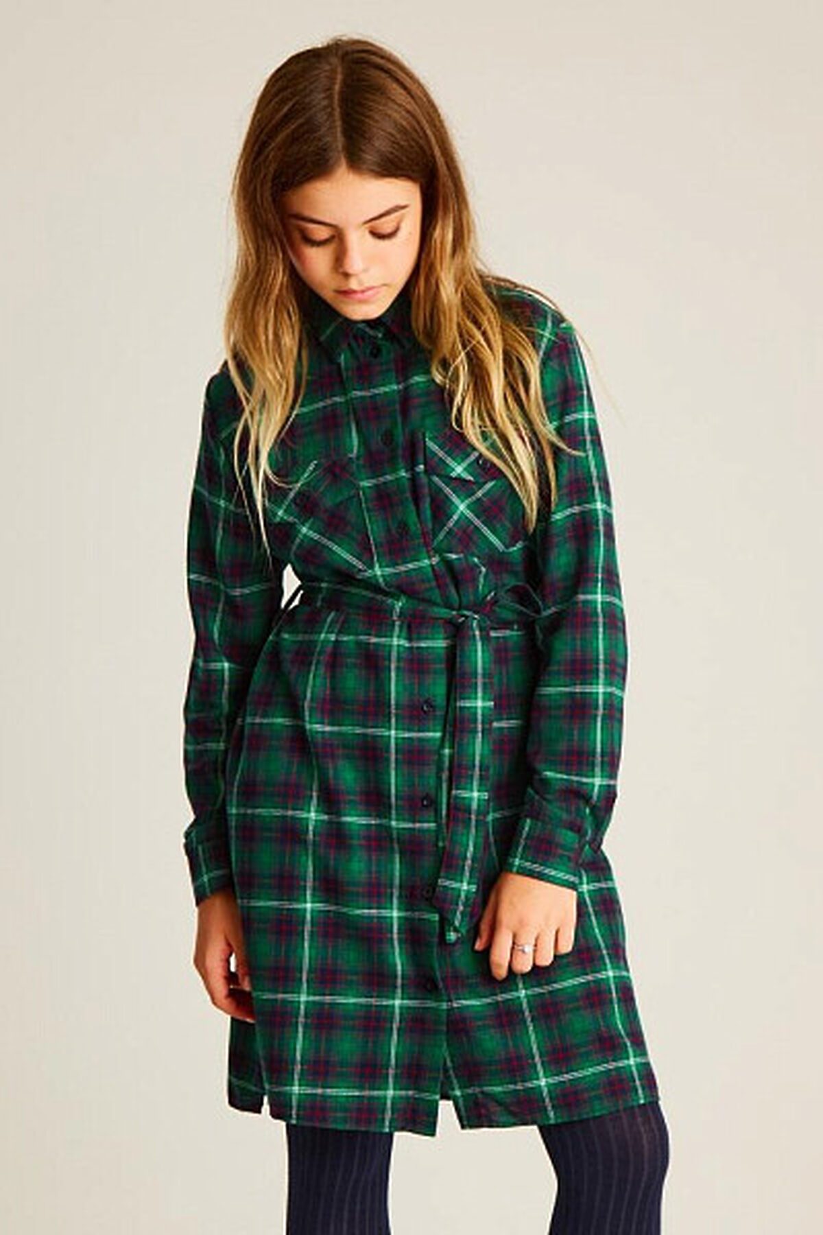 Платье-рубашка — это не только стильный, но и удобный предмет гардероба для девочек. Оно выполнено из качественной хлопчатобумажной ткани и имеет центральную застежку на пуговицы, что обеспечивает комфортное надевание. Платье-рубашка имеет два накладных кармана, расположенных спереди, что добавляет практичности и функциональности в использовании. Кроме того, по бокам платья предусмотрены шлевки, которые позволяют регулировать пояс по размеру, что делает его идеальным для любого телосложения. Цвета платья являются классическими и всегда актуальными — зеленая и бордовая клетка.