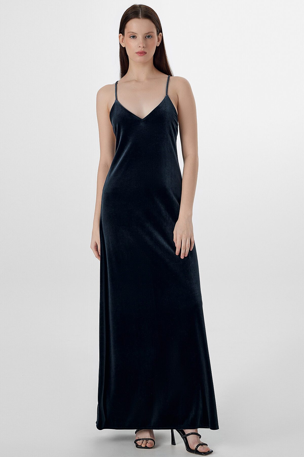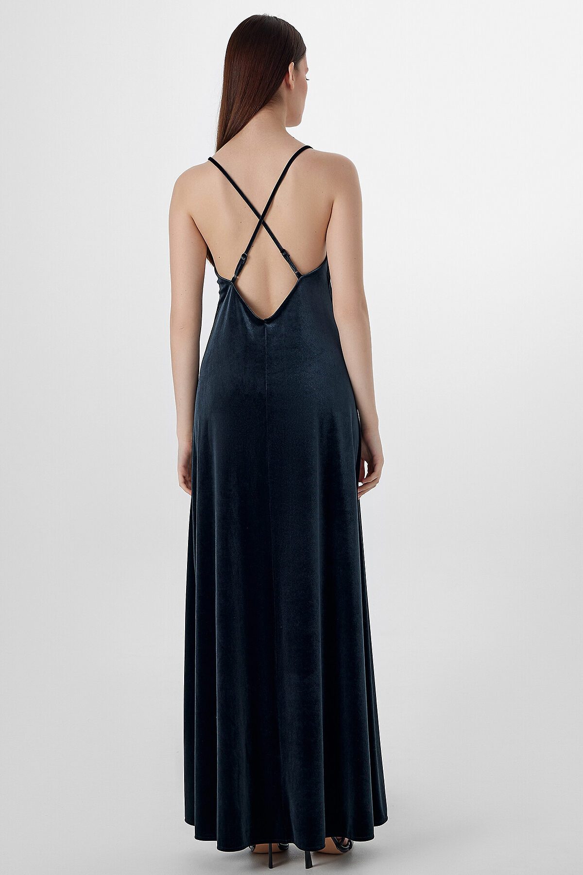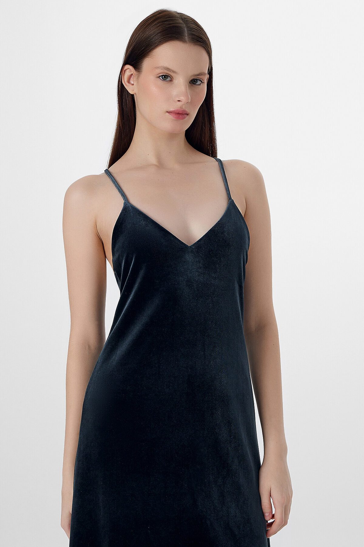 Глубокий V-образный вырез горловины и открытая спинка с центральным швом добавляют образу женственности и притягательности. Регулируемые бретели на металлических кольцах позволяют точно настроить длину для идеальной посадки. Укороченная подкладка из хлопковой кулирки с эластаном обеспечивает комфорт, не добавляя объема и сохраняя легкость.