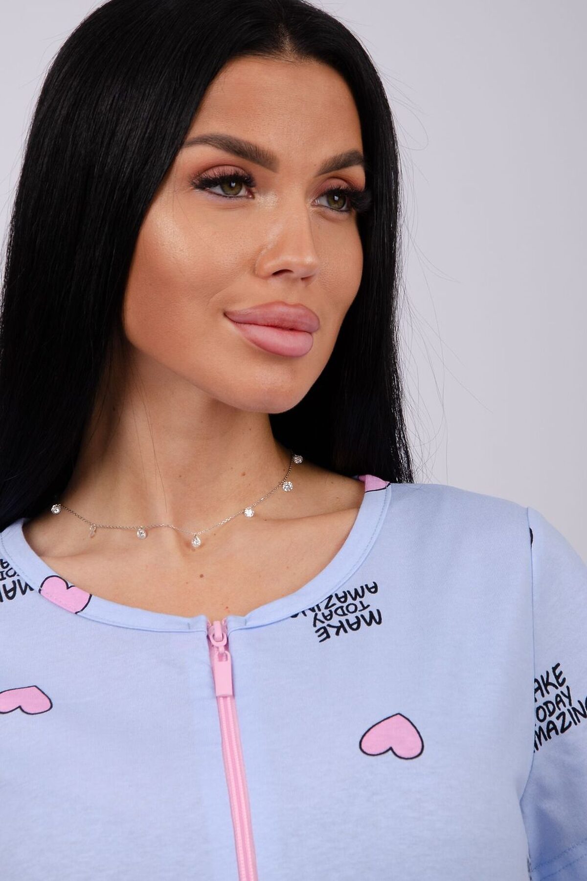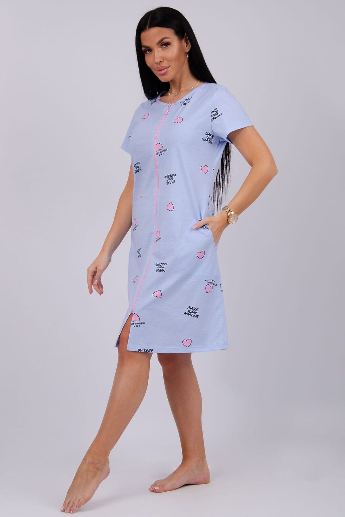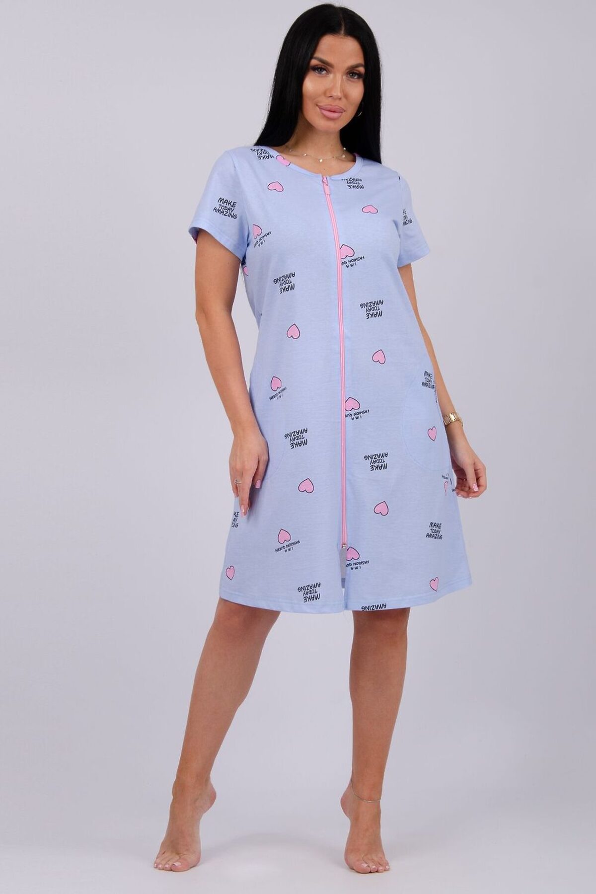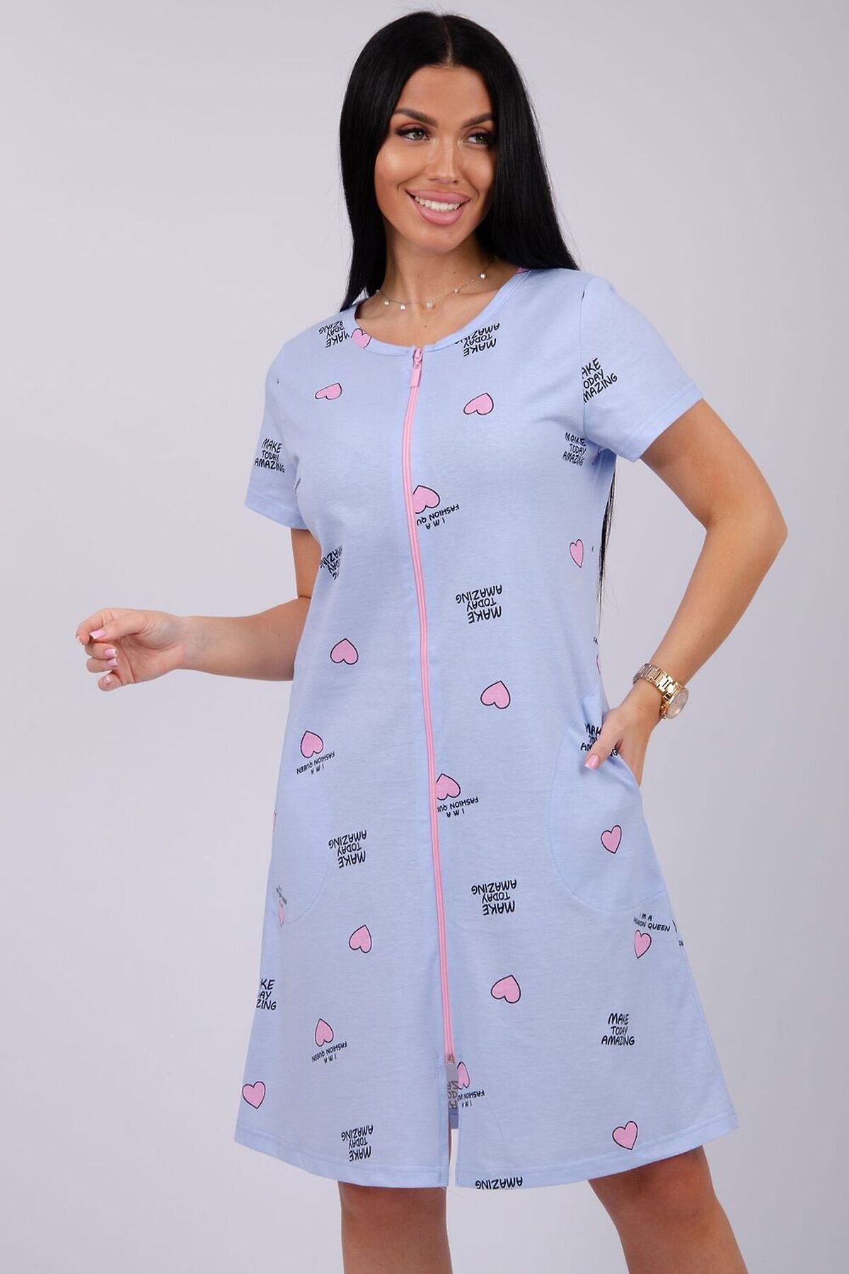 Женский халат на молнии. Рукав короткий. Красивый вырез на полочке. Халат прекрасно подойдет для дома, дачи и отдыха.