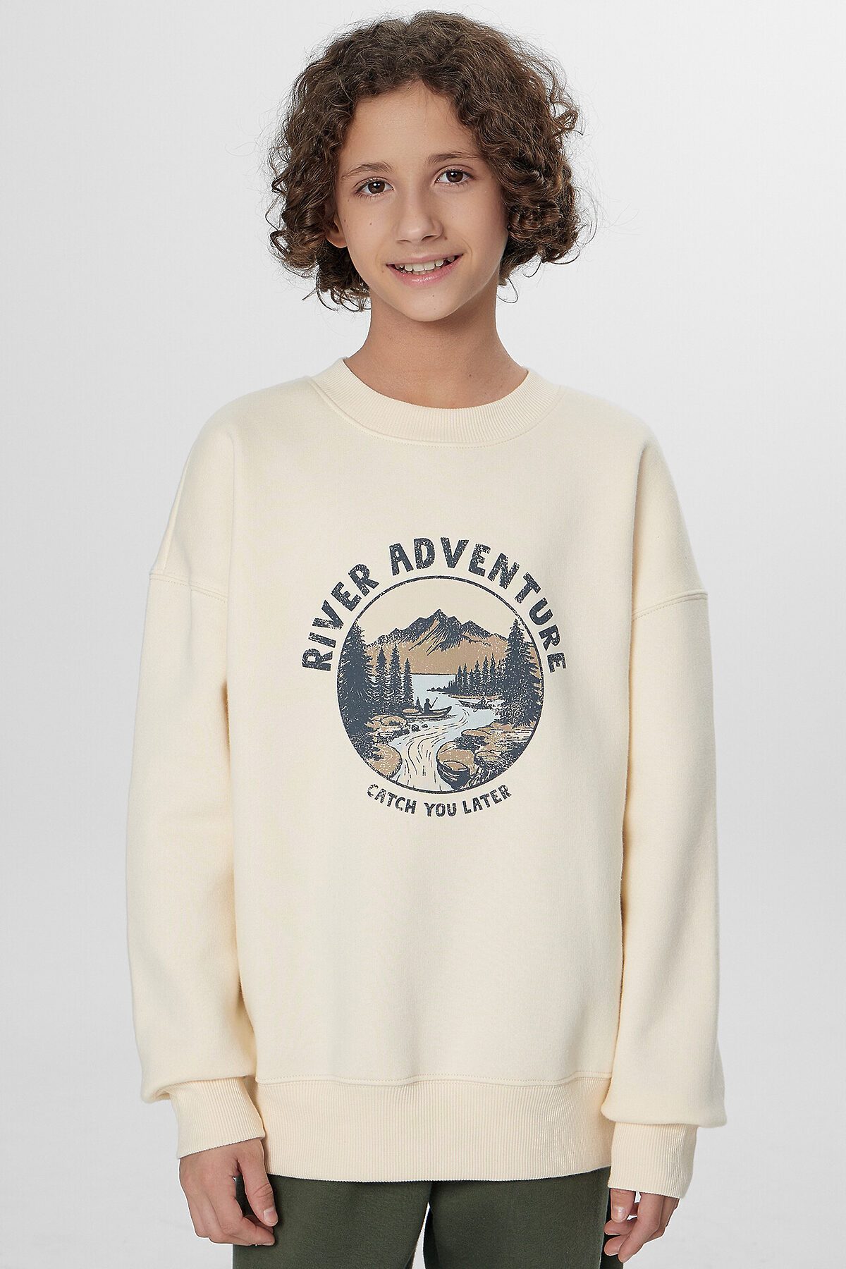 Свитшот для мальчиков создан для юных мечтателей и непосед. Его свободный крой, мягкая горловина и спущенное плечо обеспечивают полную свободу движений — будь то веселые игры во дворе, занятия в спортивной секции или увлекательные путешествия с родителями.