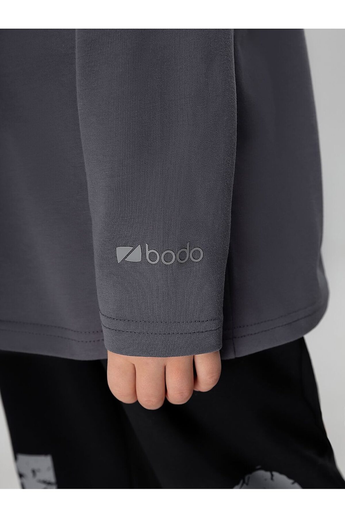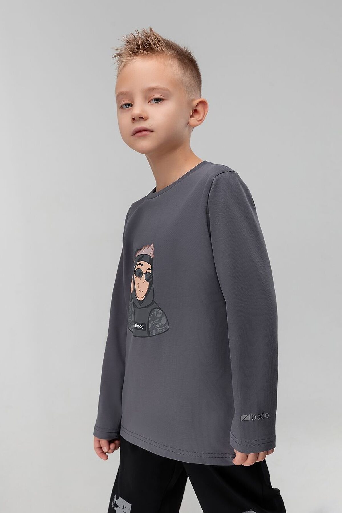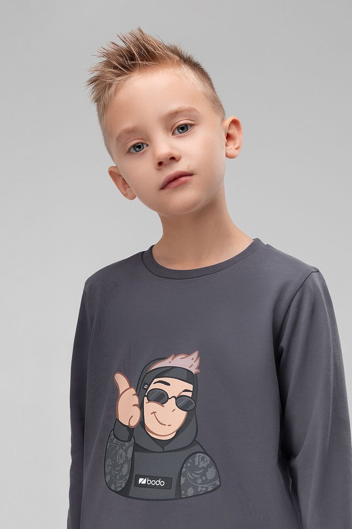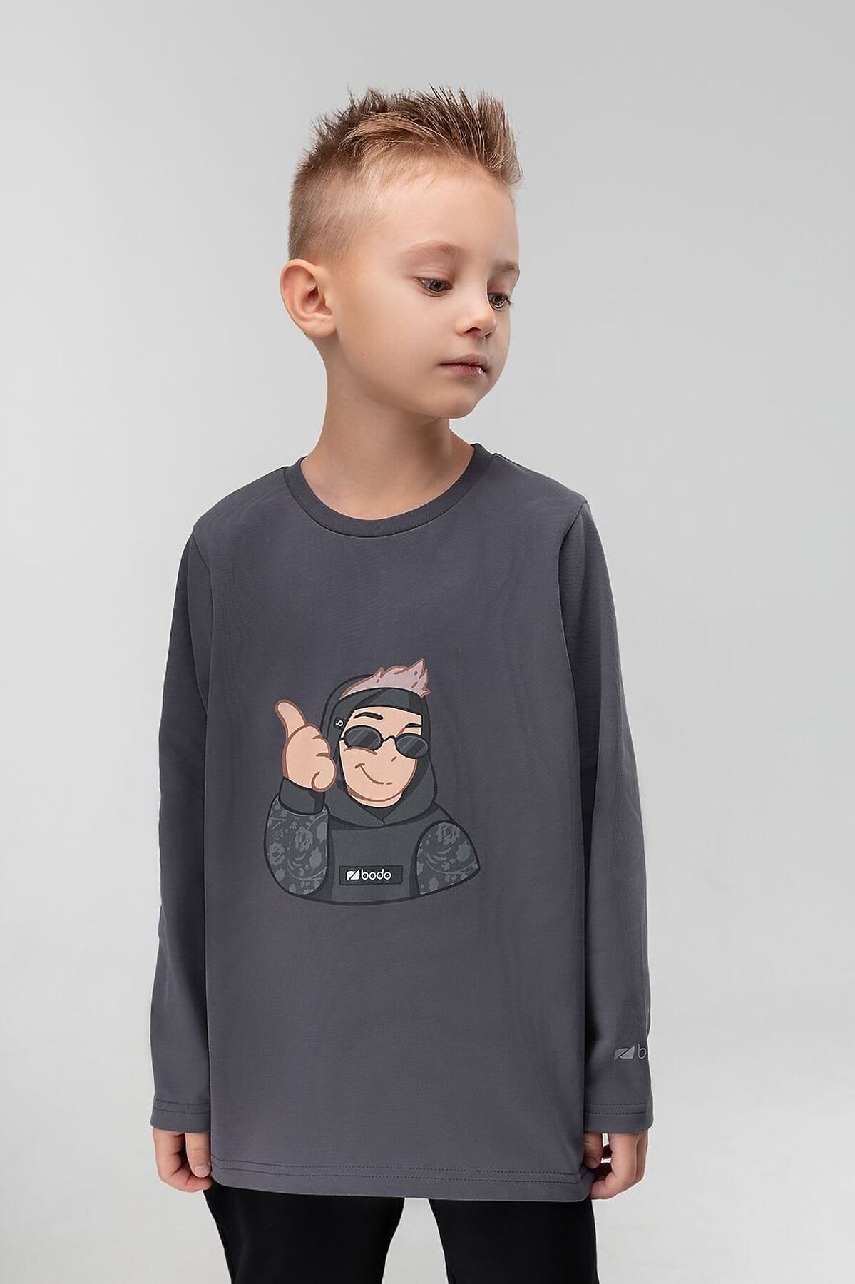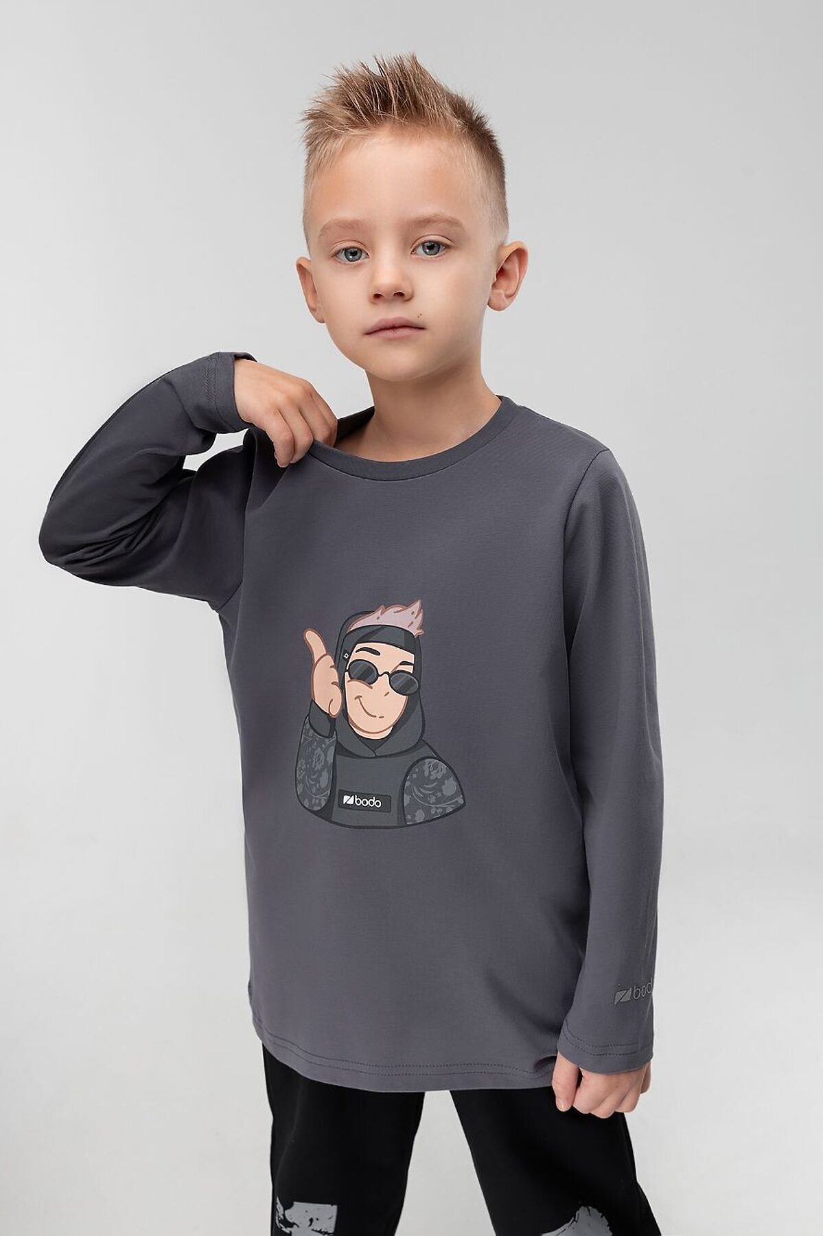 Лонгслив для детей дошкольного возраста. Лонгслив свободного силуэта с втачным длинным рукавом. Горловина лонгслива округлой формы. Низ изделия прямой.
