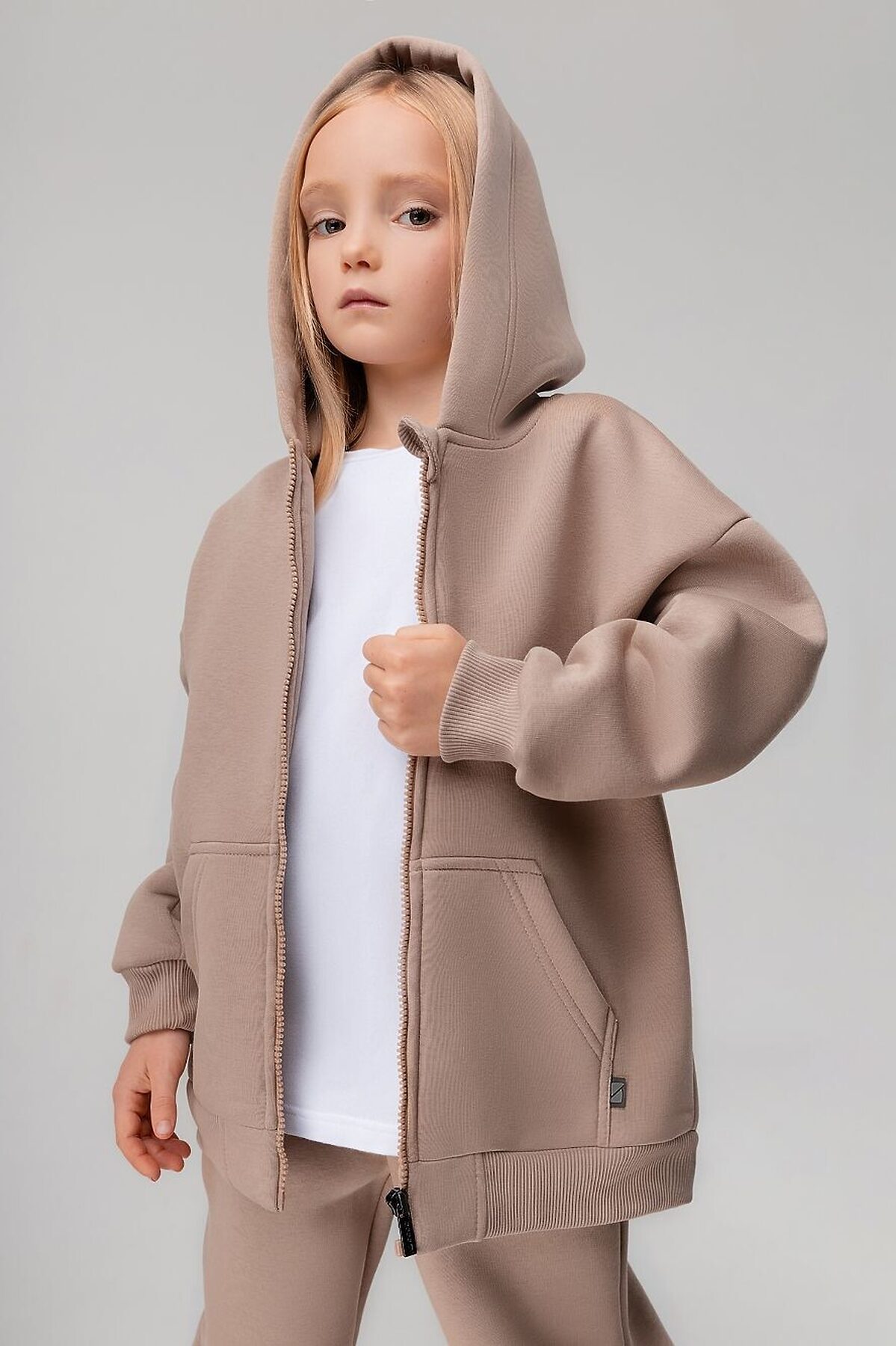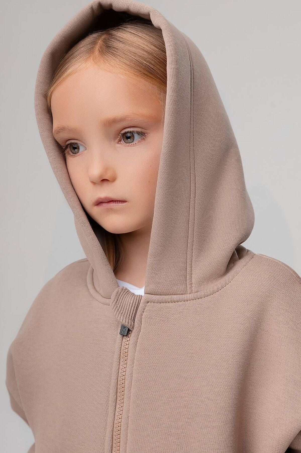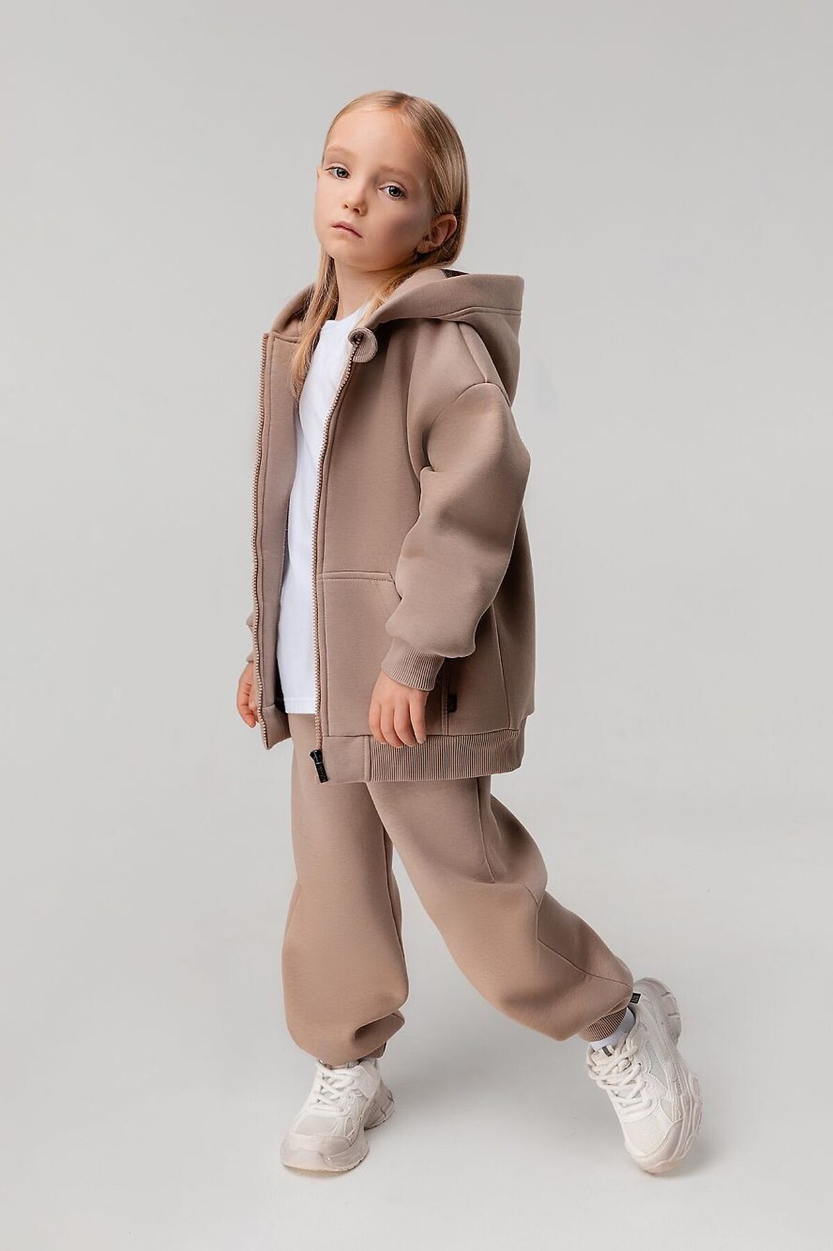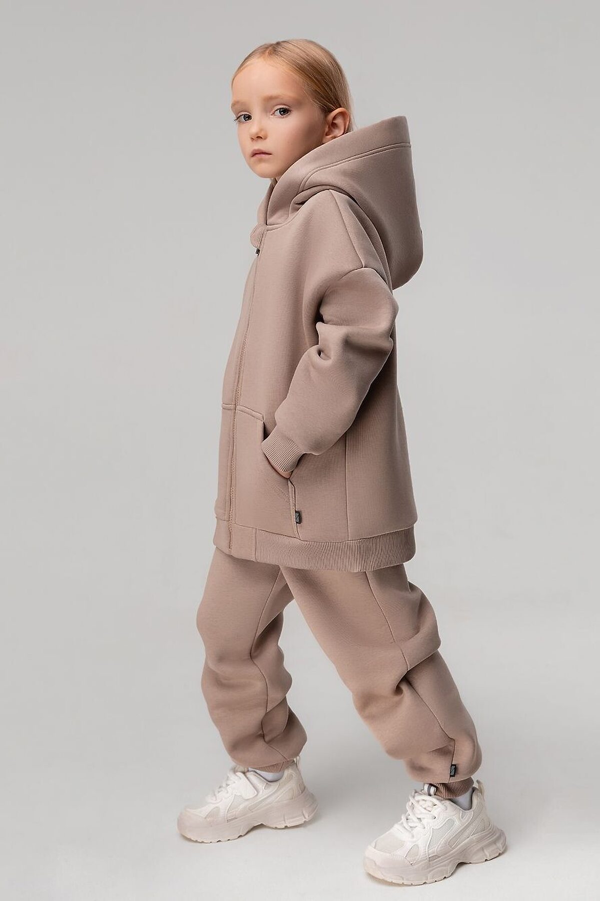 Костюм для детей дошкольного возраста. Толстовка прямого силуэта, с центральной бортовой застёжкой на тесьму молния, на притачном поясе по низу изделия, со спущенным плечом, с втачными рукавами с притачной манжетой, с втачным капюшоном. На полочке располагается карман «кенгуру».Брюки прямые свободные на притачном поясе с внутренней резинкой, на притачной манжете. Брюки с боковыми карманами. Без накладного кармана.