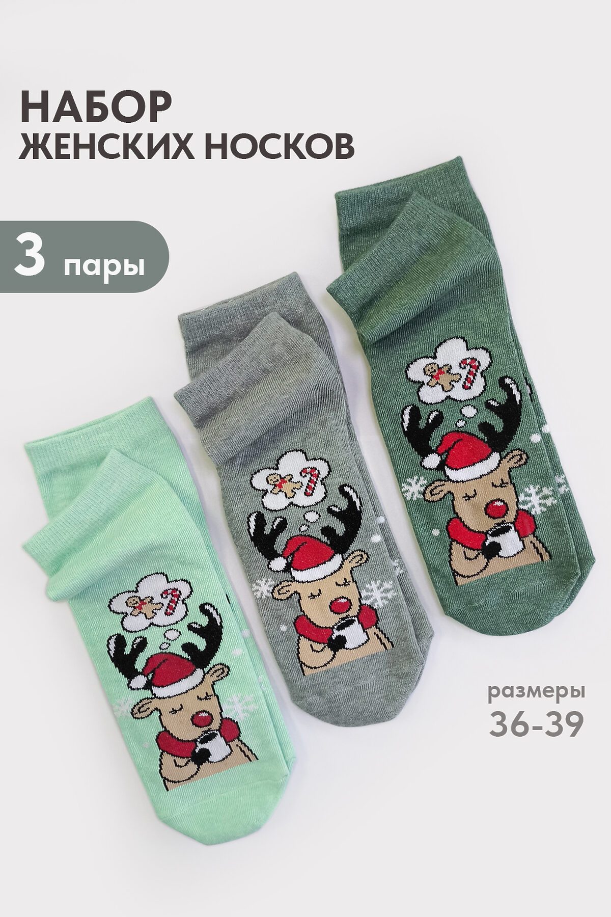 Носки стандарт Мечта (набор 3 пары) НАТАЛИ, олива, ментол, нефрит