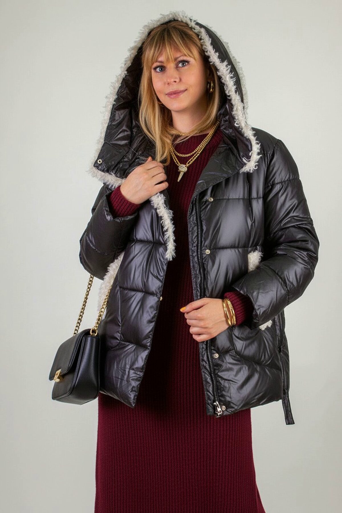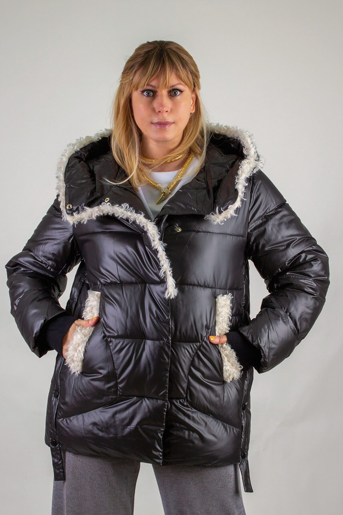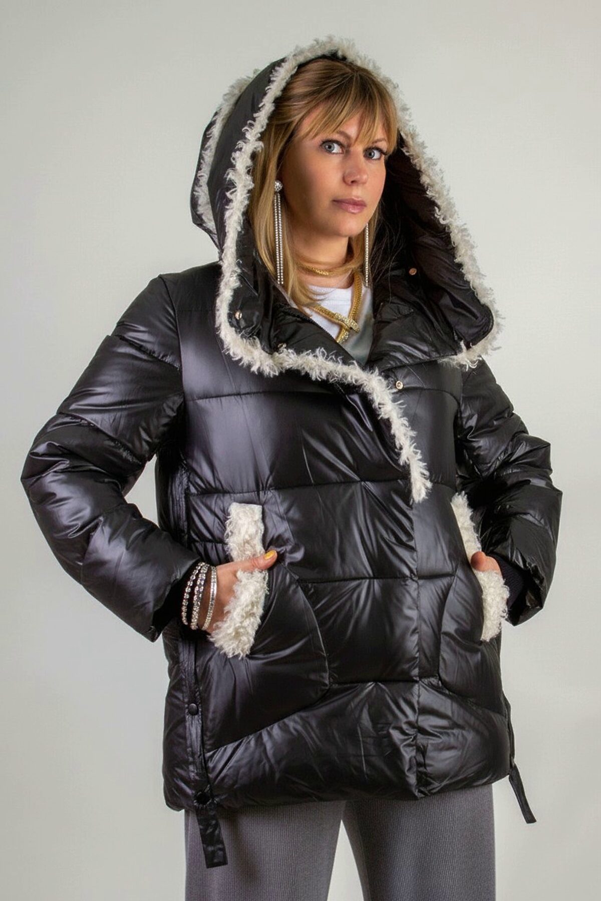 Стильная зимняя куртка арт. 2813 это идеальный выбор для тех, кто ценит продуманный дизайн, высокую функциональность и комфорт в холодное время года. Модель разработана в современном свободном крое, который не ограничивает движений и подходит для любого типа фигуры. Средняя длина куртки надёжно защищает бедра от ветра, а лёгкая невесомость изделия позволяет носить её даже в активном ритме городской жизни. Основной материал качественная глянцевая ткань с водо- и грязеотталкивающей пропиткой. Она не впитывает влагу, пыль и шерсть домашних животных, легко очищается и сохраняет безупречный лоск на протяжении всего сезона. Застёжка-молния дополнена утеплённой ветрозащитной планкой на кнопках, препятствующей проникновению холодного воздуха. Наполнитель файбер высококачественный утеплитель, обладающий лёгкостью, упругостью и гипоаллергенными свойствами. Простёганная классическим способом (не ультрастеп) конструкция гарантирует равномерное распределение волокон по всему объёму куртки, исключая образование холодных зон. Особое украшение куртки два боковых кармана на кнопке, обрамлённые искусственным мехом барашек нежно-белого оттенка. Тот же ворс используется на капюшоне и верхней части воротника до линии талии, придавая образу утончённость и лёгкую роскошь. Декоративная планка с кнопками по бокам визуально стройнит силуэт, при этом куртка остаётся свободной и не сковывает движений. Удобные детали: трикотажные манжеты на рукавах надёжно блокируют холод, а глубокий капюшон с кнопочной фиксацией легко трансформируется в высокий воротник-стойку. Внутренний карман на молнии сохранит ваши документы и гаджеты в безопасности. Черный универсальный цвет делает эту модель особенно практичной: она идеально гармонирует с любым гардеробом от джинсов и спортивных брюк до классических платьев. Куртка art. 2813 предназначена для суровых зим или евро-зимы с температурами до 20 C (при грамотном подборе базового слоя). Преимущества: современный комфортный крой; лёгкость и мягкость при сохранении тепла; качественные швы и фурнитура; эксклюзивные декоративные элементы; практичная длина и защищённость от непогоды. Выбирая куртку арт. 2813, вы получаете стильное, тёплое и функциональное изделие, которое станет украшением вашего зимнего гардероба и подарит чувство уюта даже в морозные дни.
