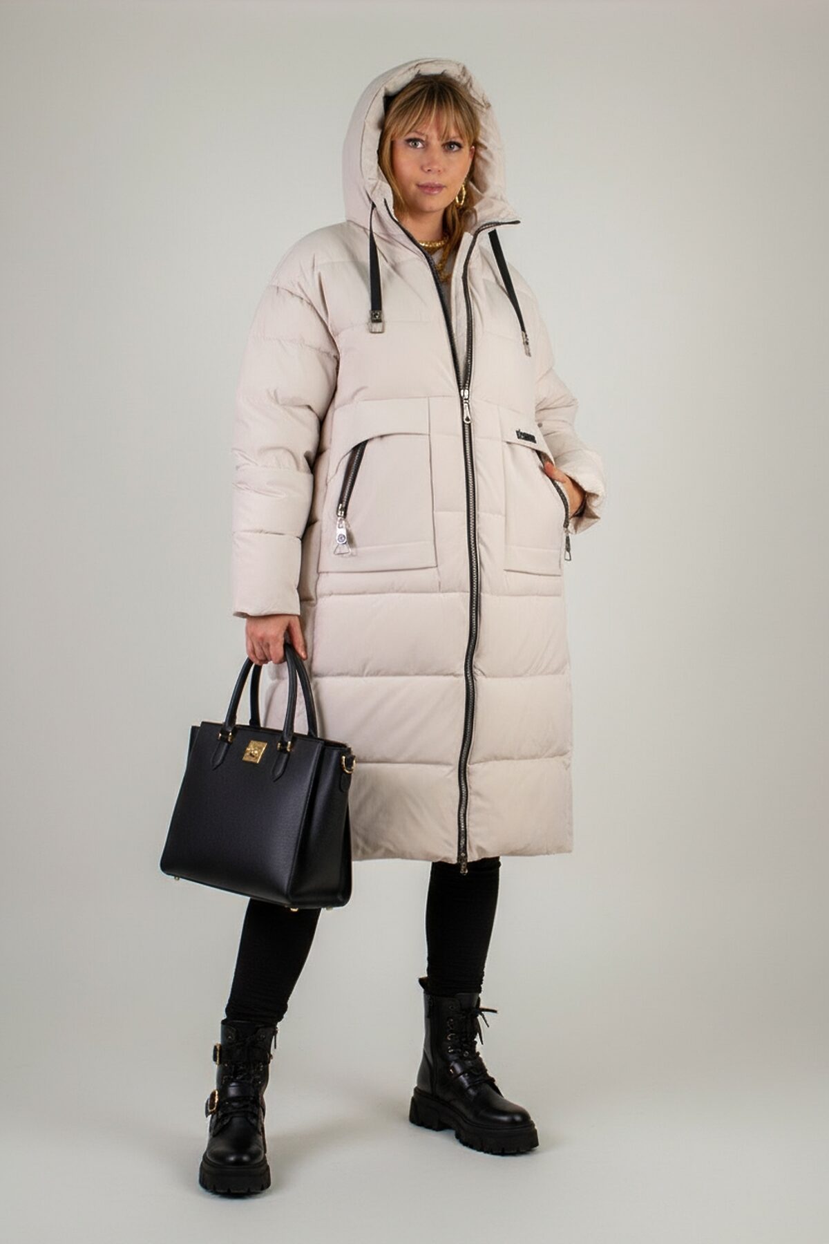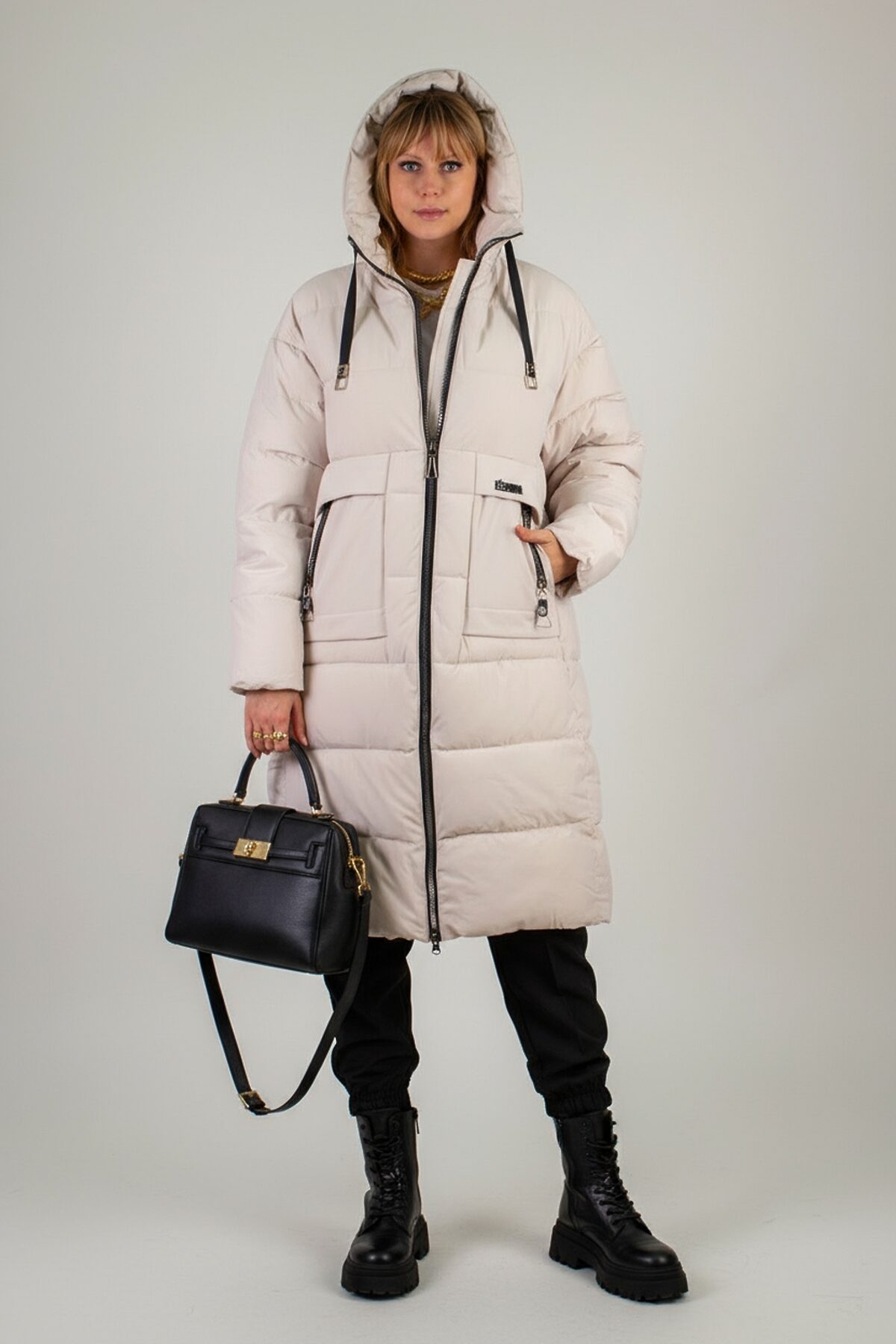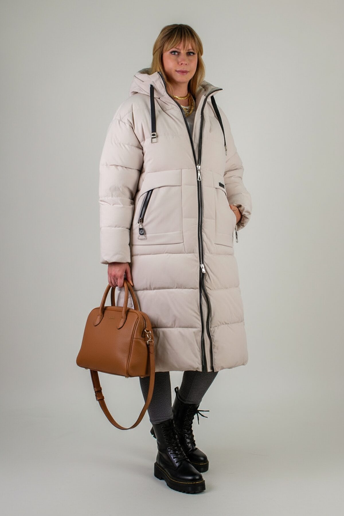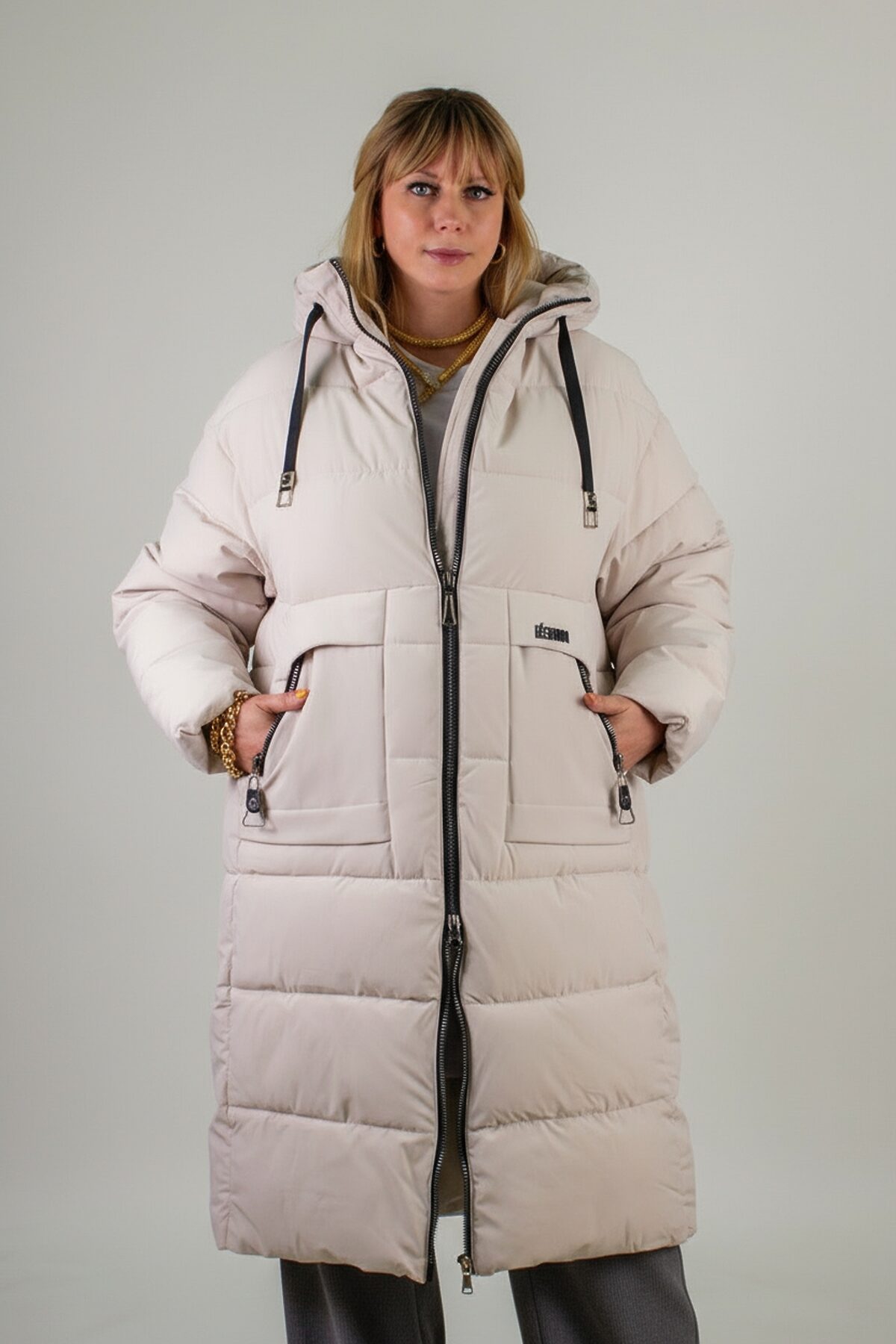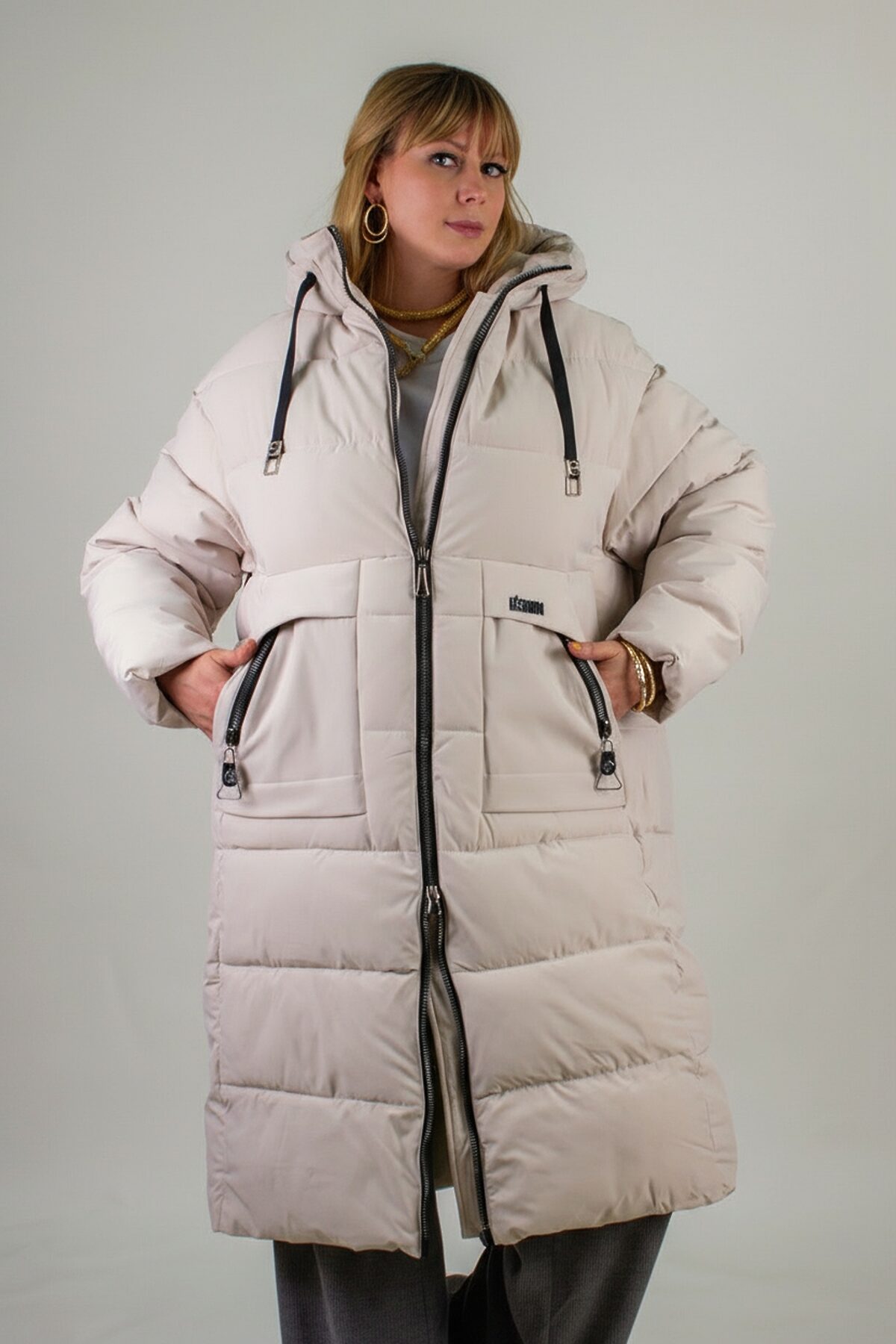 Зимняя куртка больших размеров арт. 2829 с высоким воротником-стойкой и двусторонней молнией идеальное сочетание высокого качества, продуманного комфорта и актуального дизайна. Удлинённая модель свободного кроя опускается ниже колен, обеспечивая надёжную защиту от ветра и холода в суровые морозы. Матовая ткань высокого качества отличается повышенной износостойкостью и стойкостью к влаге, сохраняя безупречный внешний вид при активном режиме носки и позволяет оставаться сухой и опрятной при любом погодном сюрпризе, будь то дождь, мокрый снег или коварная слякоть. Куртка простегана равномерным стежком (не ультрастеп) это гарантированная ровная фиксация утеплителя по всему объёму, без образования холодных зон. В качестве наполнителя используется современный синтетический файбер: он лёгкий, хорошо сохраняет тепло и не впитывает влагу. Подкладка выдержана в точном цвете внешнего материала, что придаёт изделию цельный и завершённый вид изнутри. Практичность модели усилена продуманными деталями: капюшон на завязках легко подгоняется под форму головы, защищая от ветра; внутренняя планка за молнией не допускает продувания и придаёт изделию аккуратность; манжеты на рукавах плотно облегают запястье, не давая холоду проникнуть внутрь. Для хранения вещей предусмотрены большие карманы асимметричной формы с кнопками и украшены молниями. А потайной внутренний кармашек станет надёжным хранилищем для телефона, кошелька или документов. Современный актуальный крой, удобная посадка и продуманная длина позволяют сочетать модель с любыми комплектами одежды: от повседневных джинсов до элегантного делового стиля. Куртка арт. 2829 это универсальное решение для тех, кто ценит комфорт, тёплую защиту и безупречный внешний вид даже в самых экстремальных зимних условиях. Независимо от того, отправляетесь ли вы на прогулку по городу, в загородную поездку или встречаете праздник на свежем воздухе, эта куртка станет надёжным спутником и подчеркнёт вашу уверенность в любой ситуации.