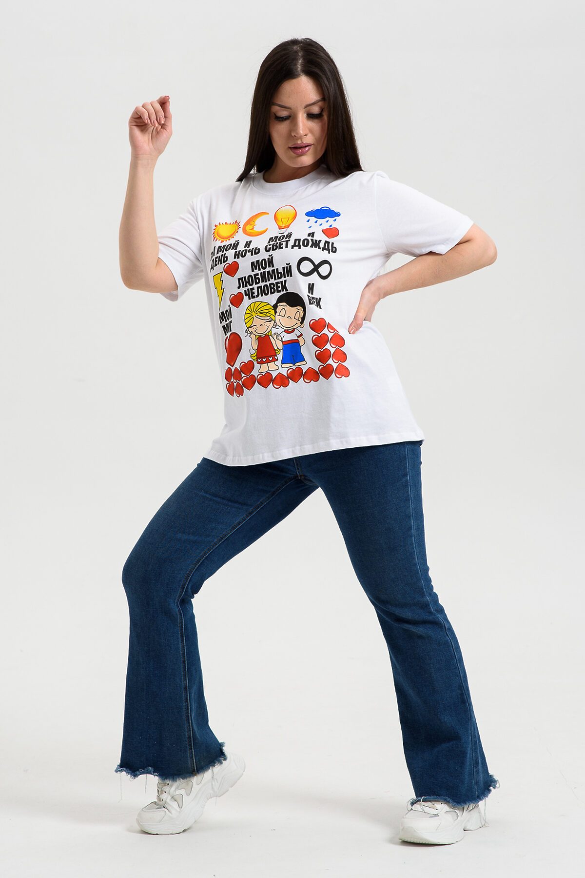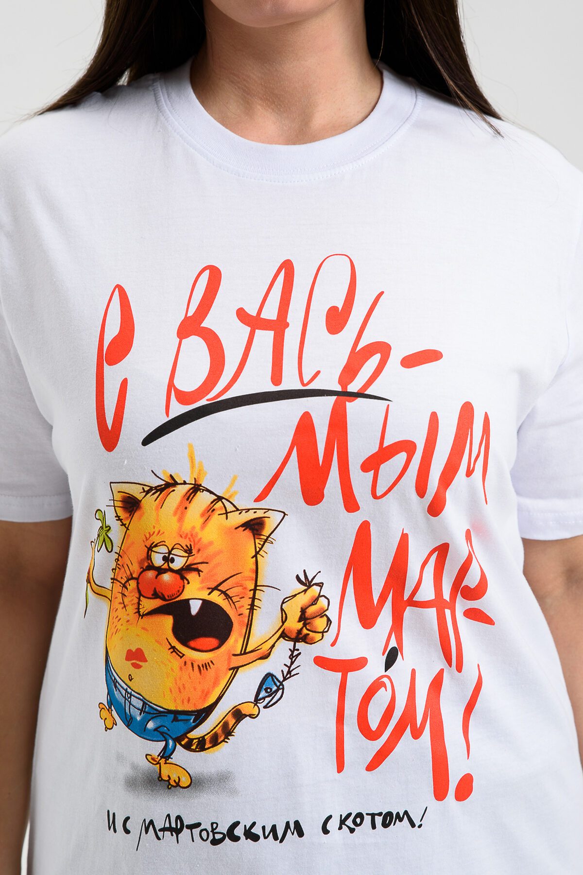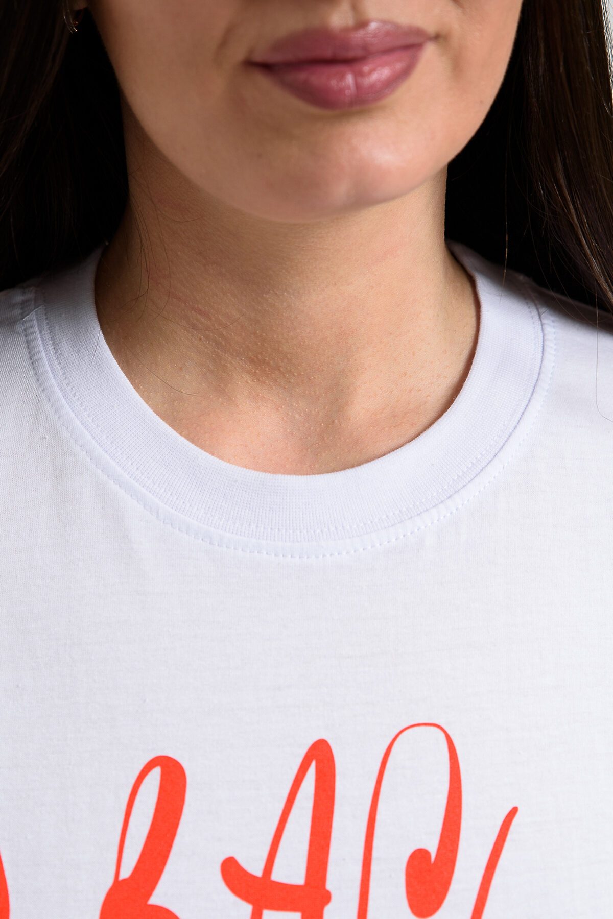 Футболка это идеальный выбор для женщин, предпочитающих комфорт и стиль. Сделанная из 100% хлопка, эта футболка обеспечивает отличную дышащую способность, делая её идеальной для домашнего использования, пляжного отдыха или просто для повседневного ношения. Уникальный принт на передней части добавляет элемент индивидуальности и стиля, делая эту футболку отличным дополнением к вашему гардеробу.