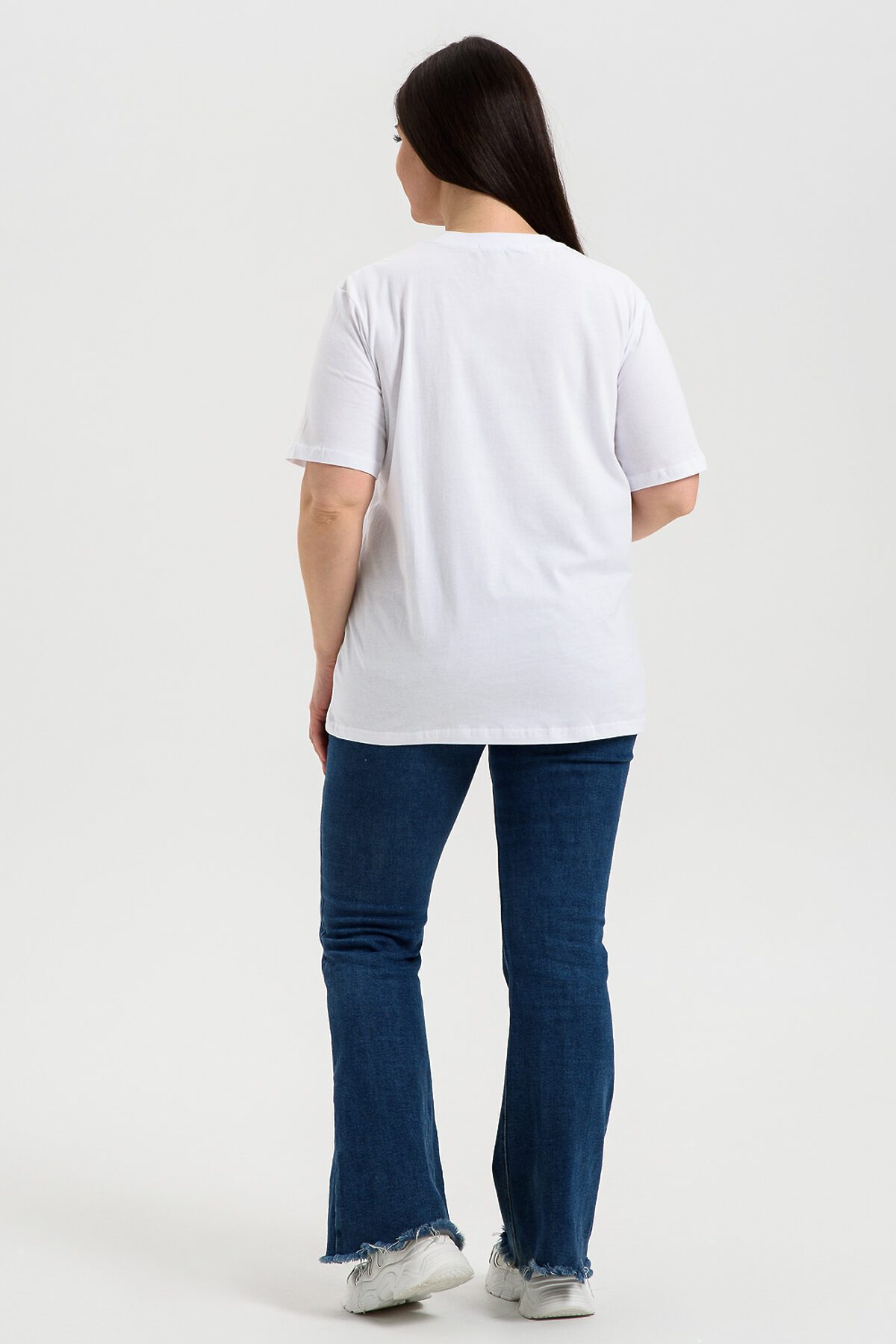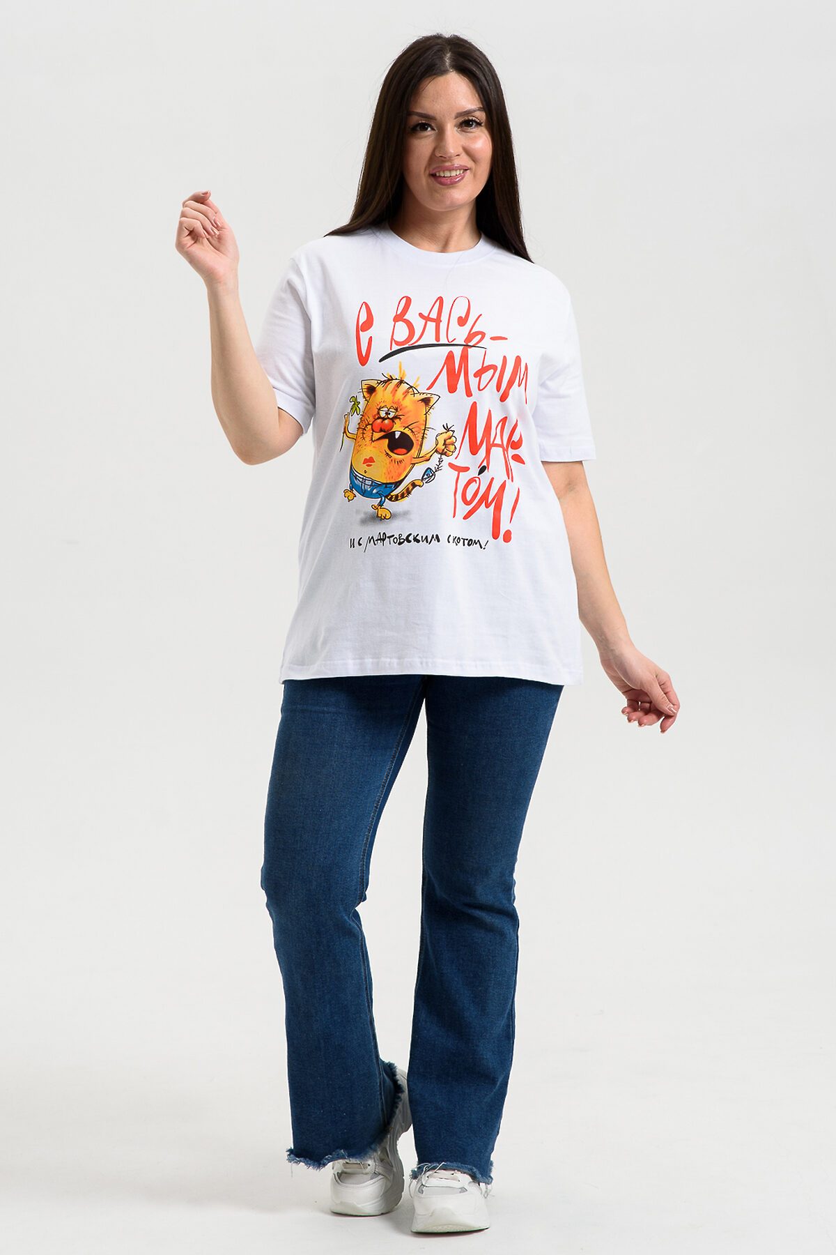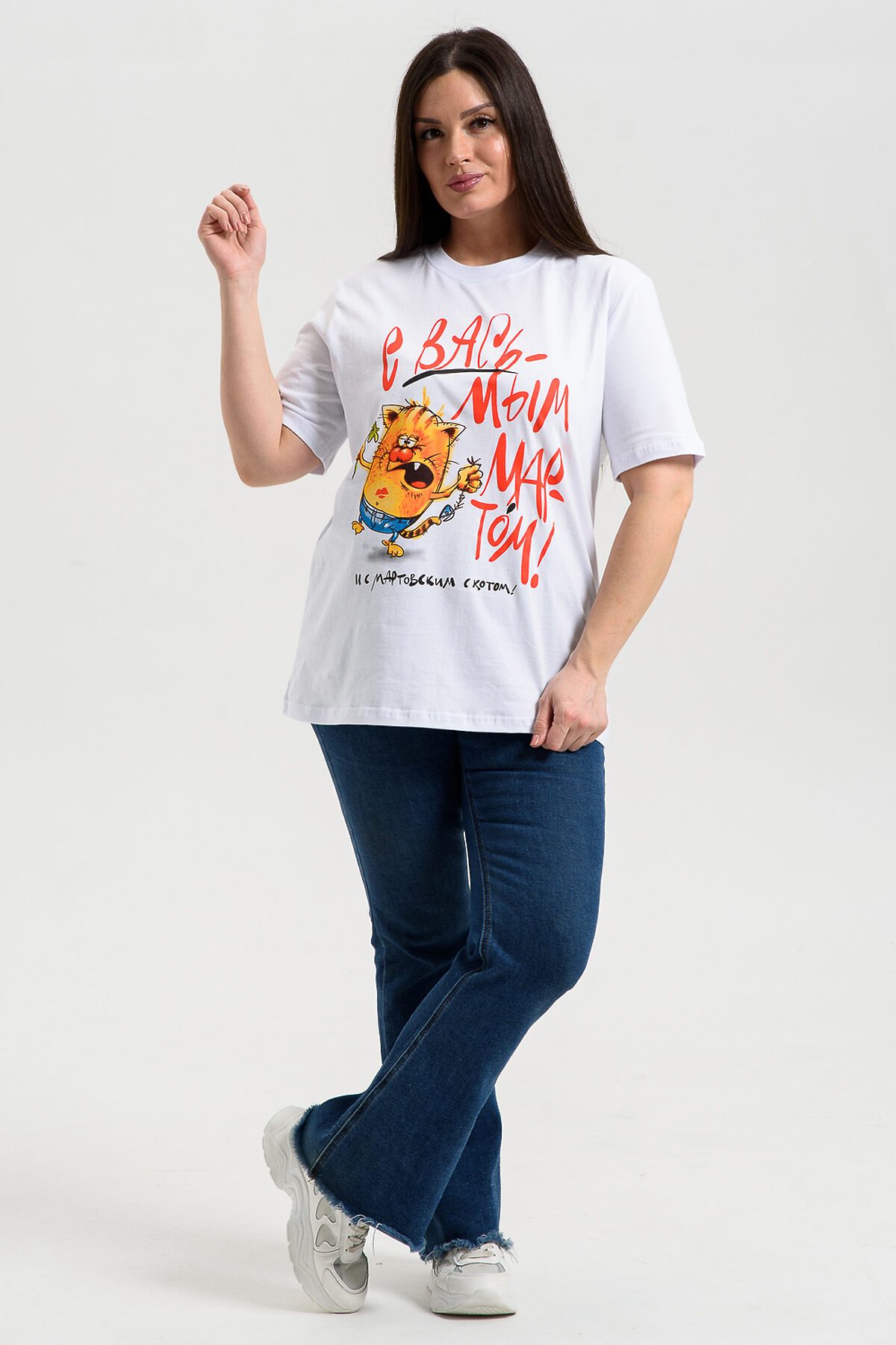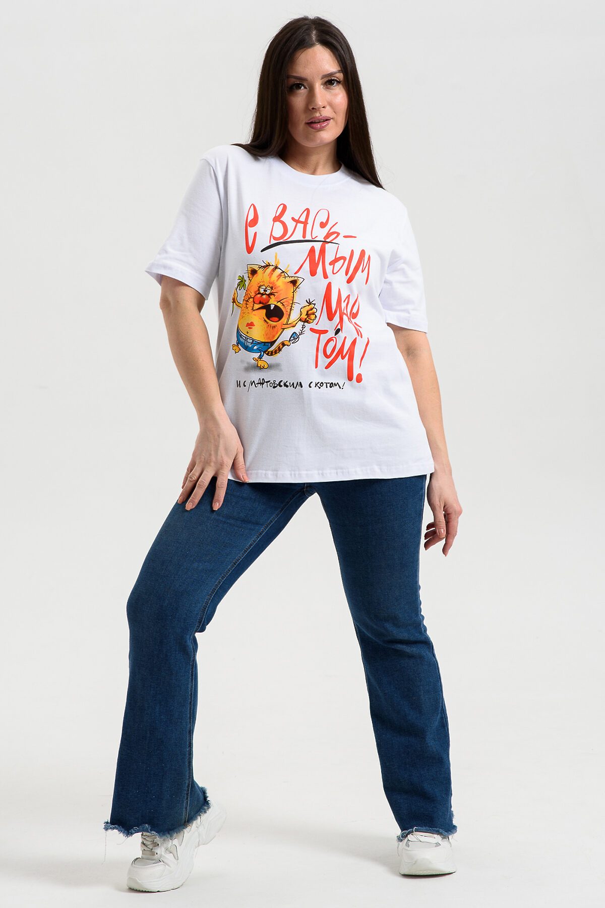 Футболка это идеальный выбор для женщин, предпочитающих комфорт и стиль. Сделанная из 100% хлопка, эта футболка обеспечивает отличную дышащую способность, делая её идеальной для домашнего использования, пляжного отдыха или просто для повседневного ношения. Уникальный принт на передней части добавляет элемент индивидуальности и стиля, делая эту футболку отличным дополнением к вашему гардеробу.