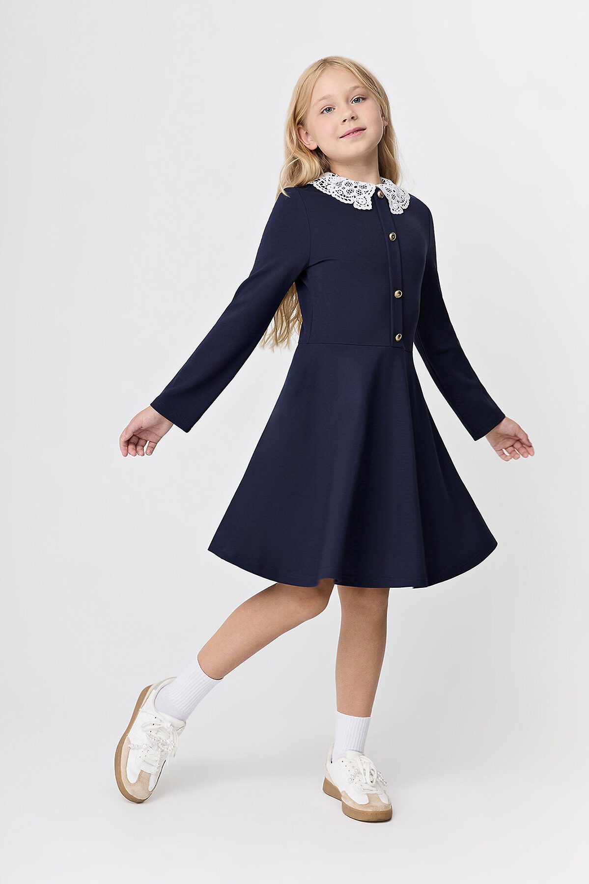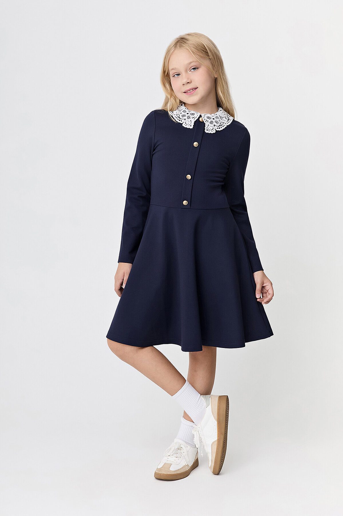 Сарафан для девочек станет отличным выбором для учебных будней. Он разработан с учетом потребностей школьной возрастной группы и обеспечивает комфорт в течение всего дня. Особенностью модели является застежка на пуговицах, что придает дополнительный стиль. Юбка выполнена в форме солнца, что позволяет свободно двигаться и чувствовать себя уверенно. Боковые швы юбки оснащены карманами, которые будут полезны для хранения мелочей или школьных принадлежностей. Нижняя часть изделия украшена кружевом, добавляющим изысканный штрих к классическому дизайну.