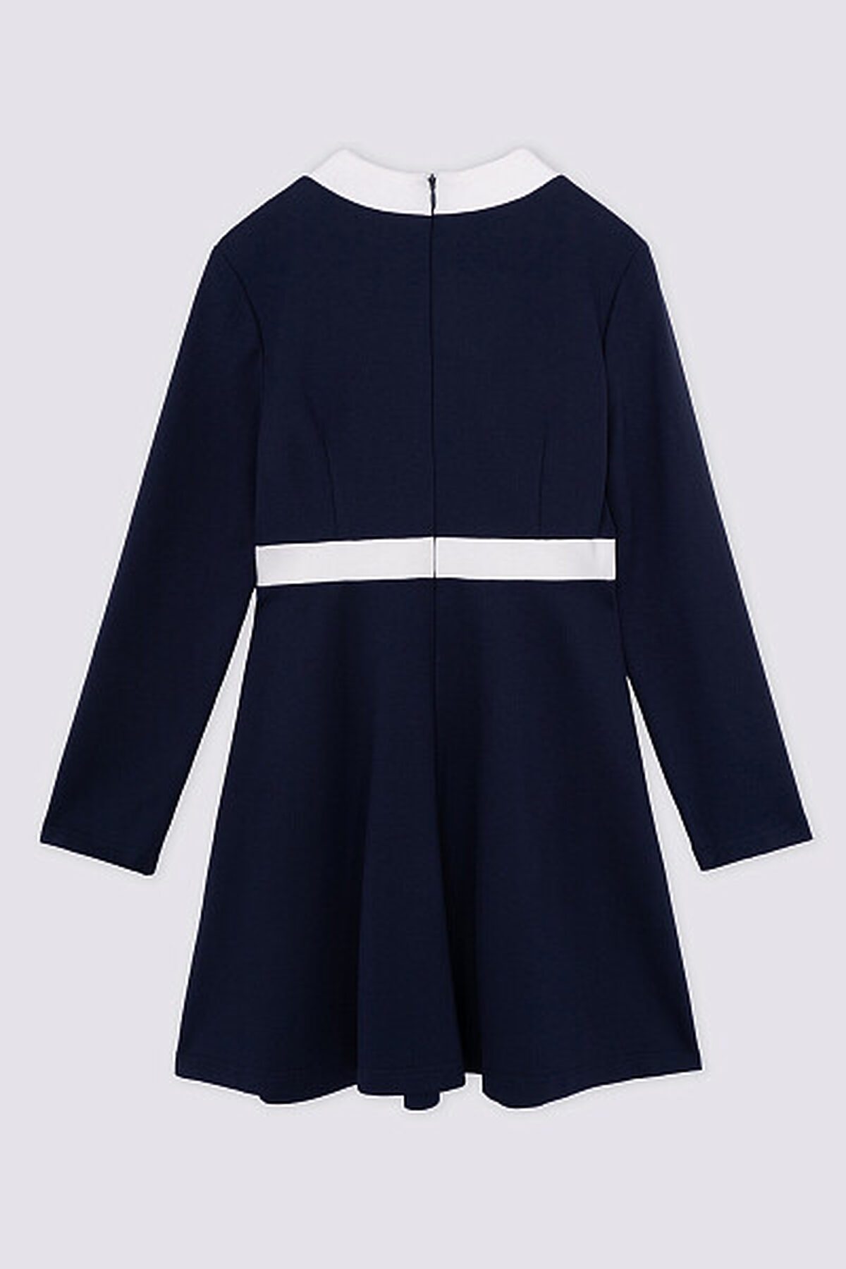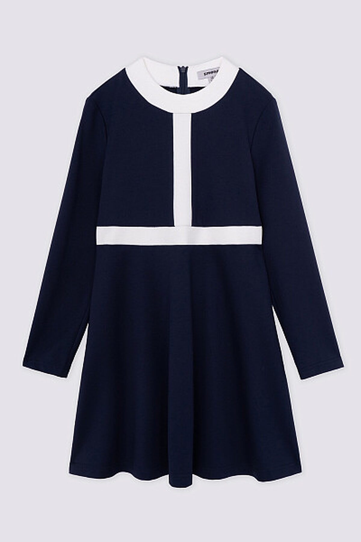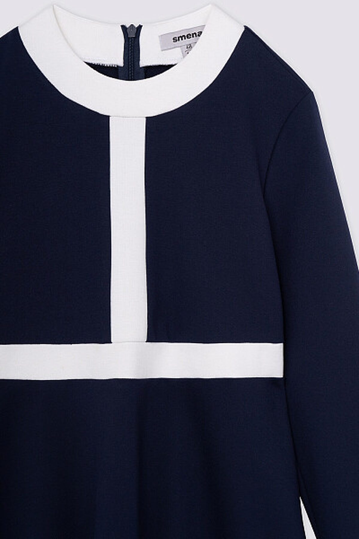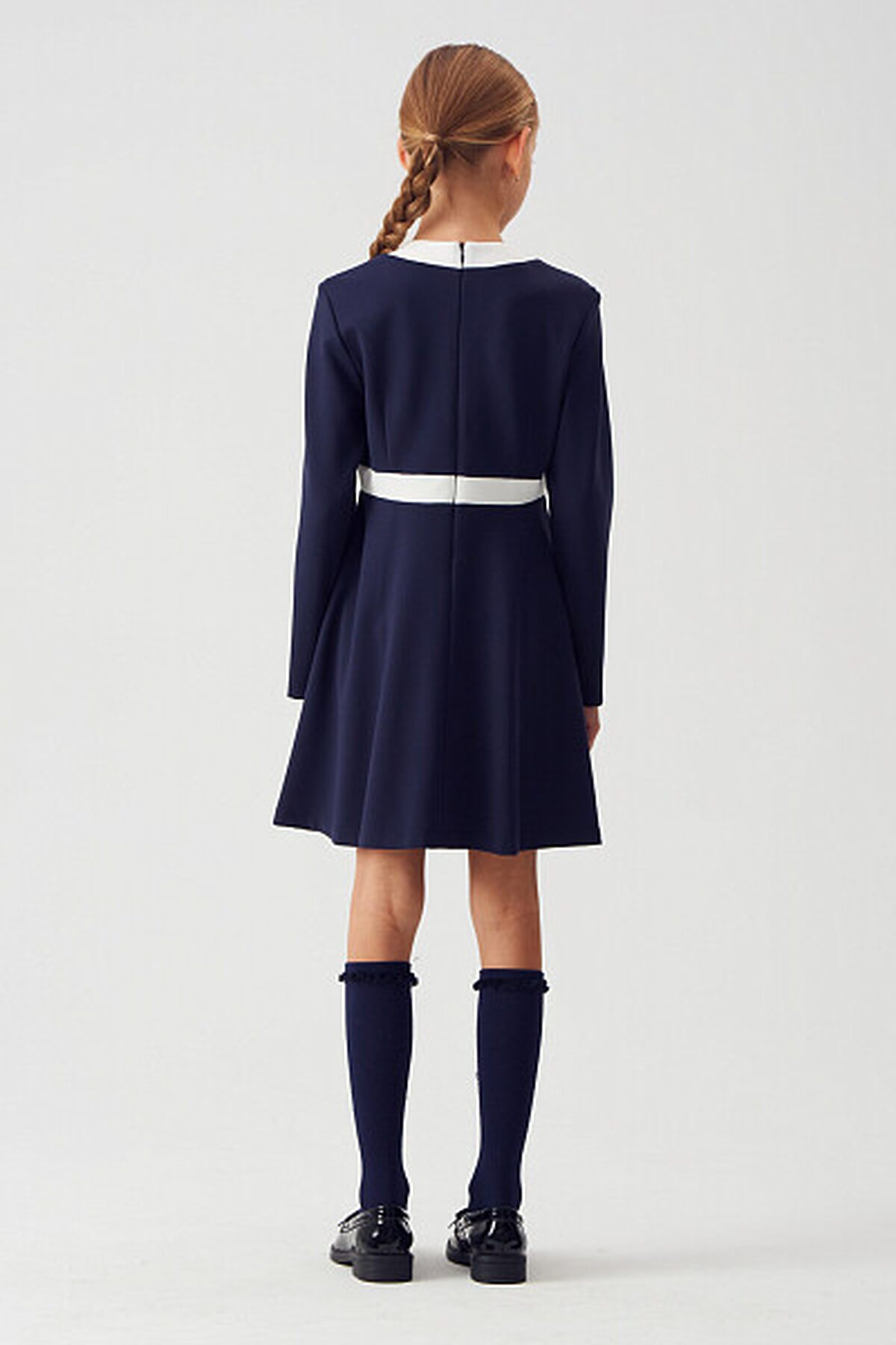 Отрезное по линии талии изделие, оснащено застежкой на потайную тесьму «молния» в среднем шве спинки. Вставка-пояс притачена вкруговую к лифу и юбке, создавая утонченный силуэт. Длинные прямые рукава добавляют нотку строгости и уместны для учебных заведений. Юбка расклешенная к низу обеспечивает свободу движений и стильный внешний вид. В боковых швах юбки предусмотрены карманы.
