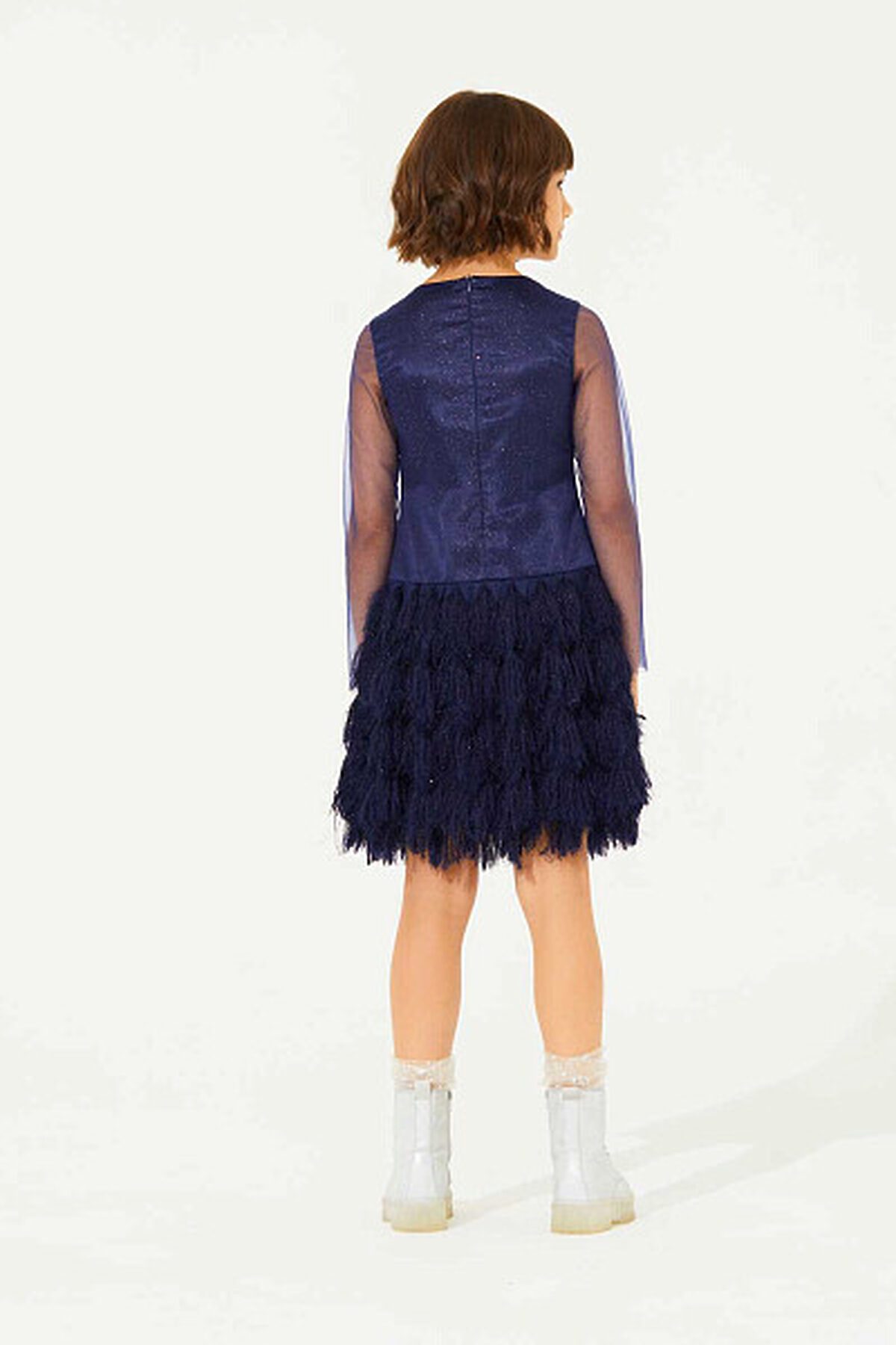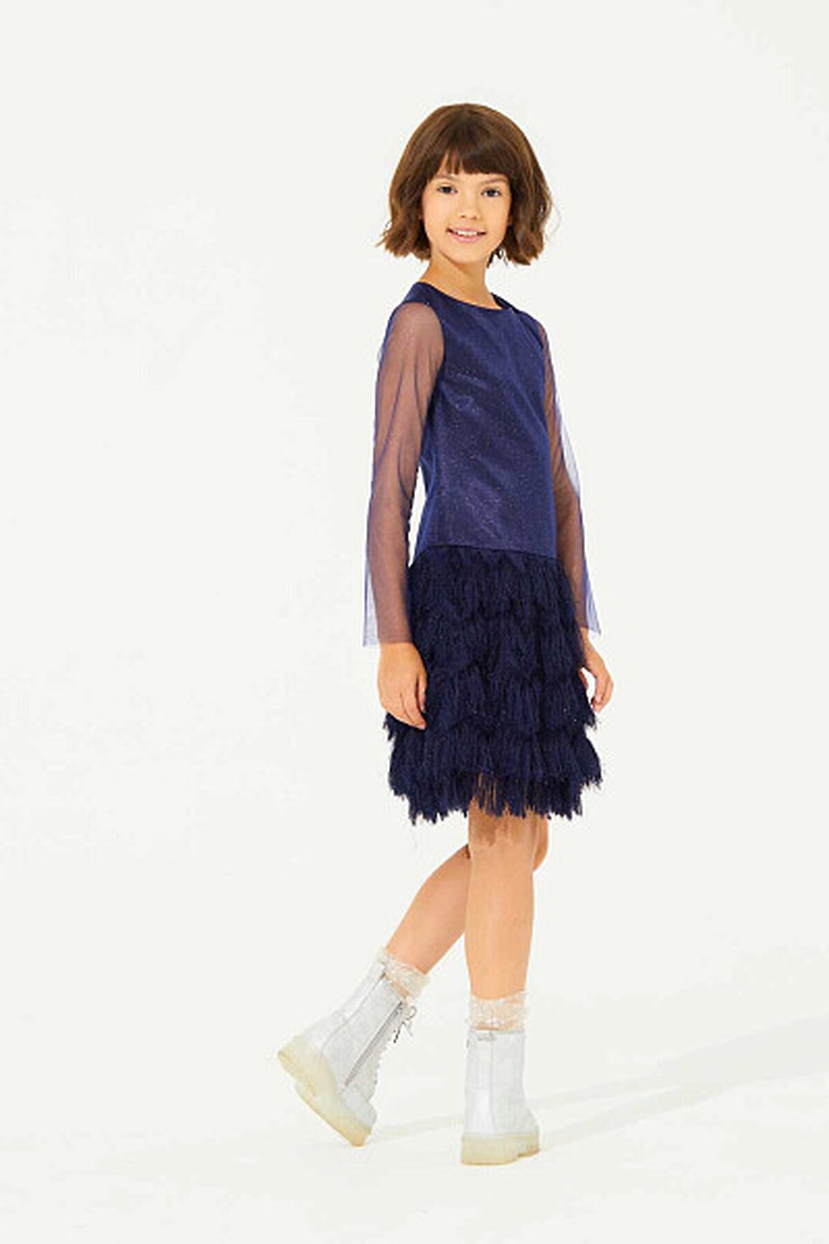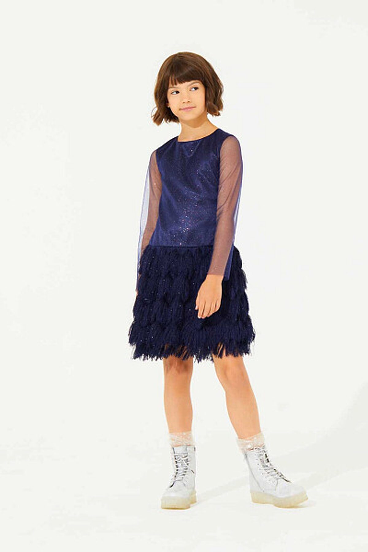 Платье, о котором мечтает каждая девочка! Верх платья и длинные рукава выполнены из мягкой сетки с голографическим принтом, чтобы маленькая принцесса блистала на новогоднем утреннике. Пышная юбка из отделочной ткани с декоративной бахромой добавляет платью стиля и изысканности. Замок на спинке обеспечивает удобство при надевании, а хлопковая подкладка делает платье комфортным и приятным на ощупь.