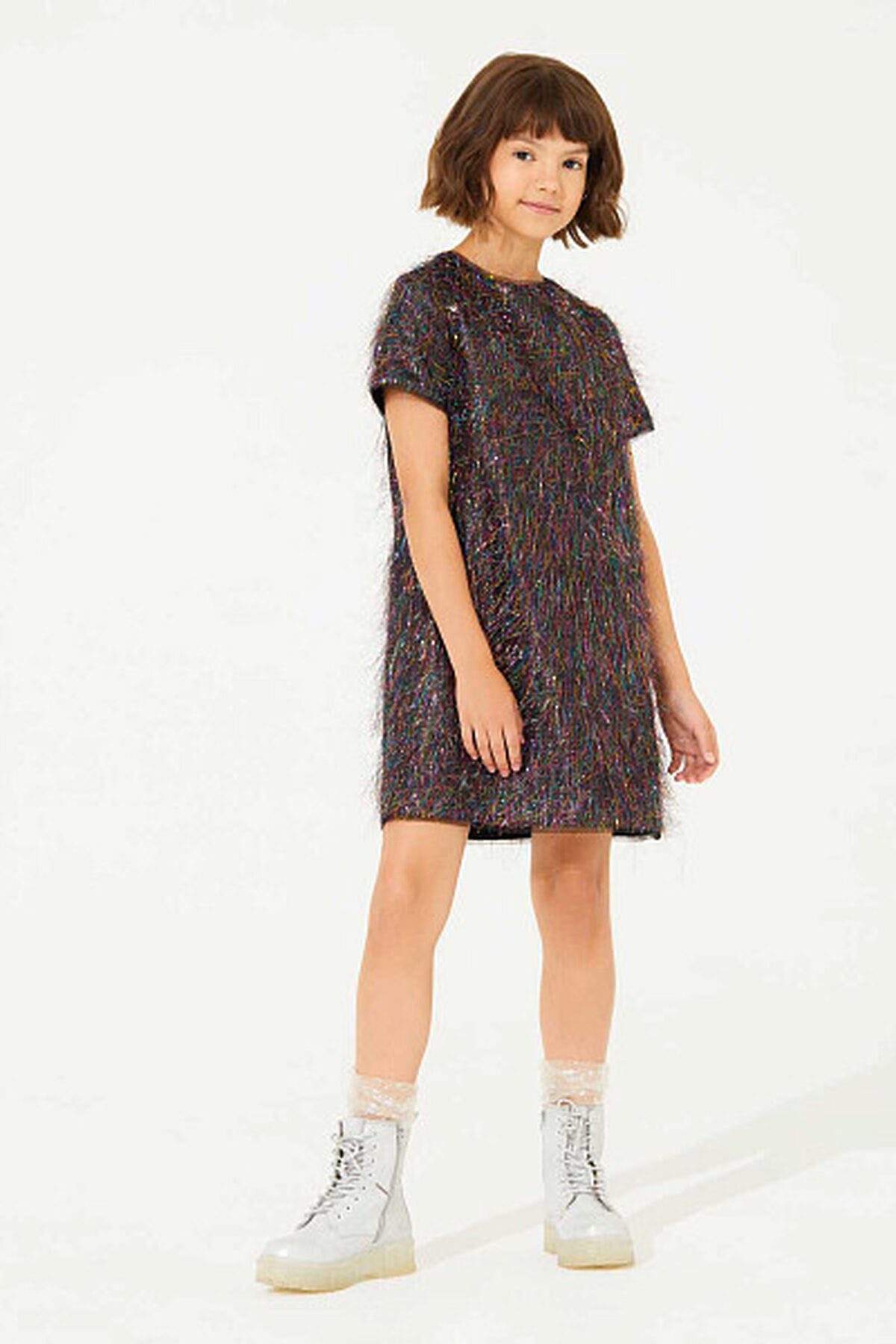 Лаконичное платье из блестящей ткани "дождик" не оставит вашу принцессу незамеченной на любом празднике! Платье прямого силуэта с короткими рукавами подойдёт для девочек любой комплекции. Оно не сковывает движения во время активных игр, а хлопковая подкладка делает платье комфортным и приятным к телу. Сзади предусмотрена удобная застежка на горловине, которая обеспечивает удобство при надевании.