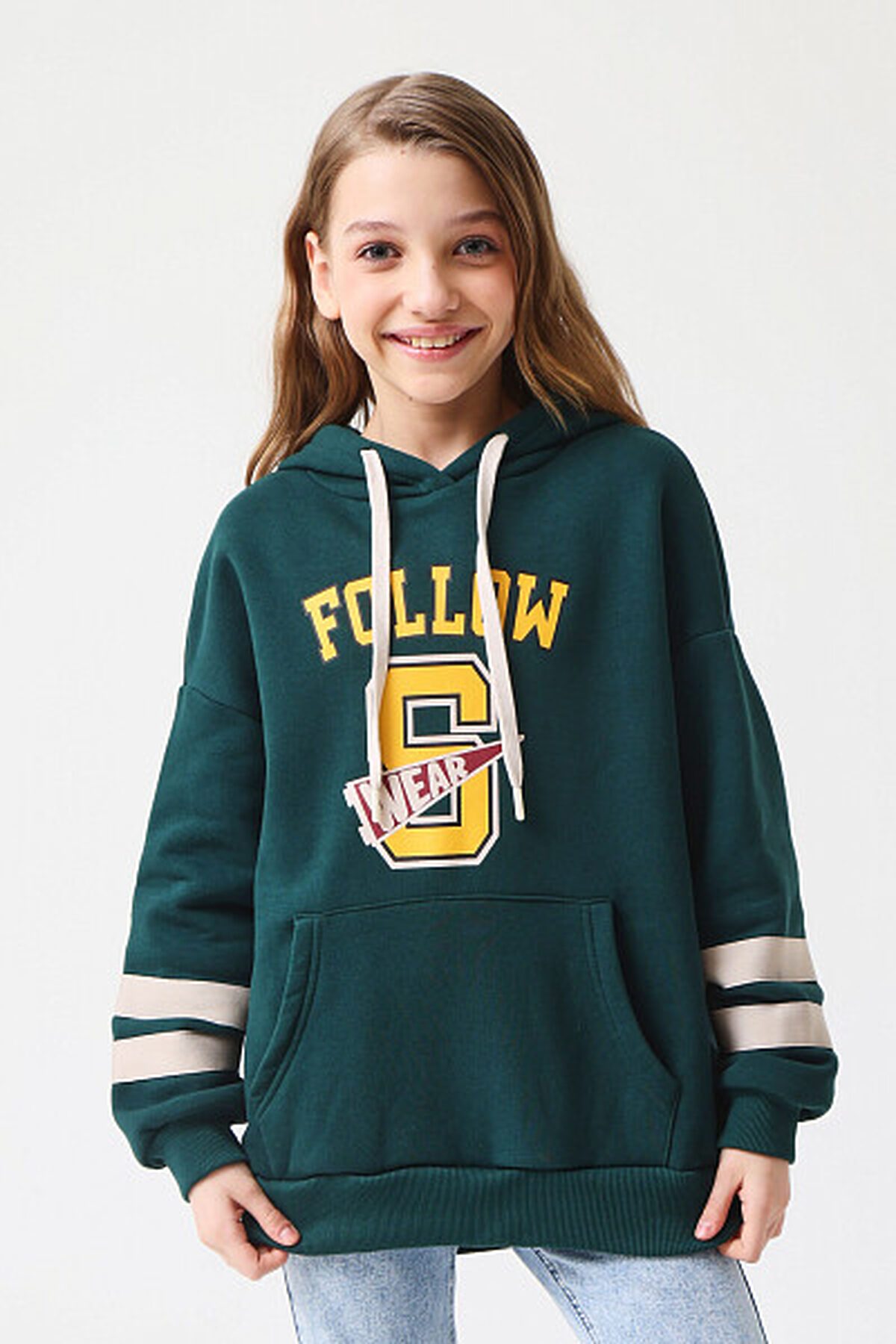 Объемное худи из футера с начесом оверсайз силуэта идеально для холодного времени года. Модель без застежки, с объемным капюшоном со шнурком для регулировки. Худи дополнено большим карманом-кенгуру и трендовым принтом на груди. Рукава оформлены контрастными полосками. Представлено в 2 цветах