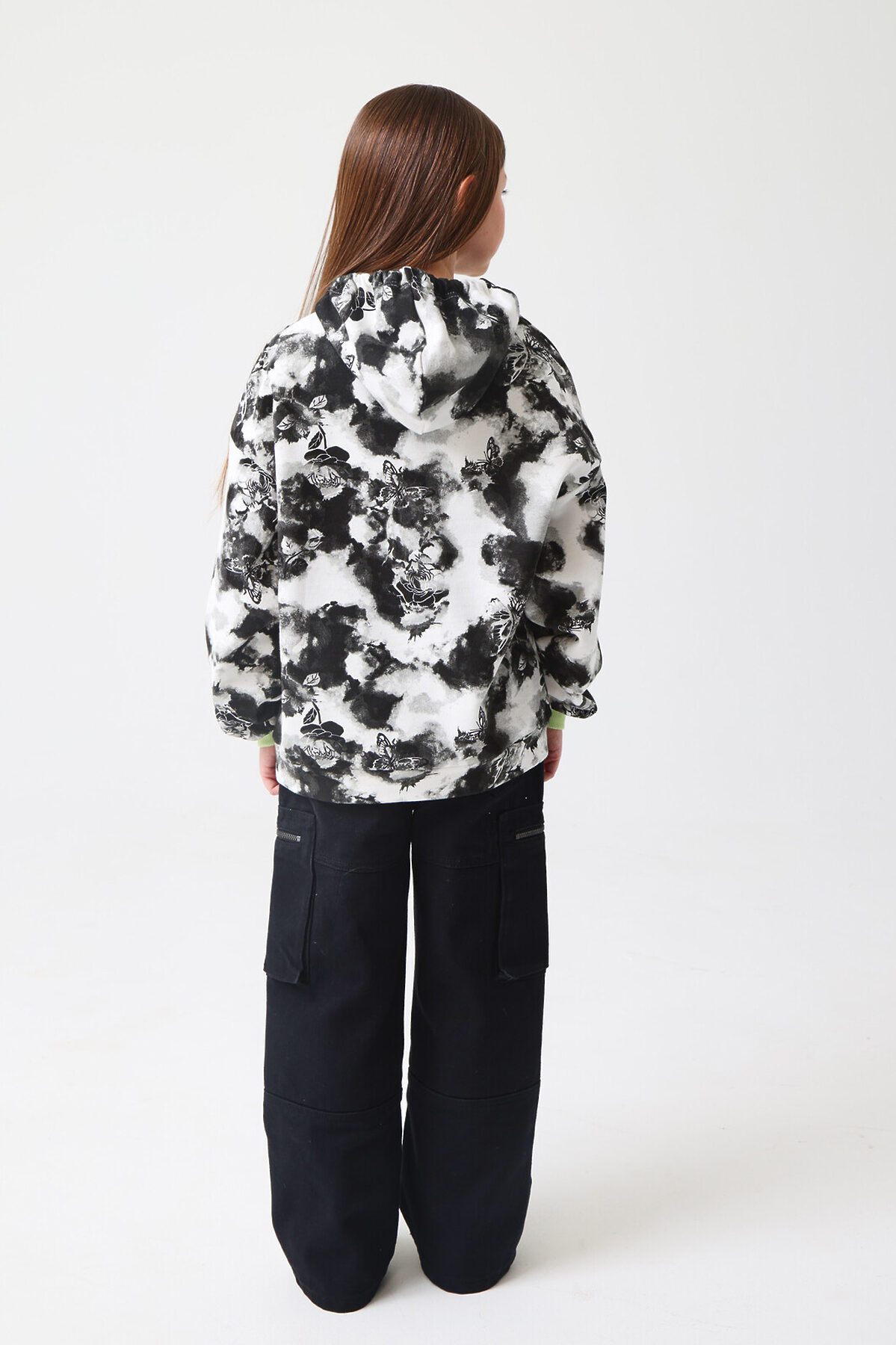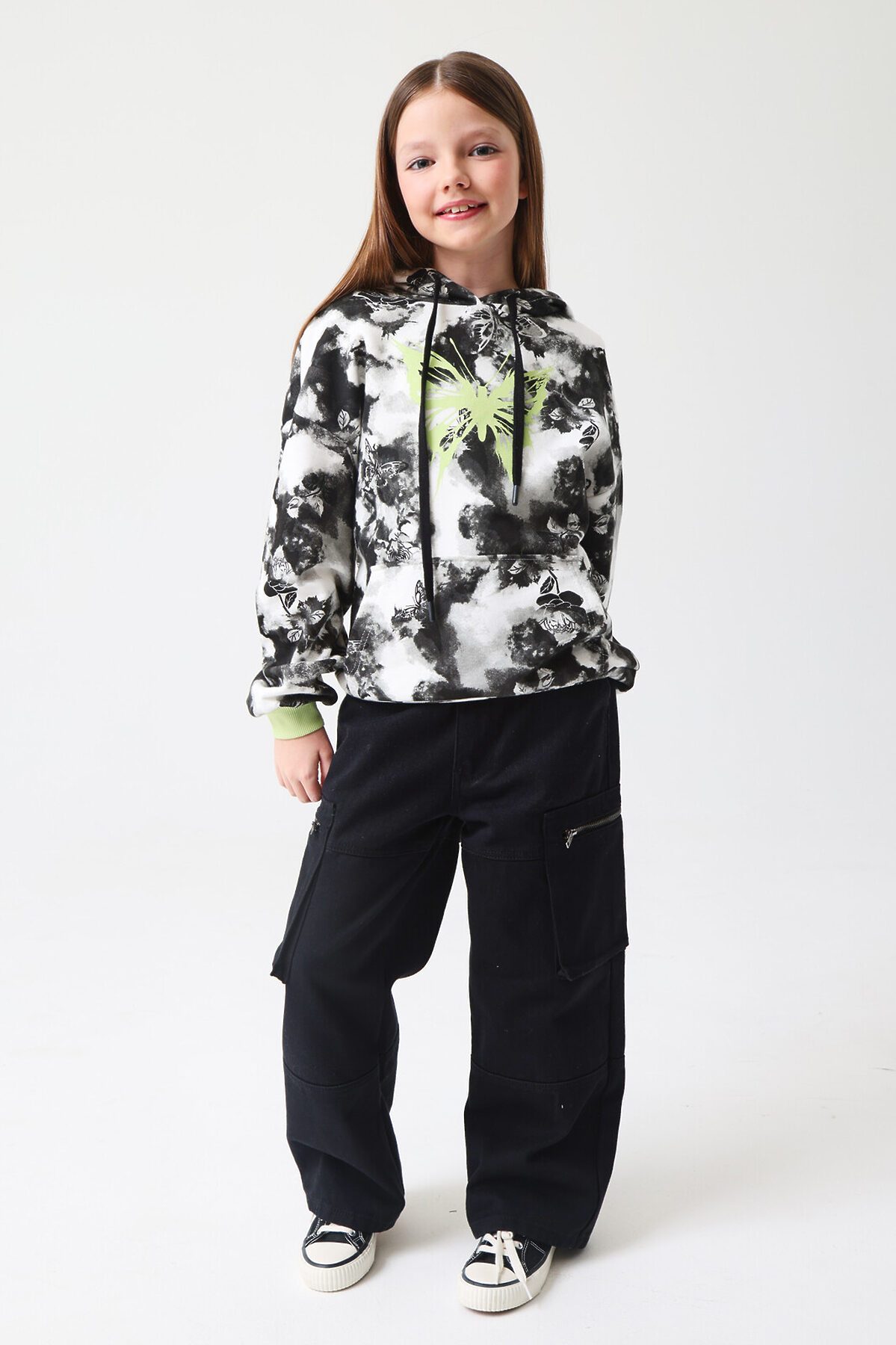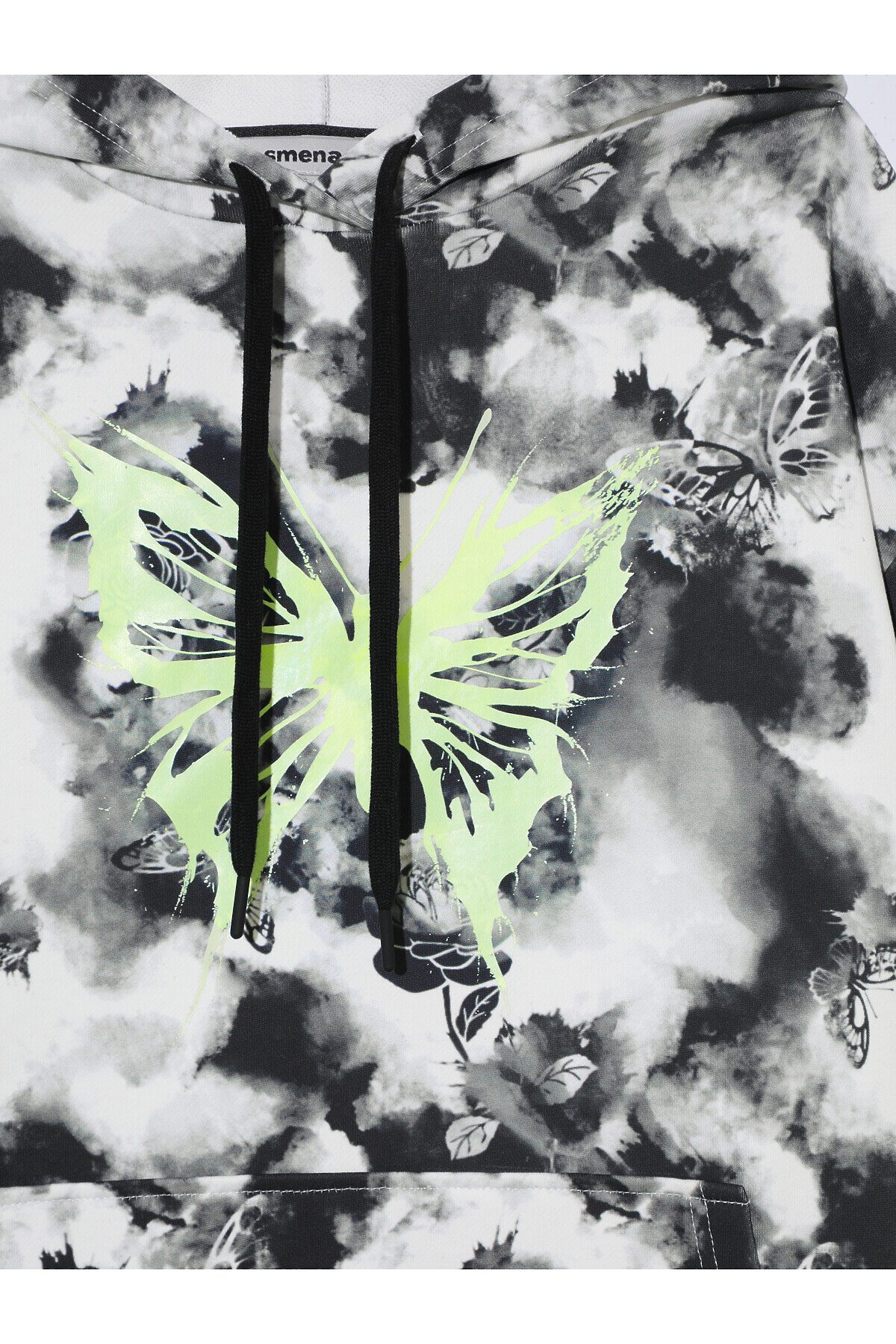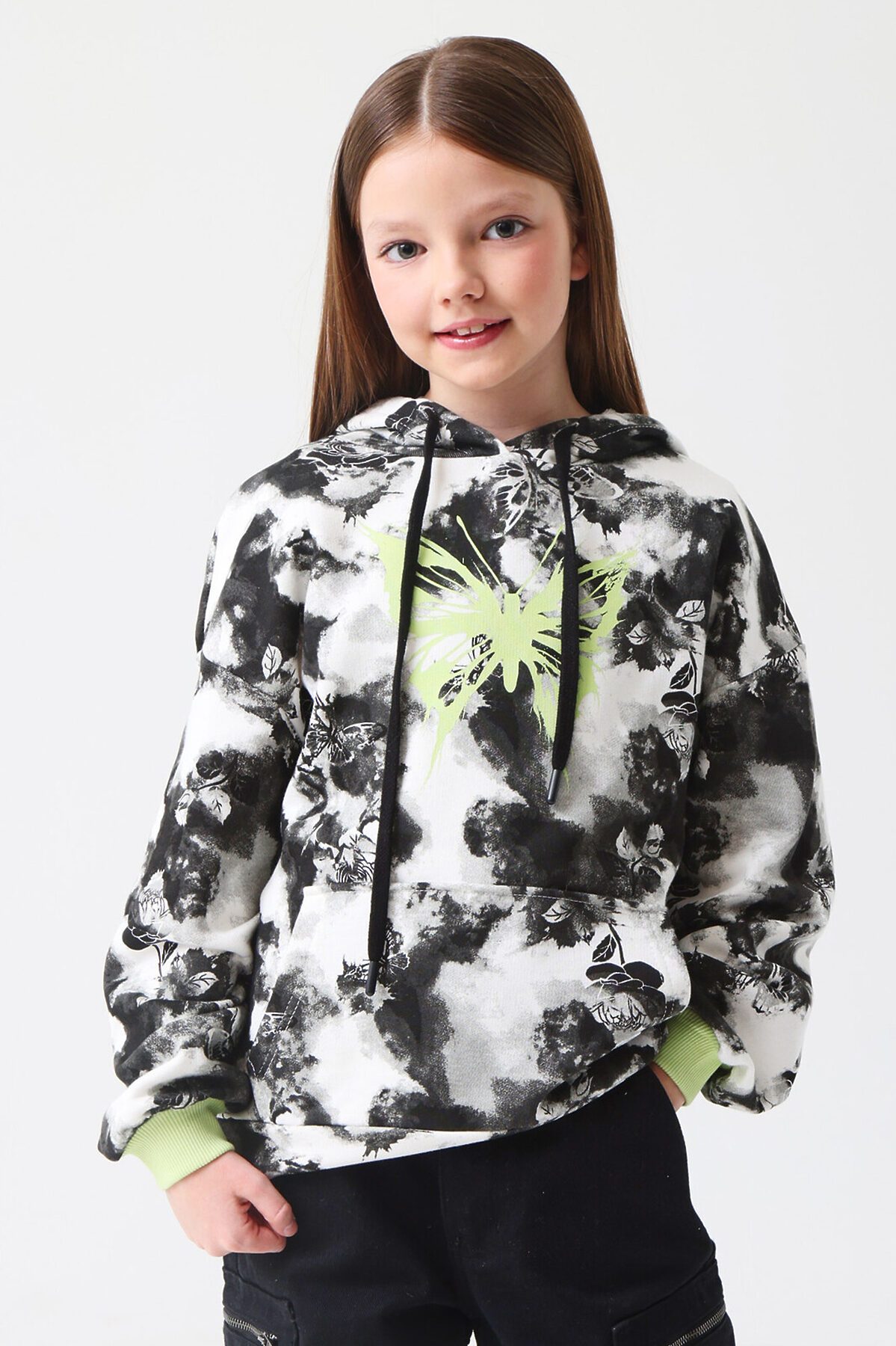 Объемное худи из футера с начесом, идеально подходящее для прохладного времени года. Толстовка без застежки, с объемным капюшоном со шнурком для регулировки. Модель в трендовом оверсайз силуэте с эффектом ""тай-дай"" также дополнена большим карманом-кенгуру и креативным принтом с яркой надписью. Худи с длинными рукавами оформлено трикотажными манжетами, а также манжетами на поясе и воротнике.