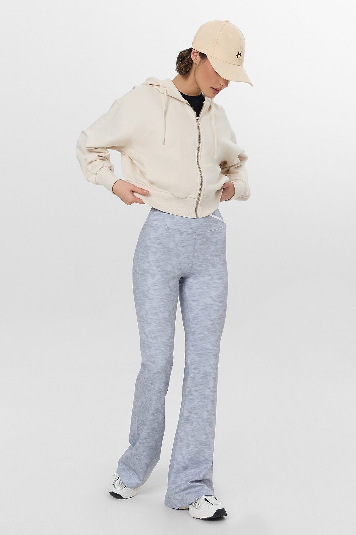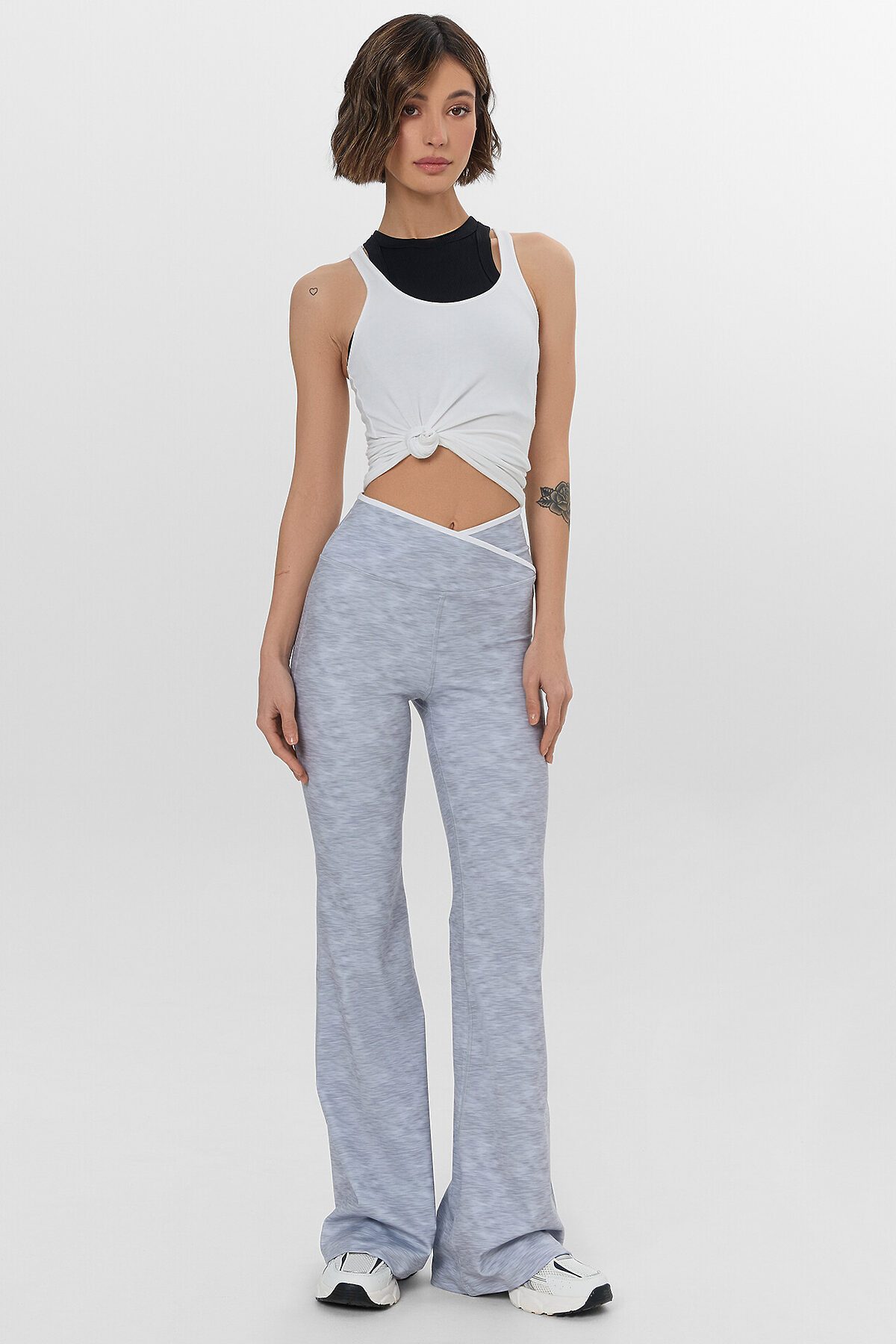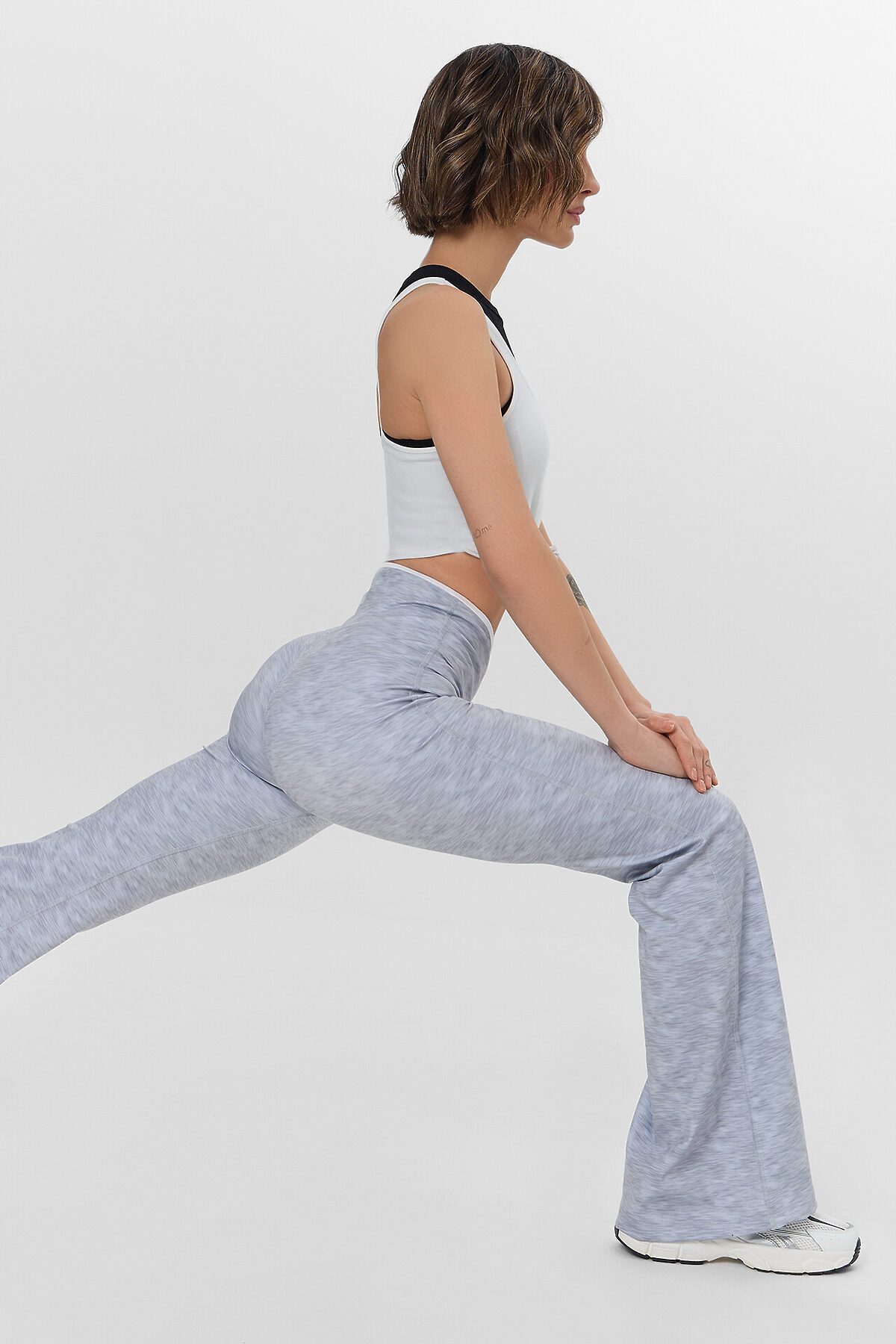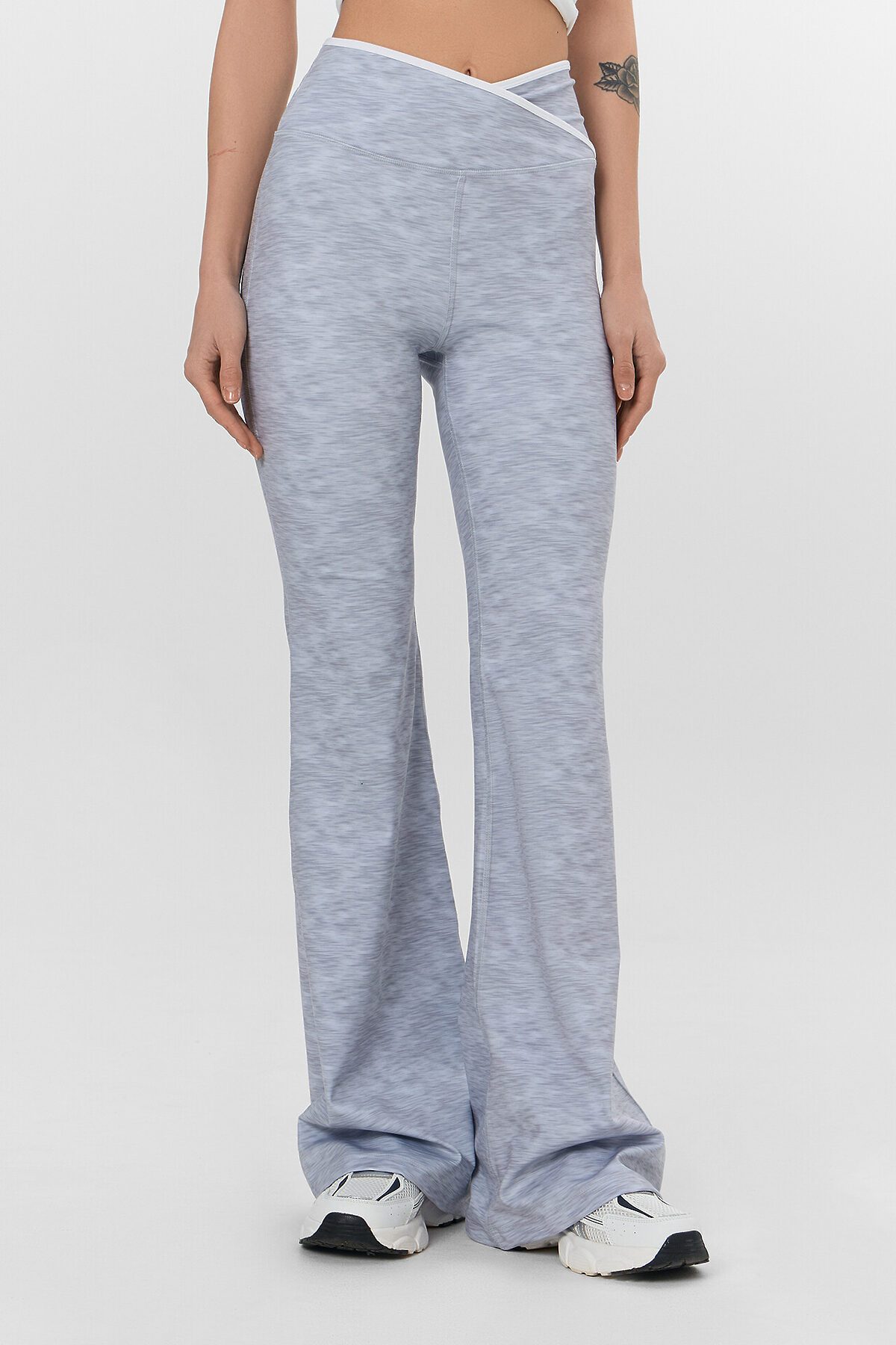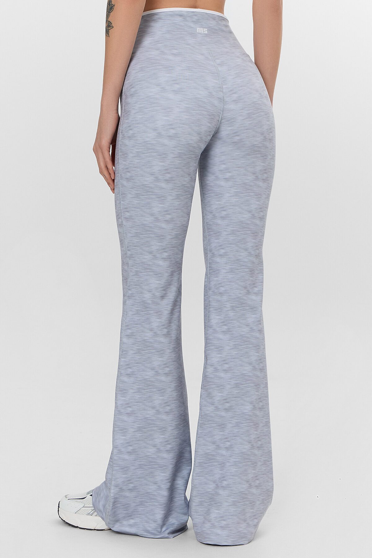 Брюки клеш плотно облегающие бедра до колен, с высокой линией талии, с ластовицей. Пояс отрезной широкий, спереди фигурный. По верхнему срезу пояса - бейка из основного полотна. На внутренней части задней детали пояса обработан накладной карман. Нижние срезы обработаны швом вподгибку на 2х игольной плоскошовной машине.