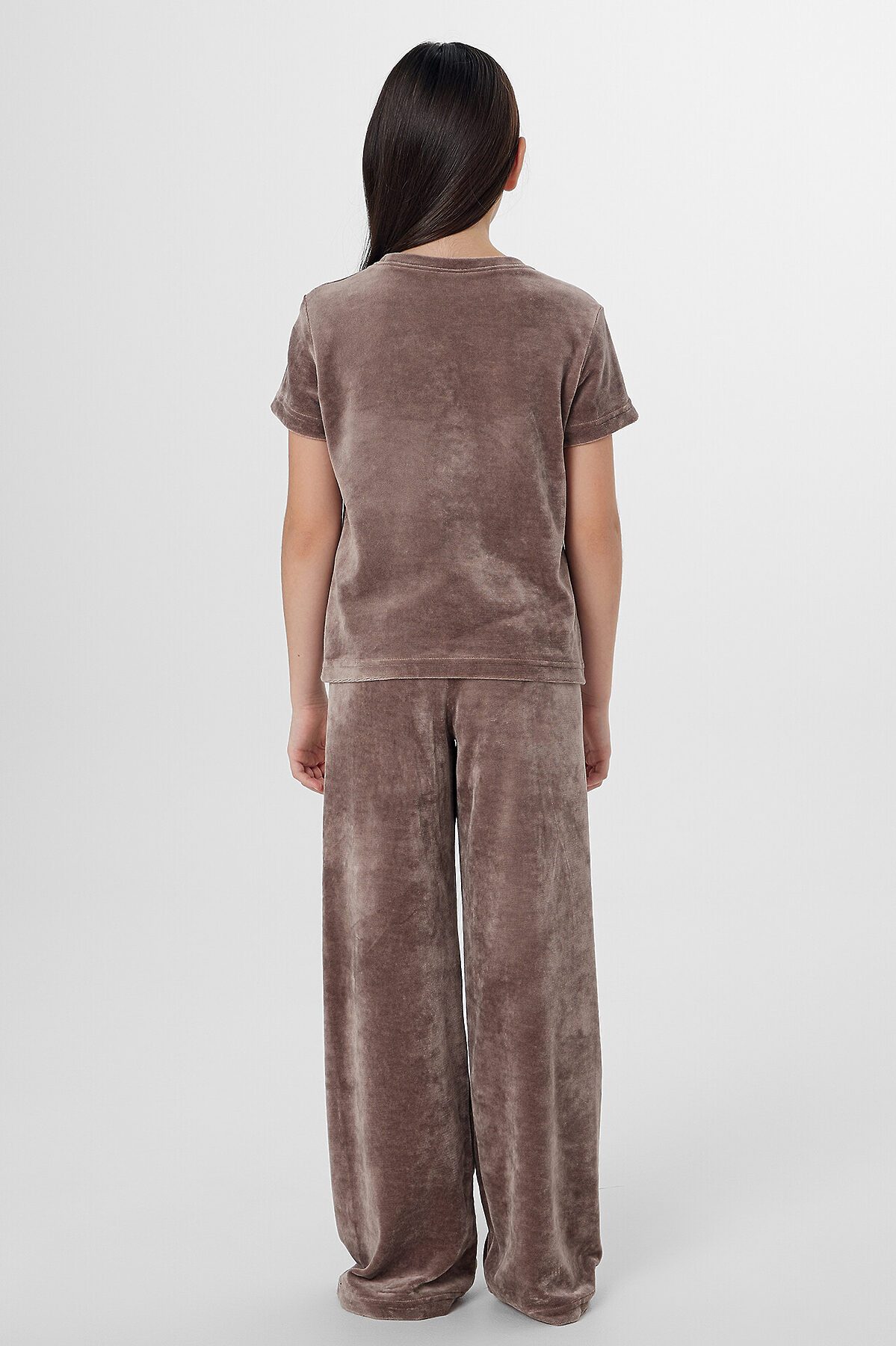 Джемпер прямого силуэта. Горловина круглой формы, обтачка из основного полотна . Рукава втачные свободные. Низ рукавов и низ джемпера в подгибку. Брюки свободного силуэта. Пояс цельнокроеный внутри с резиной 40RV. Низ брюк в подгибку.