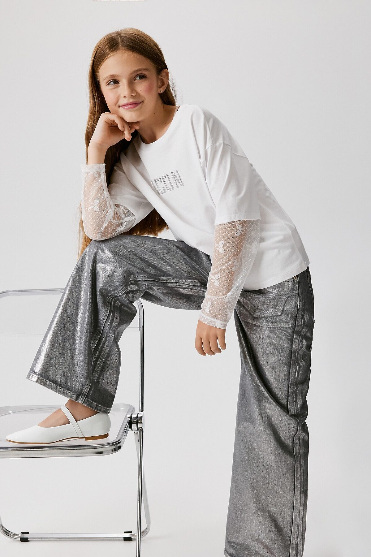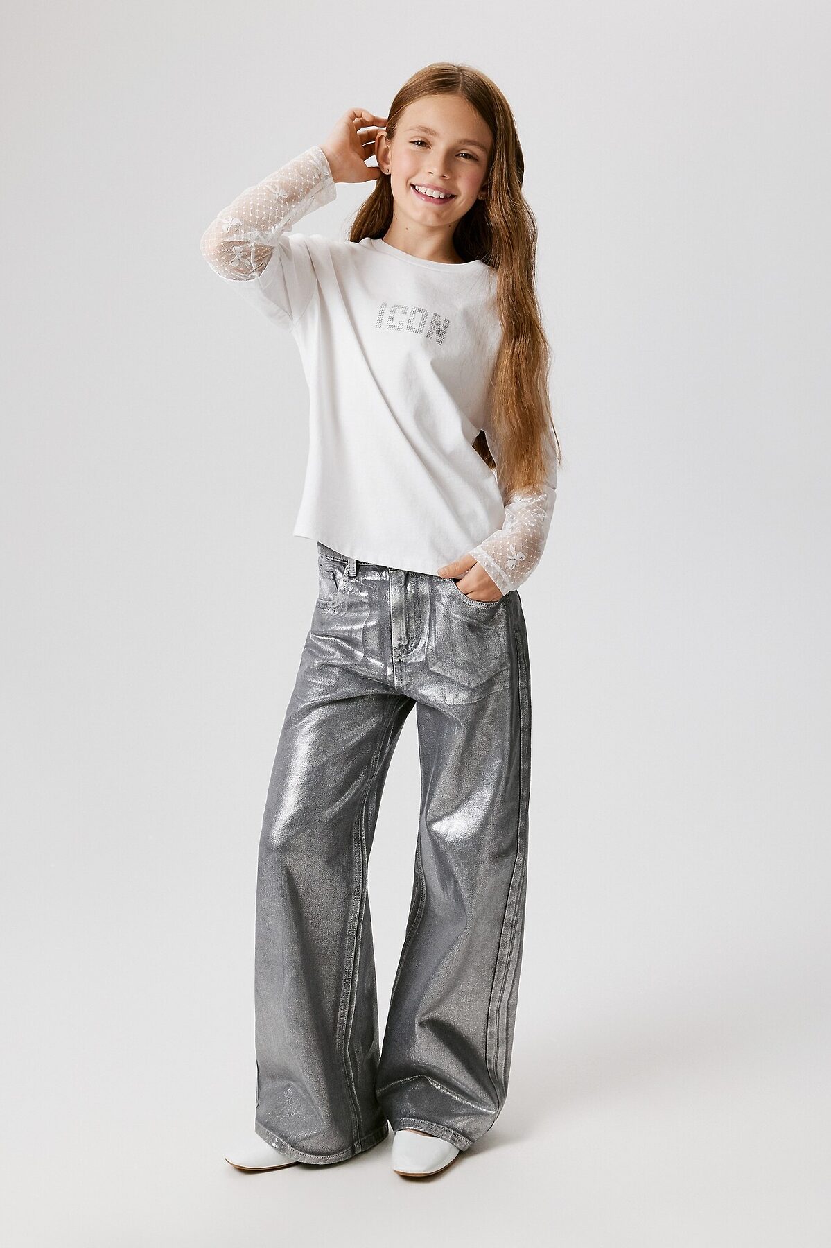 Брюки джинсовые детские для девочек Poka серебряный