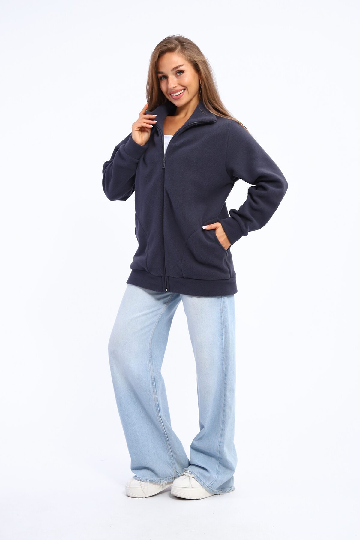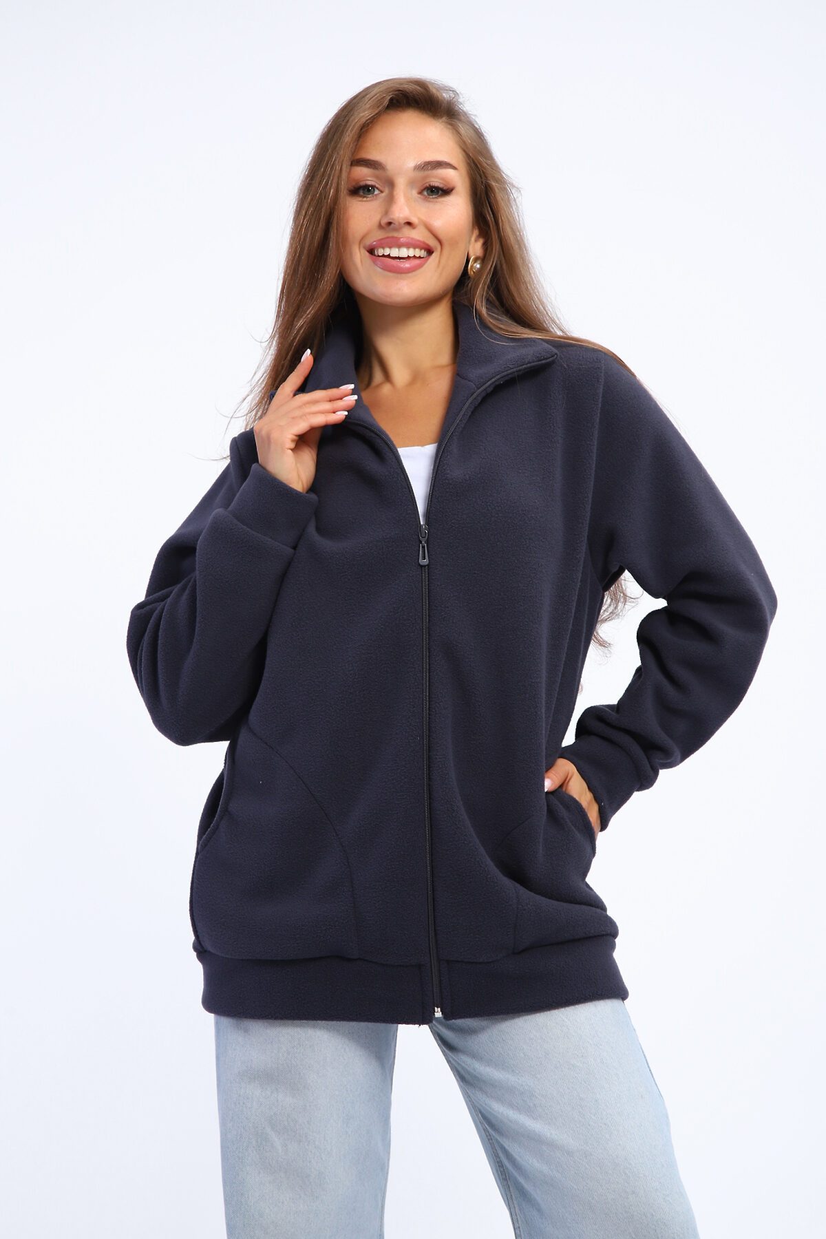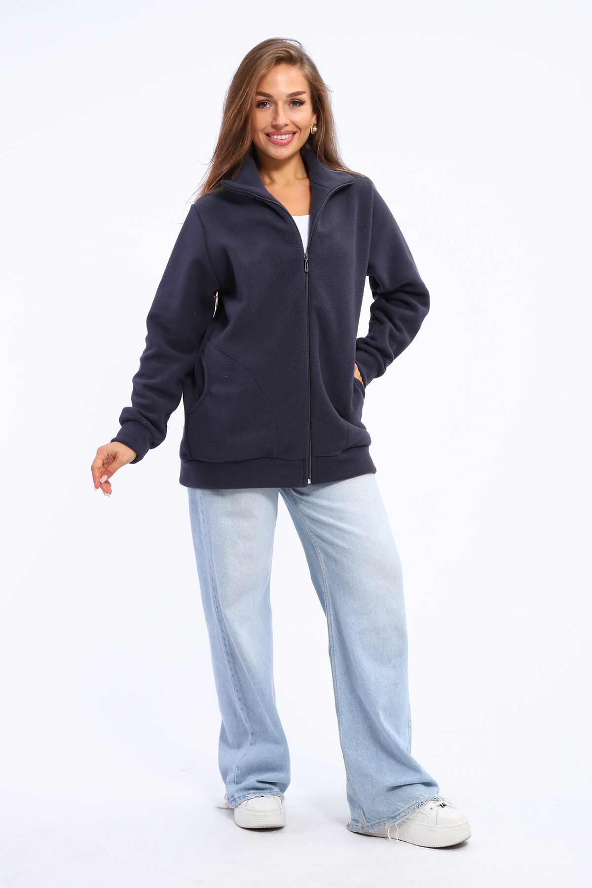 Откройте для себя комфорт и стиль с нашей женской флисовой толстовкой на молнии. Эта утепленная кофта станет незаменимой частью вашего гардероба в осенне-зимний период. Изготовленная из высококачественного флиса, толстовка обеспечивает надежную защиту от холода. Отличный выбор для зимних прогулок и осенних вечеров. Дизайн в стиле оверсайз с длинными рукавами и удобной молнией делает ее идеальной для повседневного ношения. Толстовка дополнена глубокими карманами, что добавляет практичности. Эта флисовая кофта с воротником-стойкой и спущенными плечами выглядит стильно и современно. Подходит для дома, прогулок, занятий спортом и путешествий. Ее можно носить в качестве спортивной одежды или как часть повседневного наряда. Эта толстовка прекрасно подойдет как для подростков, так и для женщин, включая будущих мам. Она станет отличным решением для школьных будней или уютных вечеров дома. Добавьте в вашу коллекцию эту стильную и теплую флисовую толстовку на молнии и наслаждайтесь комфортом и модным внешним видом в любое время года!