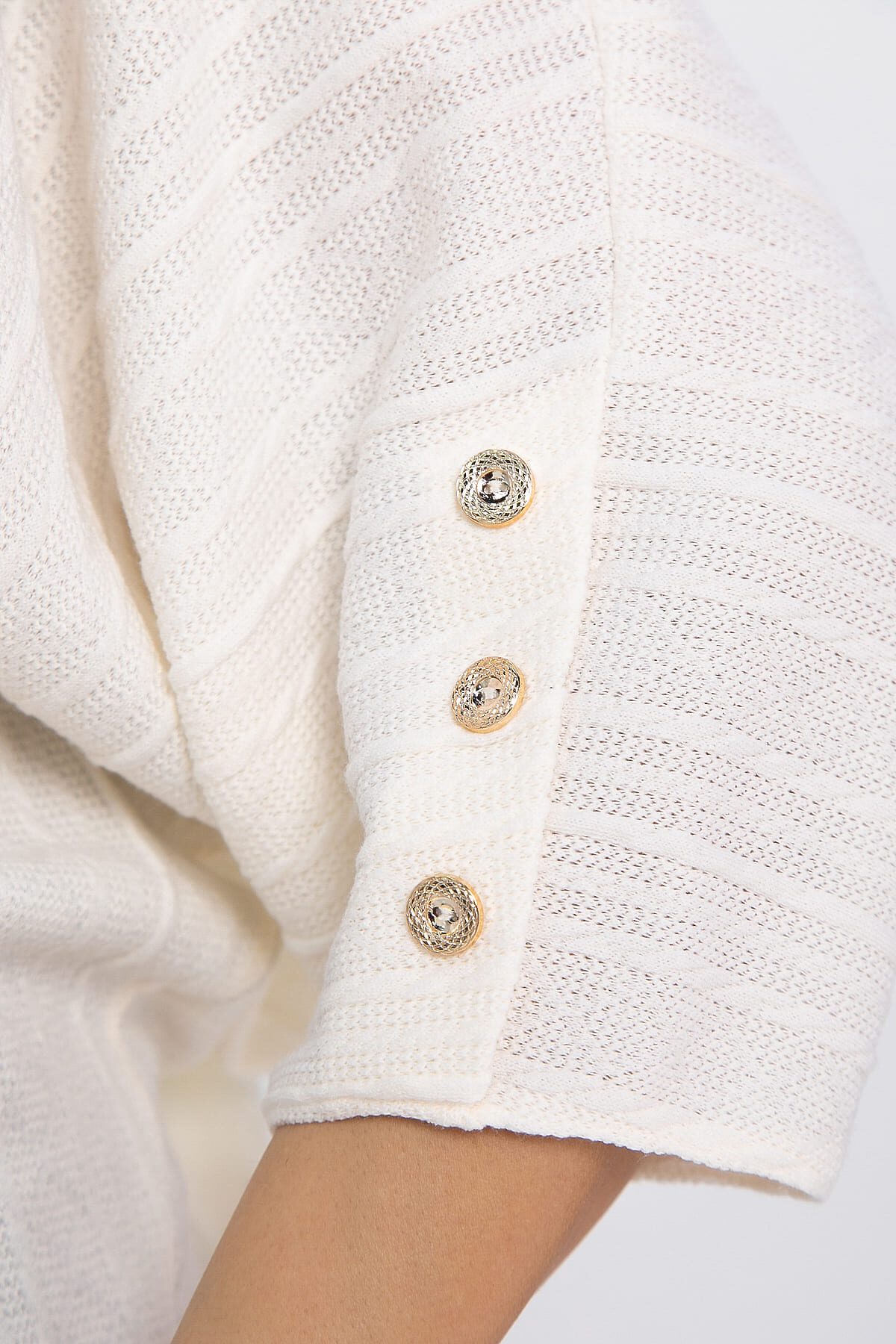 Этот уютный трикотажный джемпер с рукавами летучая мышь — идеальное сочетание комфорта и стиля. Благодаря свободному крою и мягкому материалу он создает ощущение легкости и свободы движений, а V-образный вырез добавляет нотку элегантности и женственности. Идеальный выбор для прохладных дней, когда хочется выглядеть стильно и чувствовать себя уютно в любой ситуации. Рукава цельнокроеные, украшенные тремя пуговицами с каждой стороны. Есть притачной пояс по низу изделия.