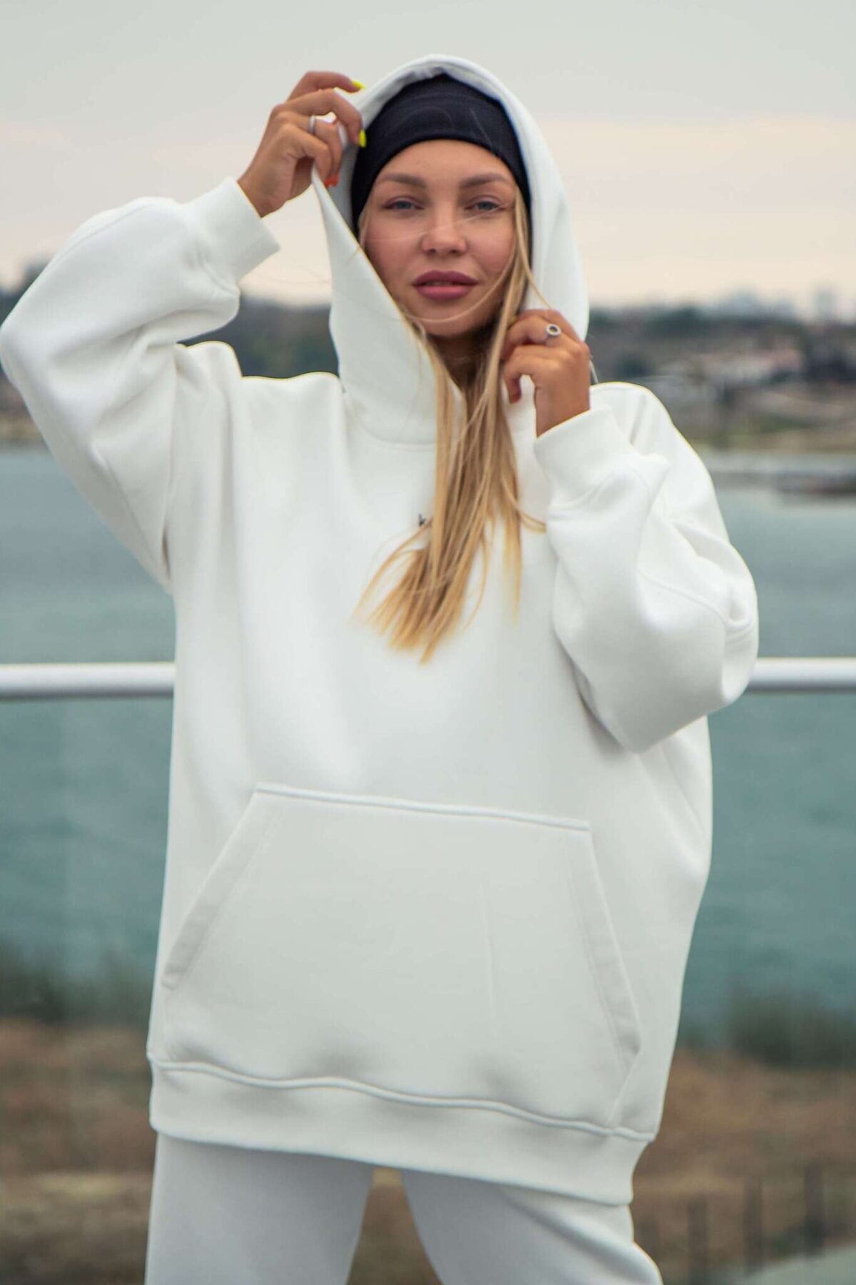 Женское оверсайз худи с начесом - идеальный выбор для комфортной повседневной носки. Изготовлено из высококачественного мягкого материала, который обеспечивает тепло и уют в прохладные дни. Свободный крой обеспечивает свободу движений, а начес внутри добавляет дополнительный уровень тепла. Большой удобный капюшон защищает от ветра. Этот стильный и удобный худи станет незаменимым элементом гардероба для создания уютного и модного образа.