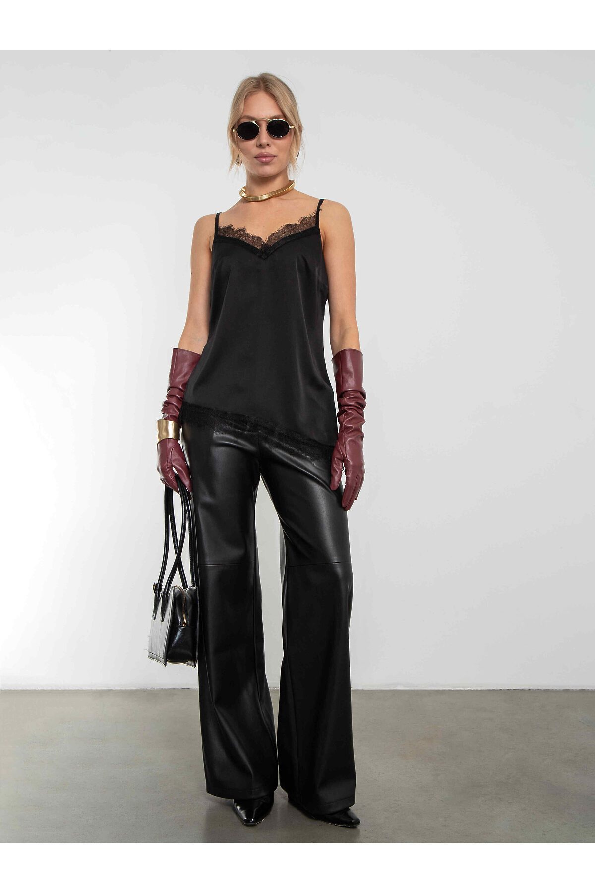 Представляем вам стильные и удобные брюки из экокожи на замше премиум качества! Эти брюки имеют свободный крой, что обеспечивает идеальную посадку и комфорт при ношении. Они оснащены удобной резинкой на поясе, которая обеспечивает идеальную посадку и не стесняет движения. Брюки также имеют удобные карманы. Этот стильный и практичный предмет гардероба подойдет как для повседневного образа, так и для особых случаев.