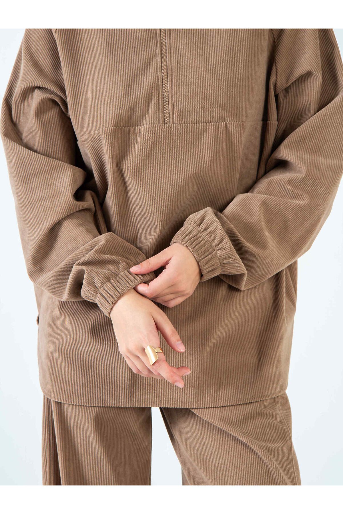 Анорак – модель в модном оверсайз-крое, которая задаёт тон непринуждённому стилю выходного дня. Высокий воротник бережно согревает шею, а молния в цвет ткани вносит современный акцент и позволяет легко регулировать температурный режим.