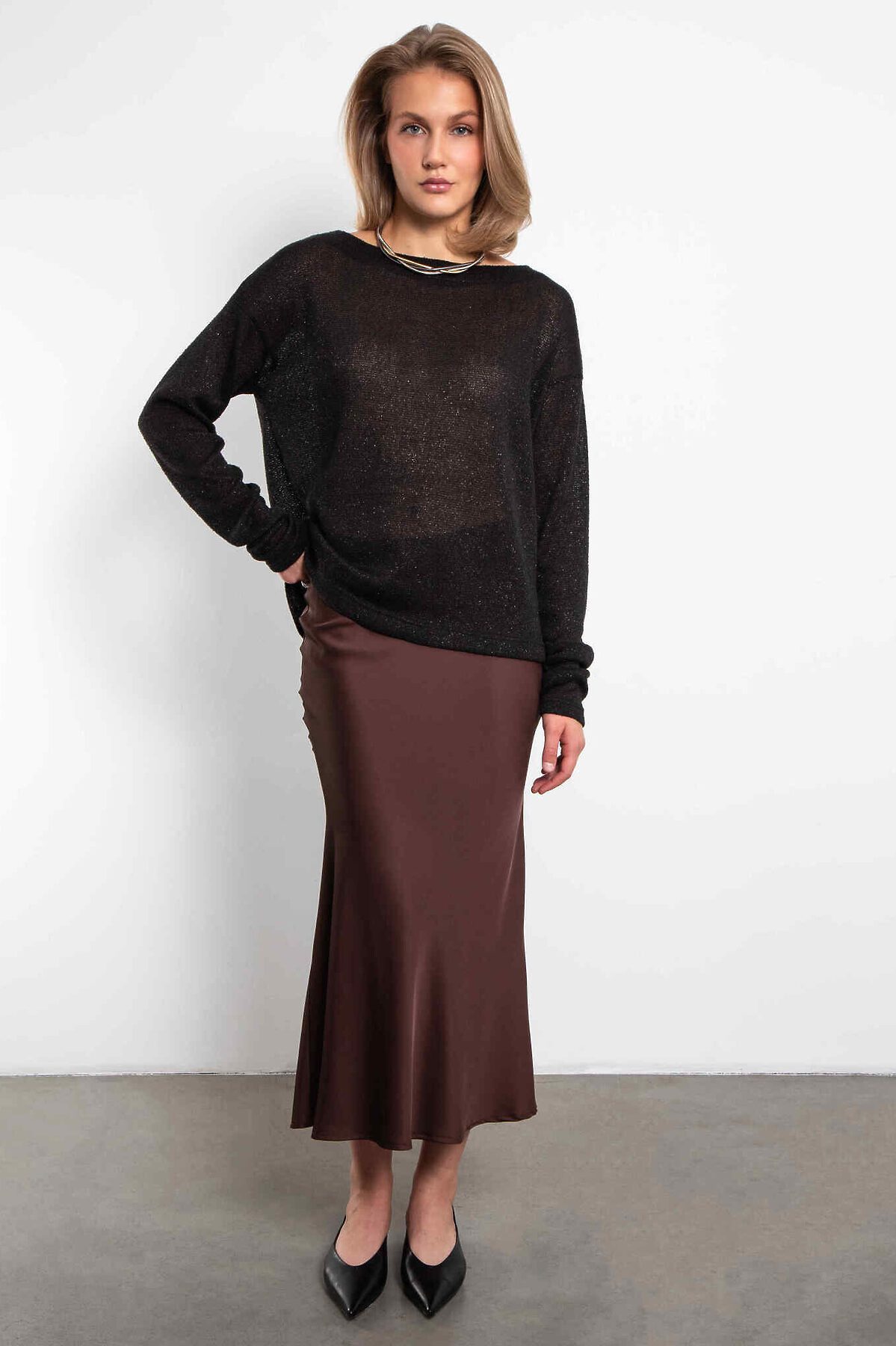 Актуальная модель джемпера из полупрозрачной трикотажа. Мягкий и воздушный легко становится, как основой многослойного образа, так и изюминкой для актуального облегченного комплекта.