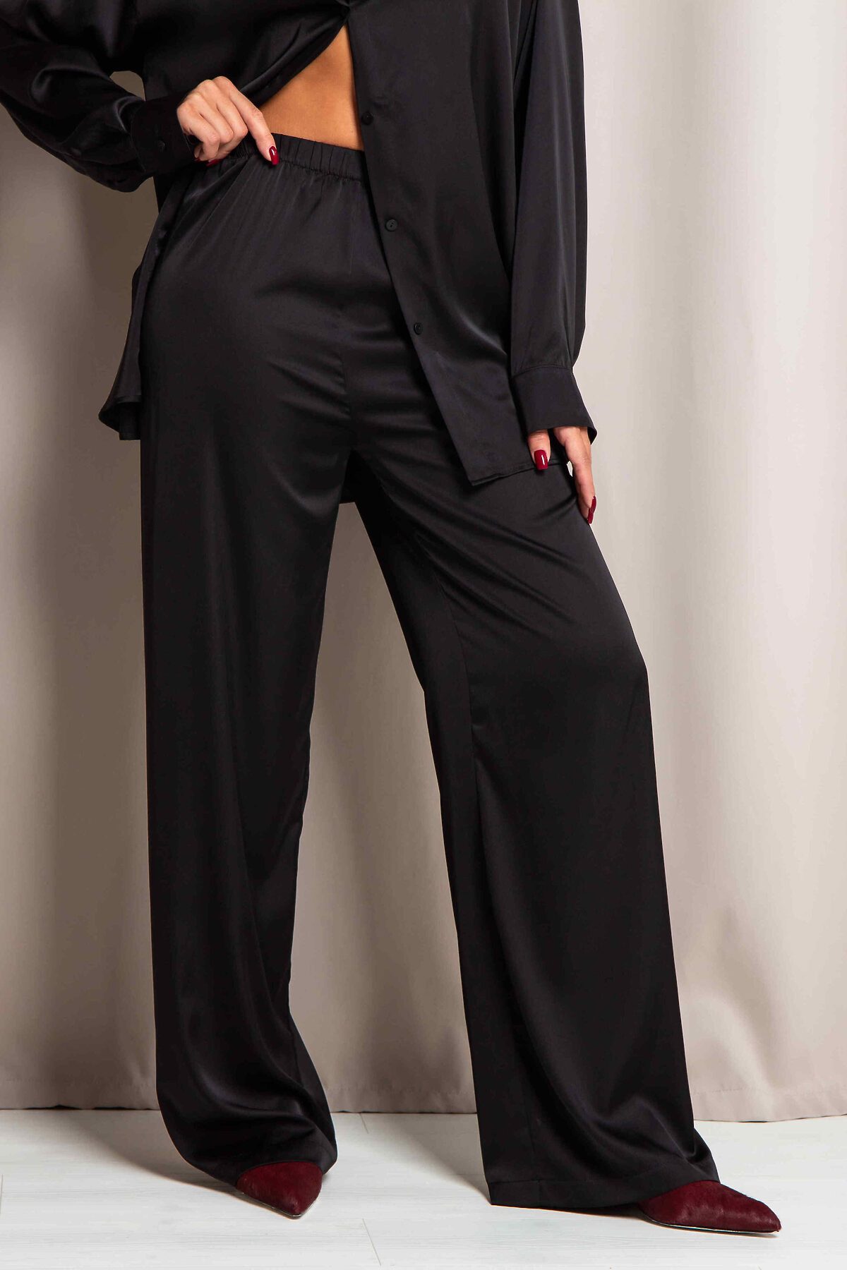 Шелковые брюки Камелия воплощают в себе шик и утонченную элегантность, придавая вашему стилю непринужденную изысканность. Широкий, свободно струящийся крой и эластичный пояс позволяют брюкам мягко облегать фигуру, создавая изящный и комфортный силуэт.для создания ультра-роскошного ансамбля, рекомендуем носить их с рубашкой Рич, дополняющим стиль и гармонию.