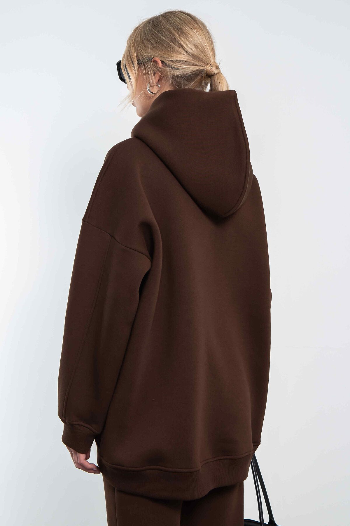Женское оверсайз худи с начесом - идеальный выбор для комфортной повседневной носки. Изготовлено из высококачественного мягкого материала, который обеспечивает тепло и уют в прохладные дни. Свободный крой обеспечивает свободу движений, а начес внутри добавляет дополнительный уровень тепла. Большой удобный капюшон защищает от ветра. Этот стильный и удобный худи станет незаменимым элементом гардероба для создания уютного и модного образа.