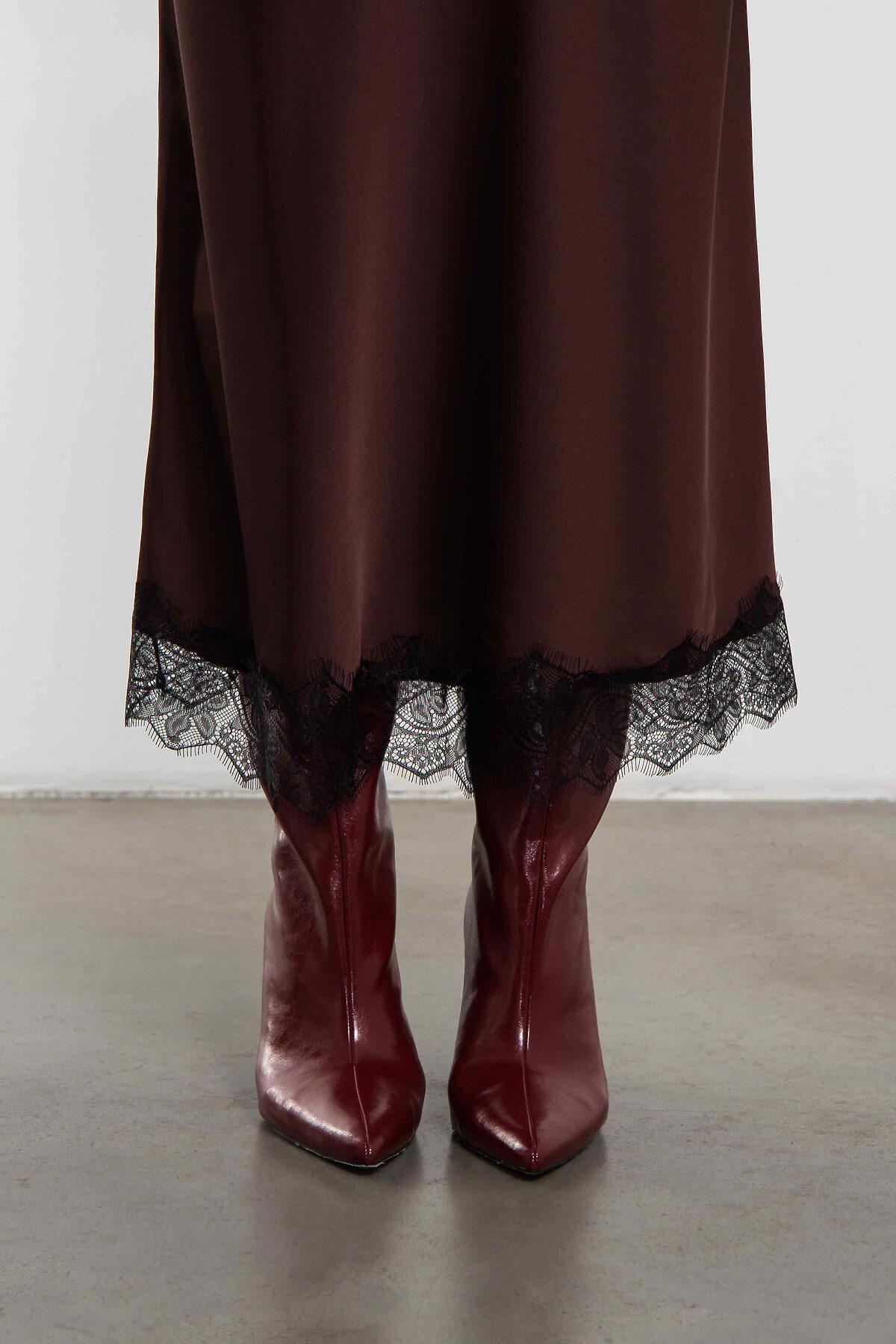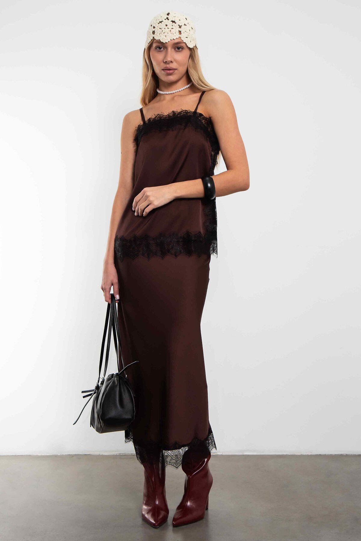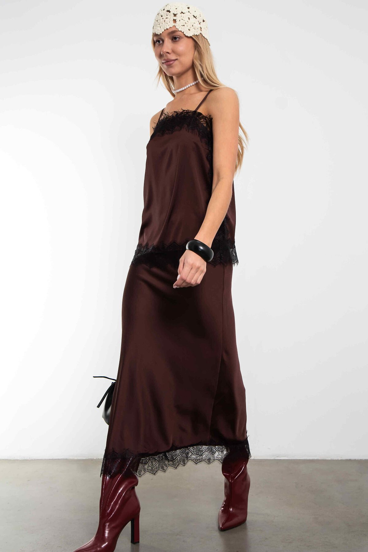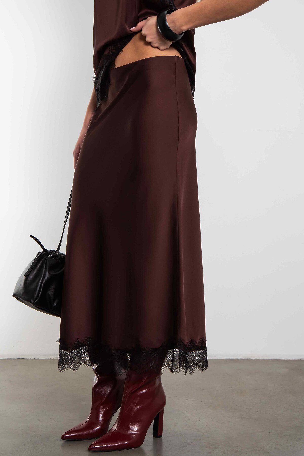 Юбка в бельевом стиле из дубайского шелка с кружевом – это воплощение женственности и изысканности в каждой детали. Эта юбка, словно легкое облако, окутывает фигуру, подчеркивая ее достоинства и создавая ощущение нежности и романтики. Надевайте юбку под объёмные свитера или подбирайте кружевные вещи более тёмных оттенков, чтобы они соответствовали сезону.