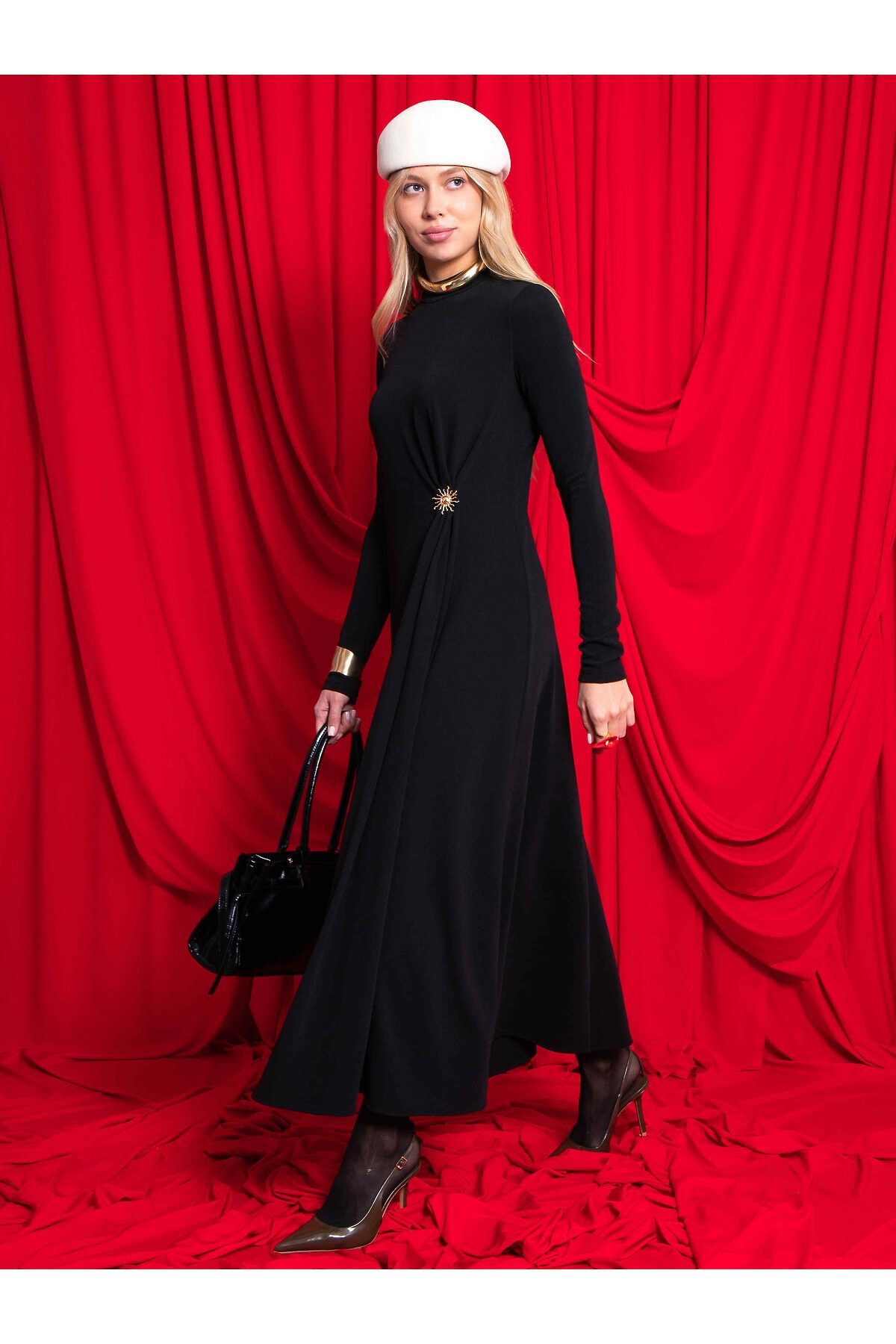 Элегантное и женственное платье с брошкой. Идеальный вариант на вечер!Модель выполнена из плотного трикотажа, точно облегает фигуру и подчёркивает талию за счет сборки брошкой.Уход: