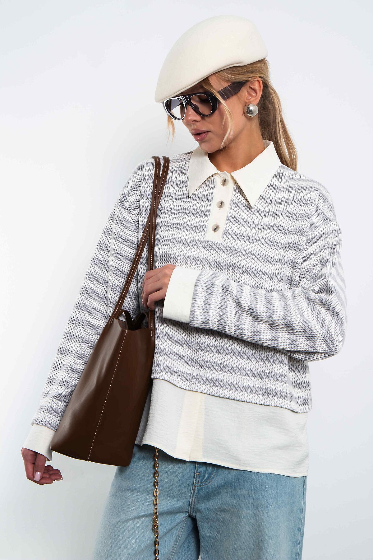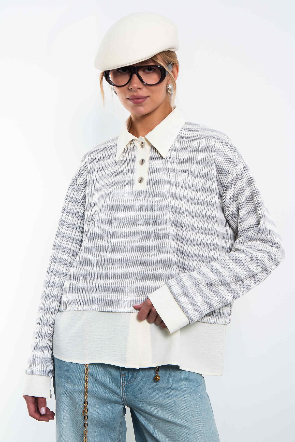 Свободный свитшот с имитацией второго слоя из новой осенней коллекции. Сочетай толстовку с облегающим или широким низом,