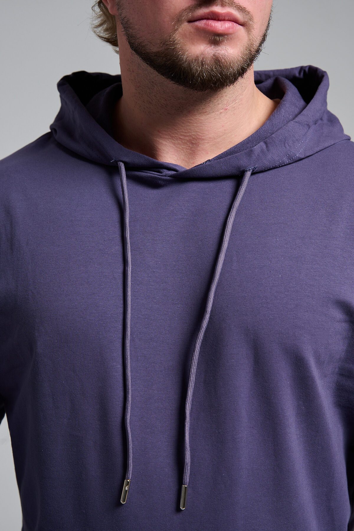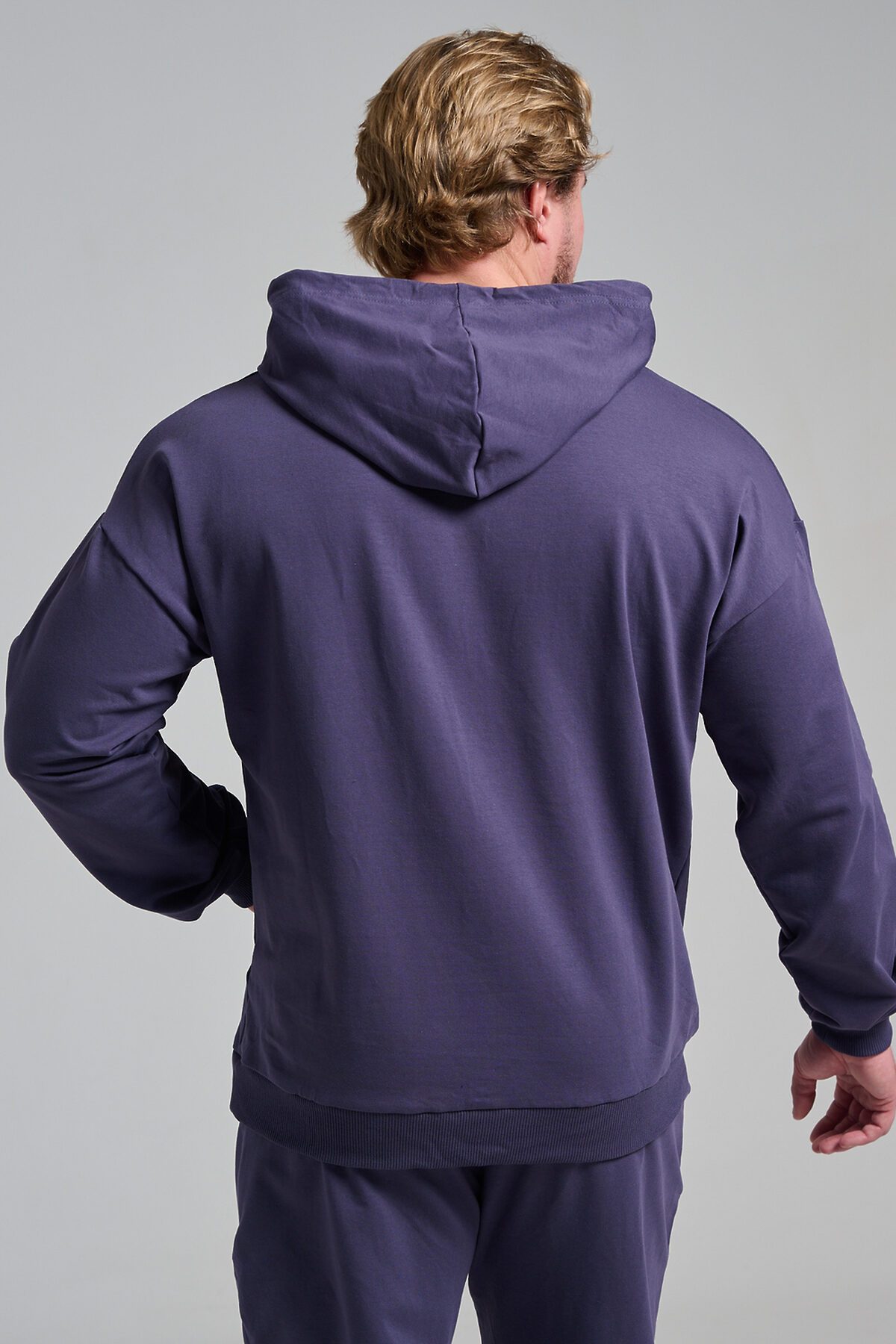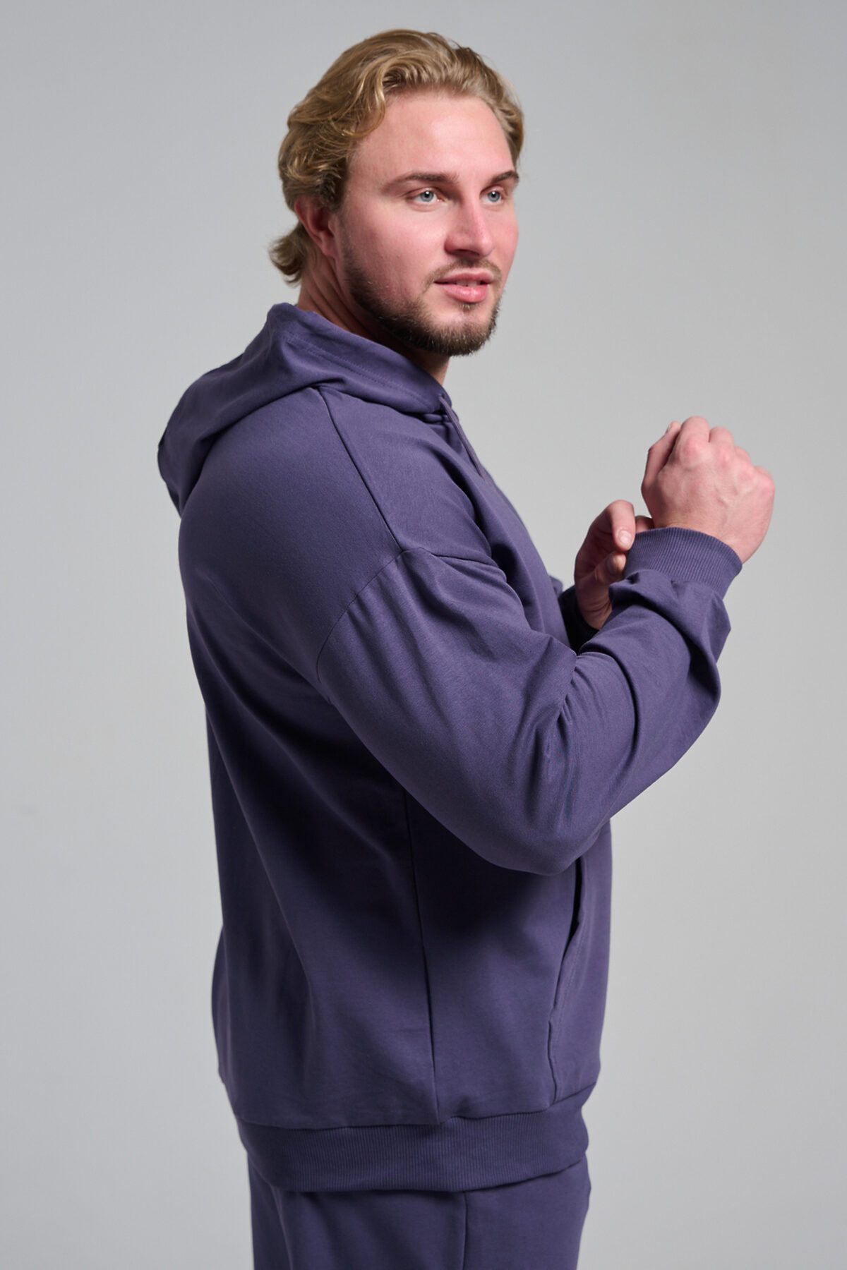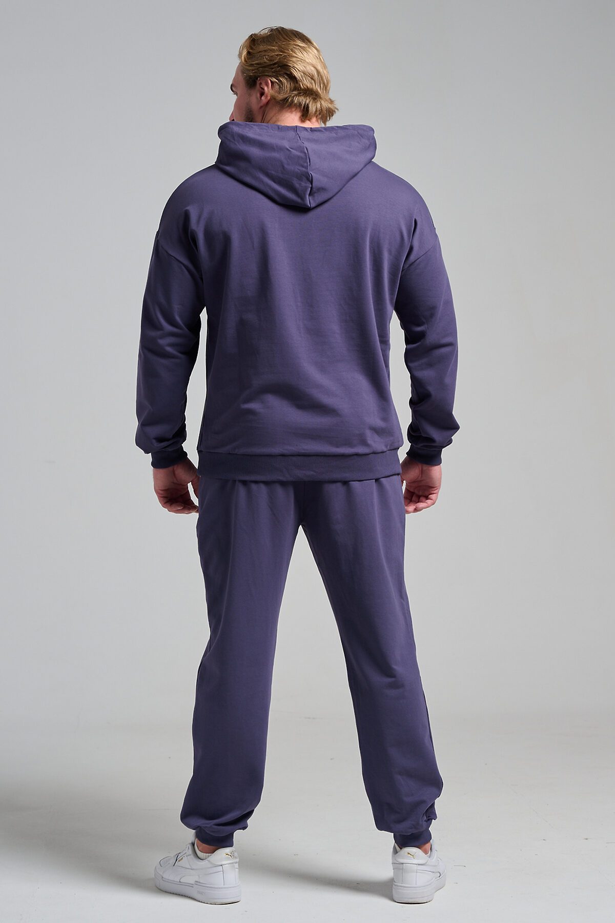 Костюм спортивный мужской с худи и джоггерами. Костюм свободного кроя состоит из толстовки с капюшоном и карманом кенгуру и брюк джоггеров на манжете с карманами в боковых швах. Костюм однотонный сшит из качественного хлопкового трикотажного материала - футера 2-х нитки. Обладает отличной эластичностью, не сковывает движений. Идеален для занятий спортом. Зимой костюм возможно носить в тренажерный зал или использовать как домашнюю одежду.