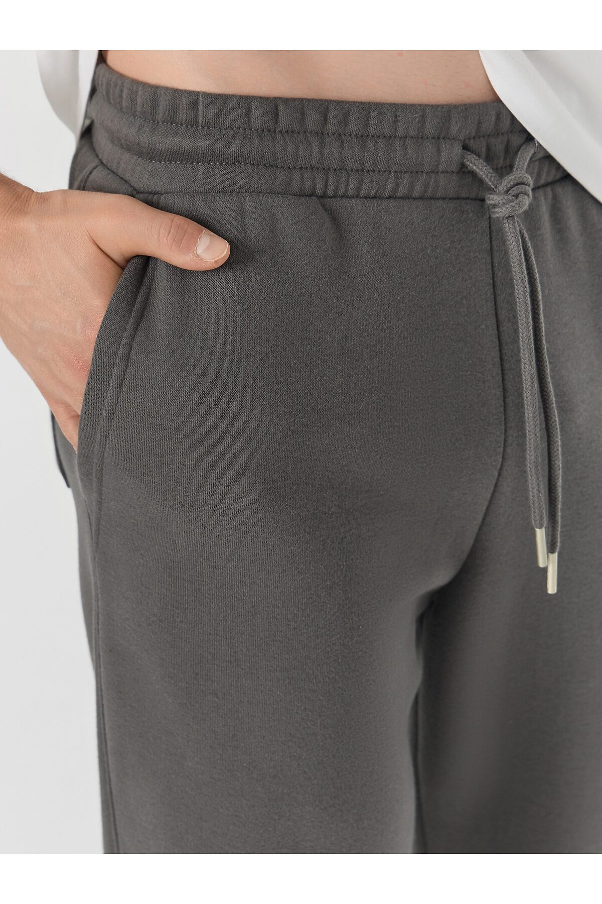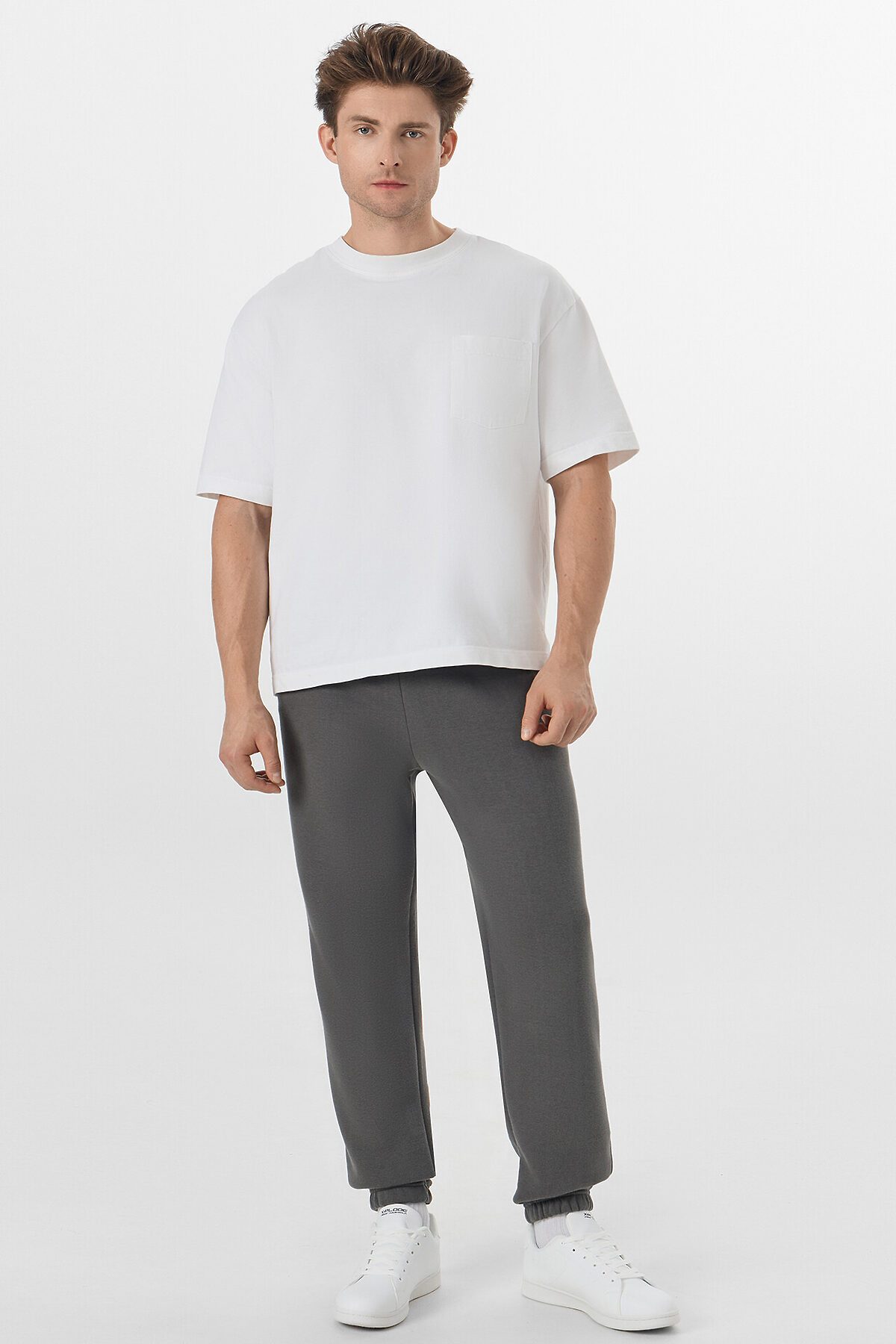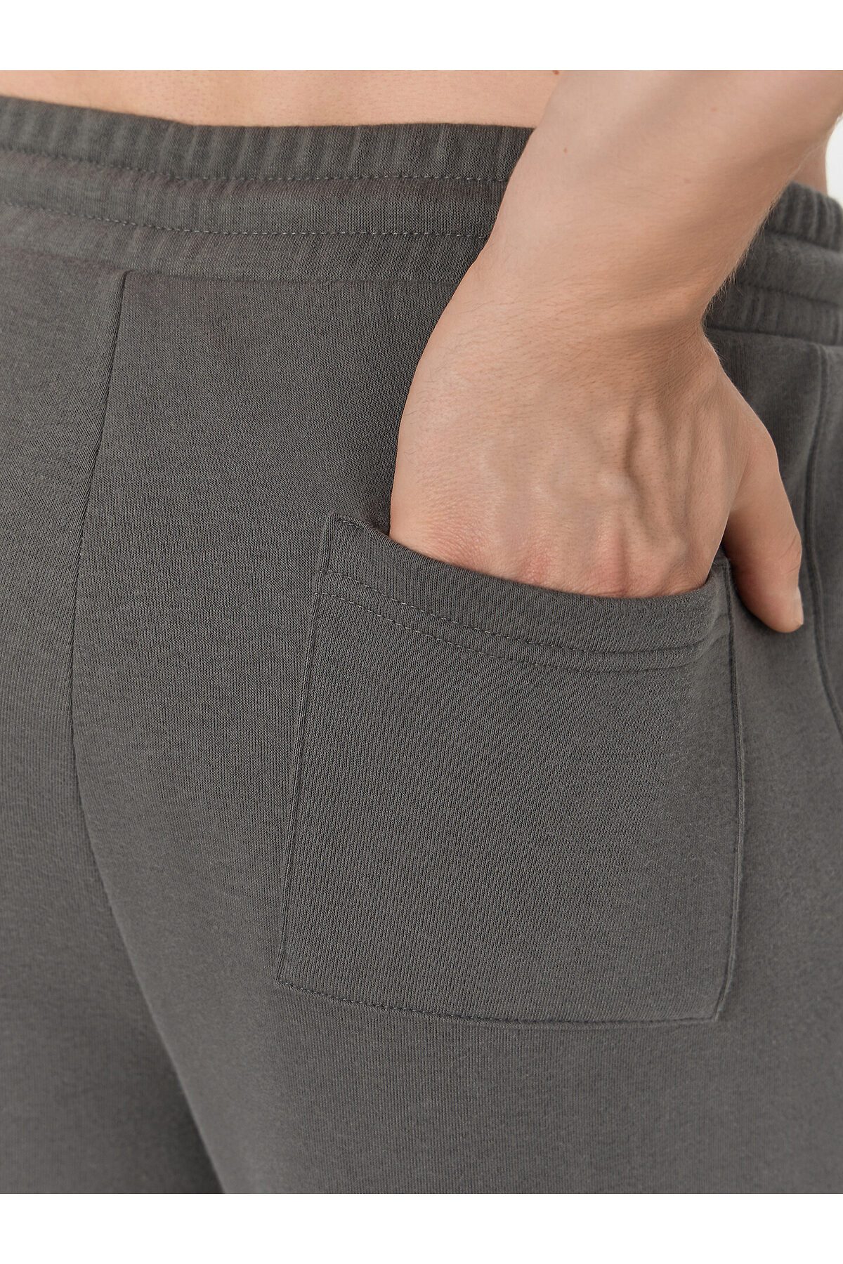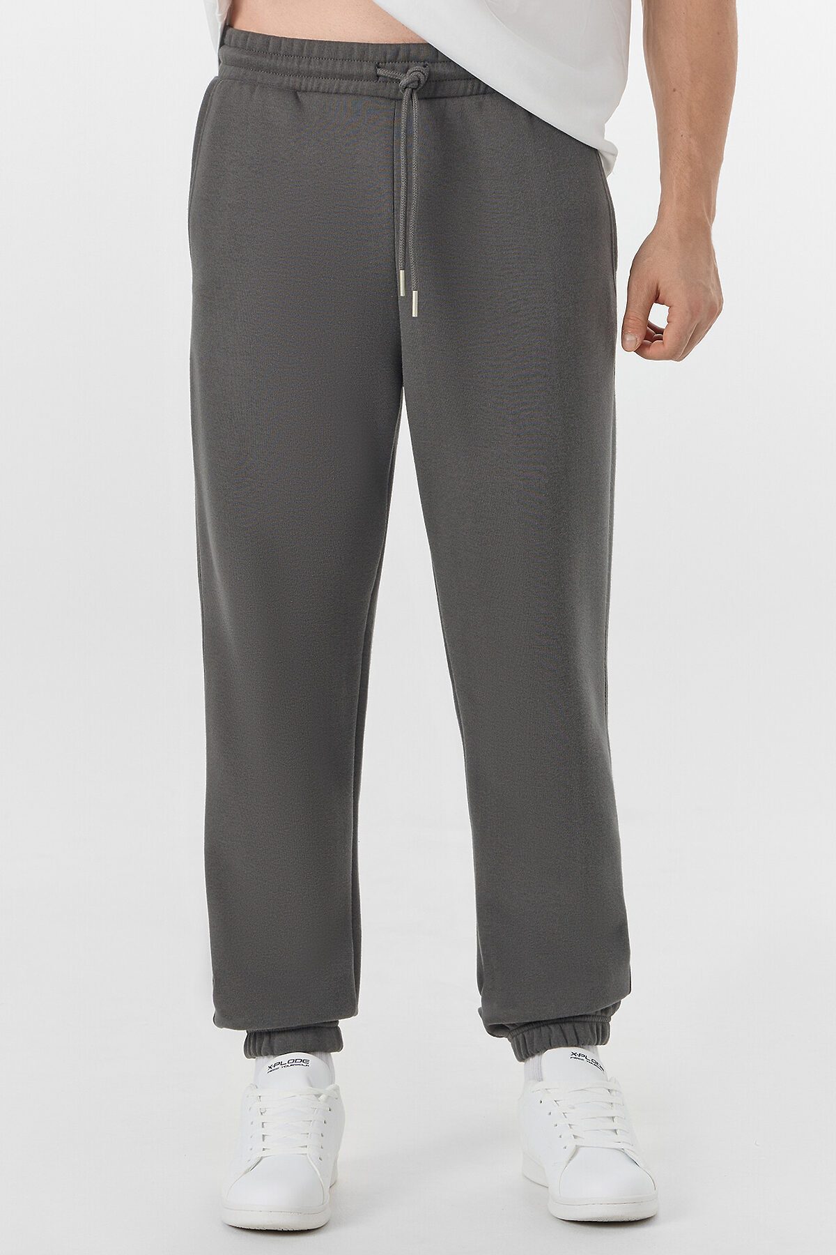 Джогеры прямые, зауженные к низу. Пояс отрезной с эластичной тесьмой внутри. С внутренней стороны пояса пробиты петли и втянут шнур с эглетами (8EКXWCp-1). В боковых швах обработаны карманы - хулиганы, подкладка карман из кулирки. На задней правой половинке накладной карман, по заданию. Нижние срезы брюк обработаны швом вподгибку с эластичной тесьмой внутри.