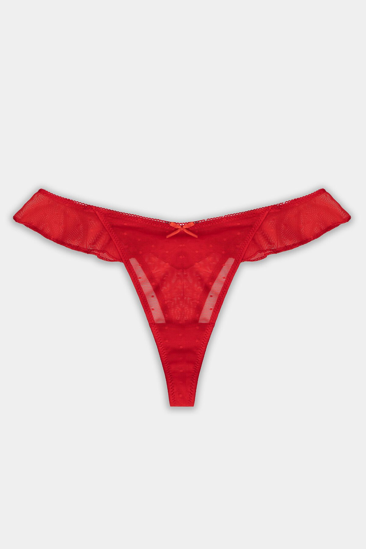 Трусы женские, силуэт, бразилиана, выполнены из кружевного полотна. Рюша по бокам переходящая на спинку. Подкладка ластовицы из кулирного полотна, отлетная по верхнему срезу. Верхний срез обработан эл тесьмой 8мм ( с зубом KTE5-8 Arteks E2699 ).Задняя деталь с центральным швом. По ножкам передней и задней детали эл тесьма 6мм (жилка Wt4-6, девсел 13460W) обработана зигзагообразной строчкой. Край рюши обработан закруткой.