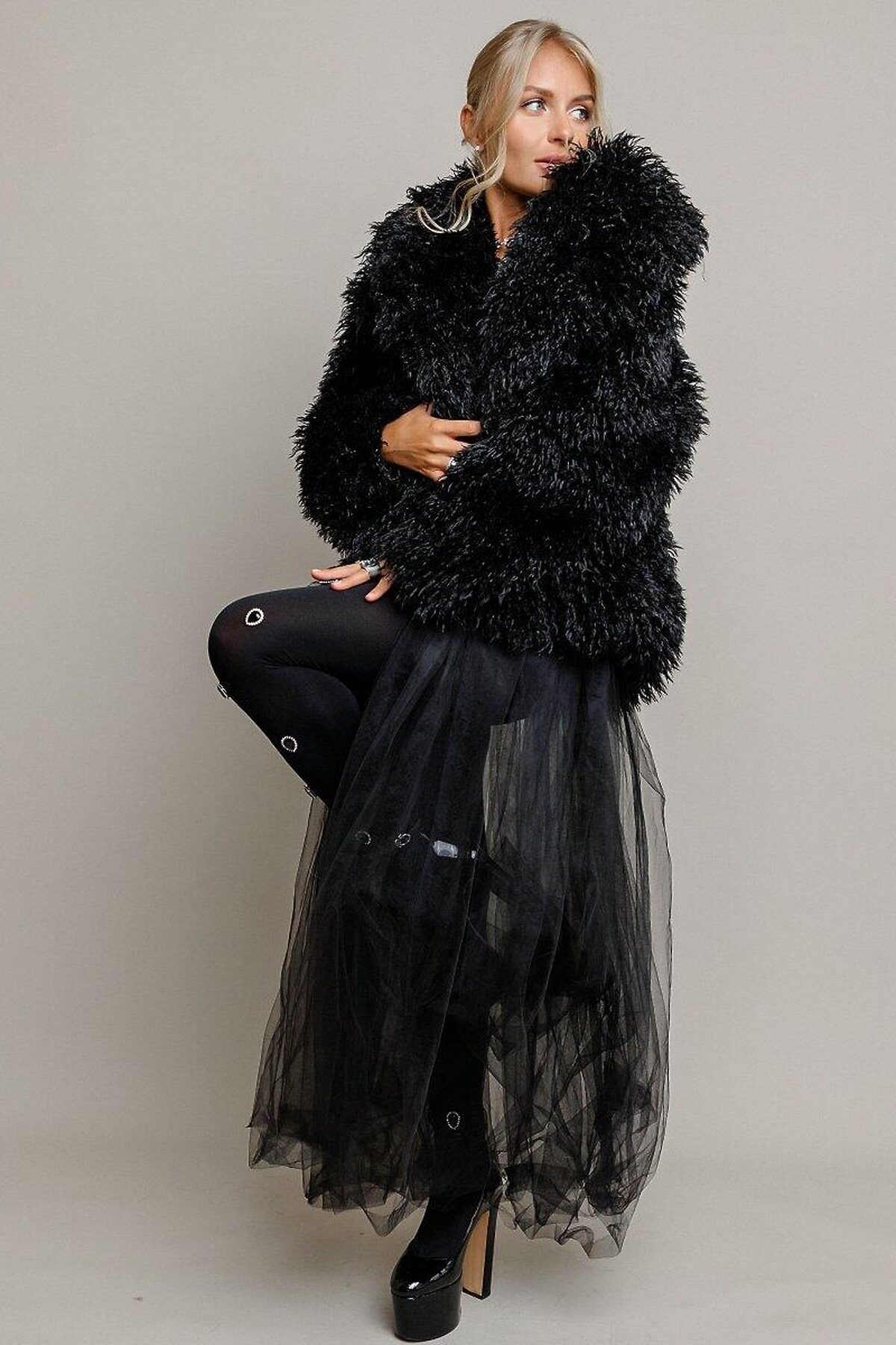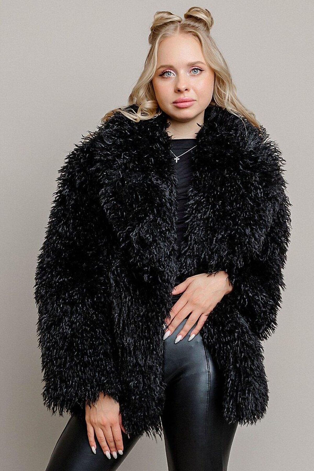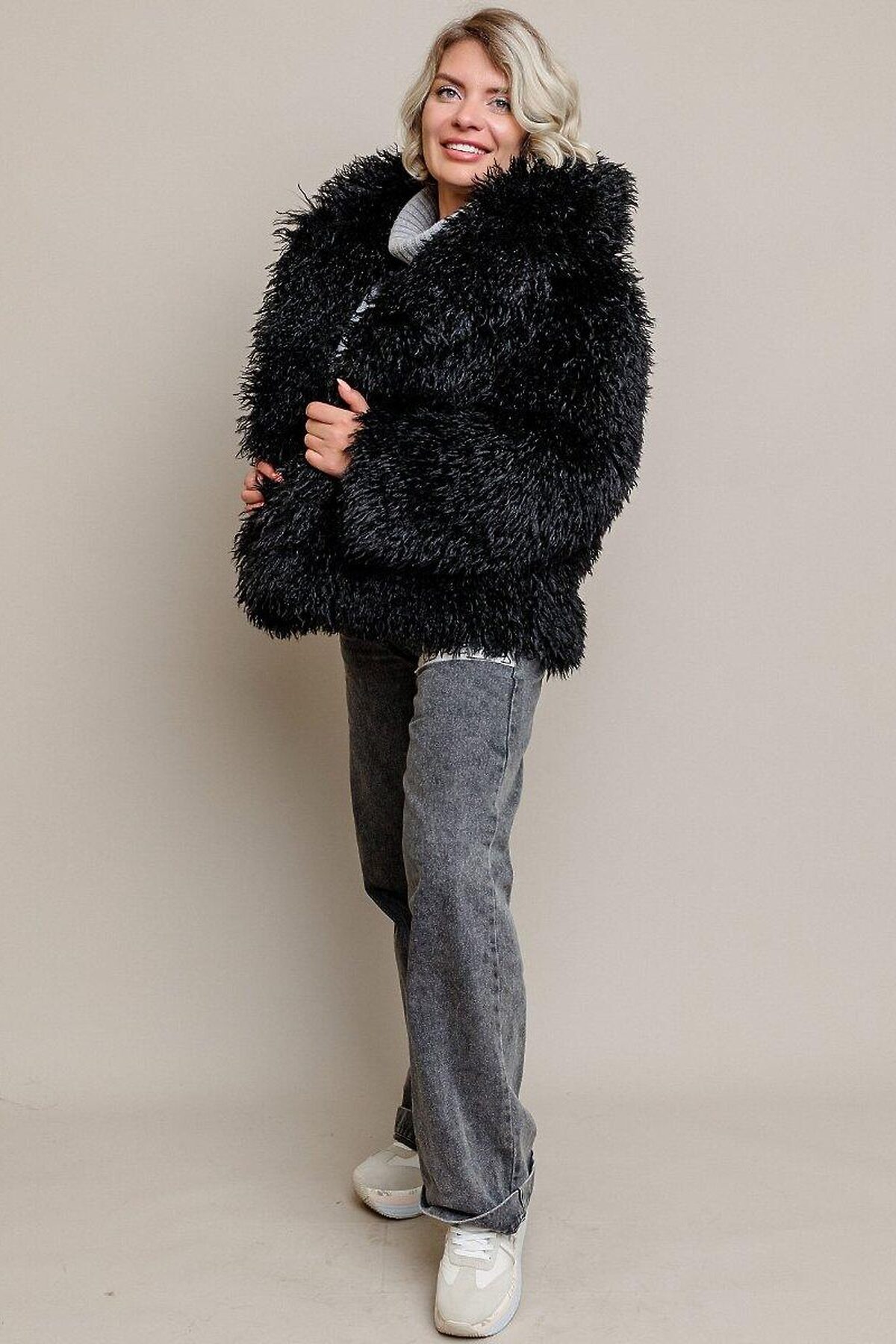Шуба Альпака короткая с воротником, на кнопках. Выполнена из экомеха с мягким подкладом и утеплителем 60 гр. Шуба из экомеха поможет сохранить тепло и комфорт в любых погодных условиях, а также будет стильно смотреться с любой одеждой. Выполнена в черной расцветке.