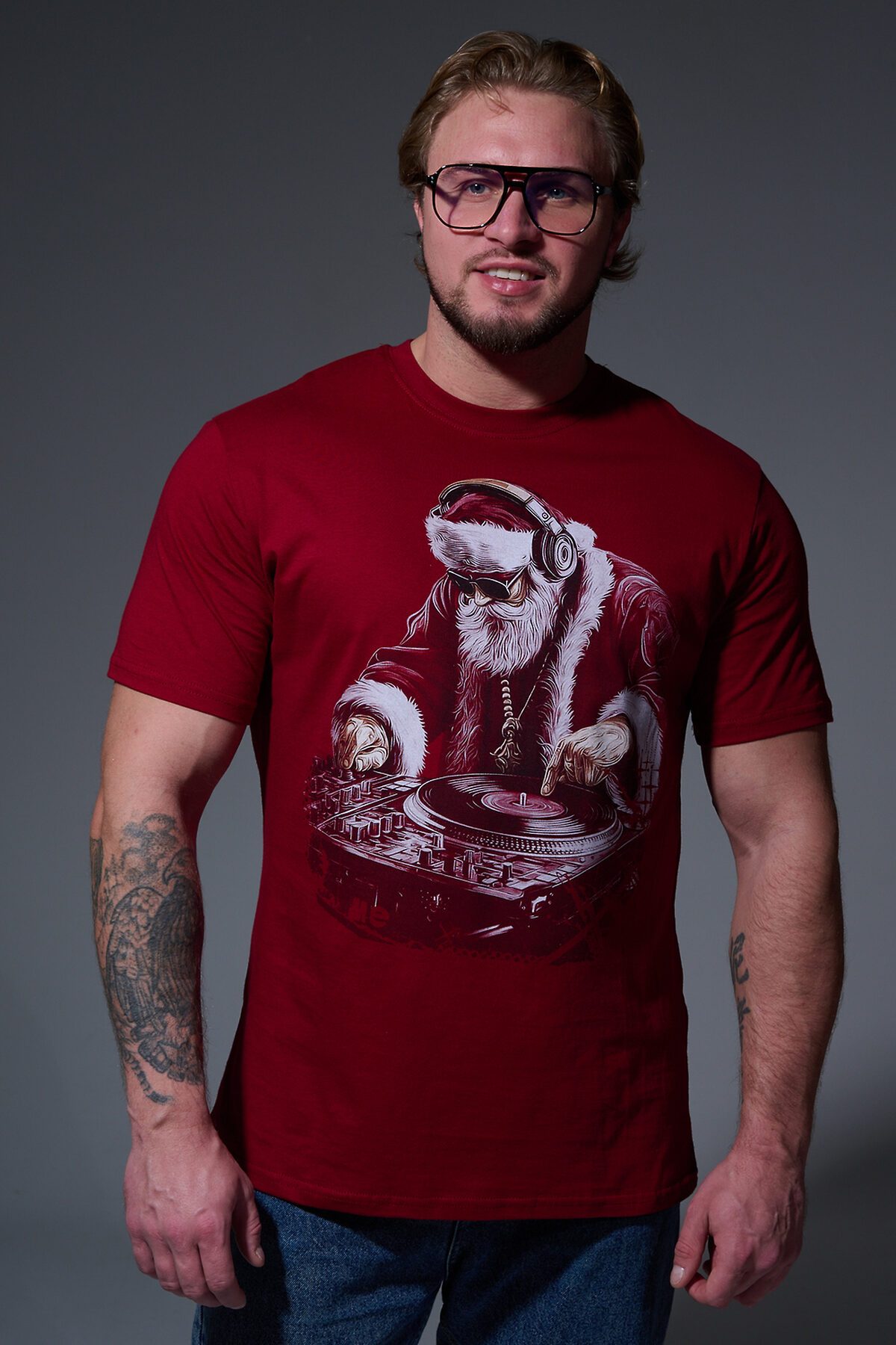 Представьте: Новый год, вечеринка в разгаре, а вы в стильной красной футболке с Сантой, который не просто раздает подарки, а зажигает на полную! На одной версии Santa DJ в наушниках, миксует треки за пультом, с бородой в снегу и фирменными рукавицами. На второй Santa Rocker с гитарой, в прыжке, готовый к соло! Дизайн в белом и красном яркий, юмористичный и супер-актуальный для праздников. Изготовлены из мягкого хлопка (100% cotton) комфортные, не линяют после стирок, подходят для мужчин и женщин, стиль для casual-лука с джинсами или под пуховик. Идеально для музыкантов, фанатов рока или тех, кто любит добавить перчинки в новогодний образ!