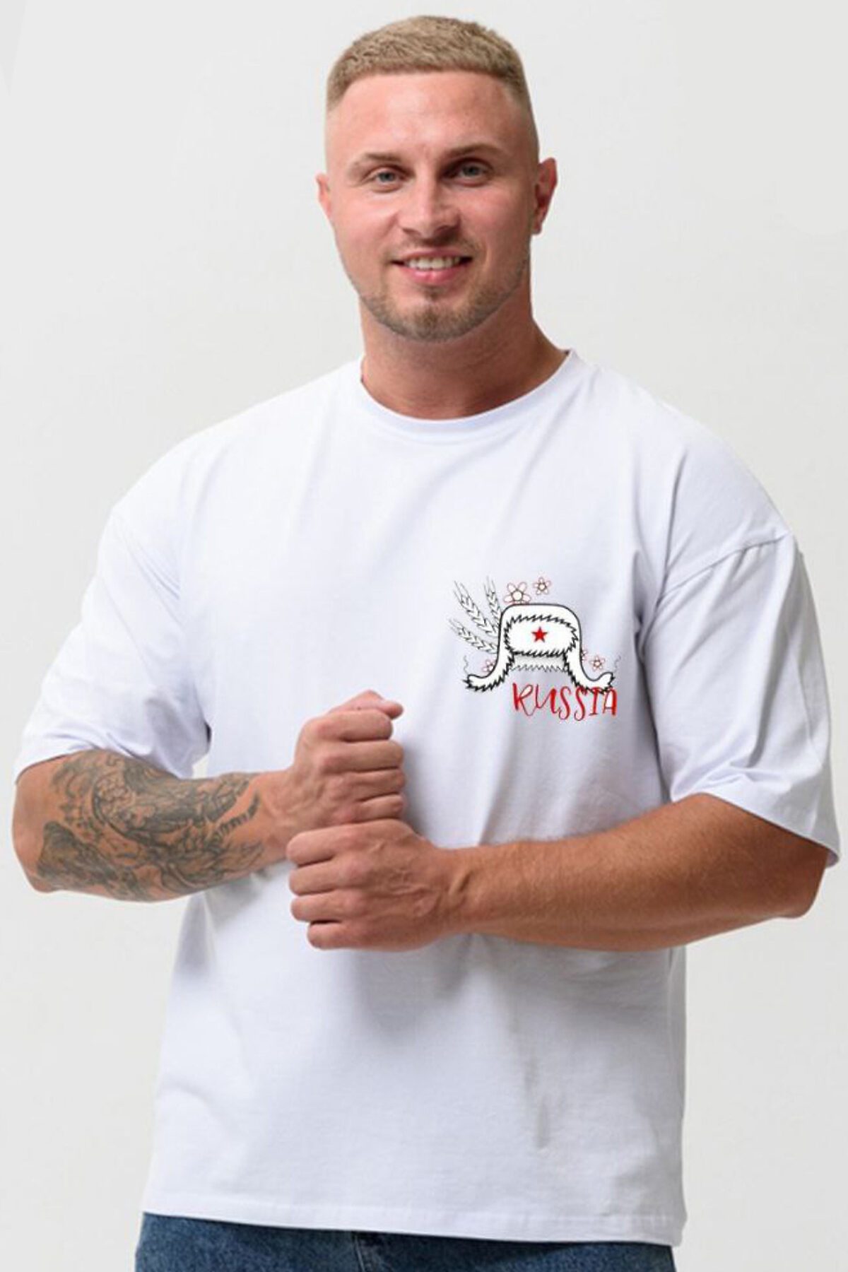 8579 футболка оверсайз мужская НАТАЛИ, белый+ушанка