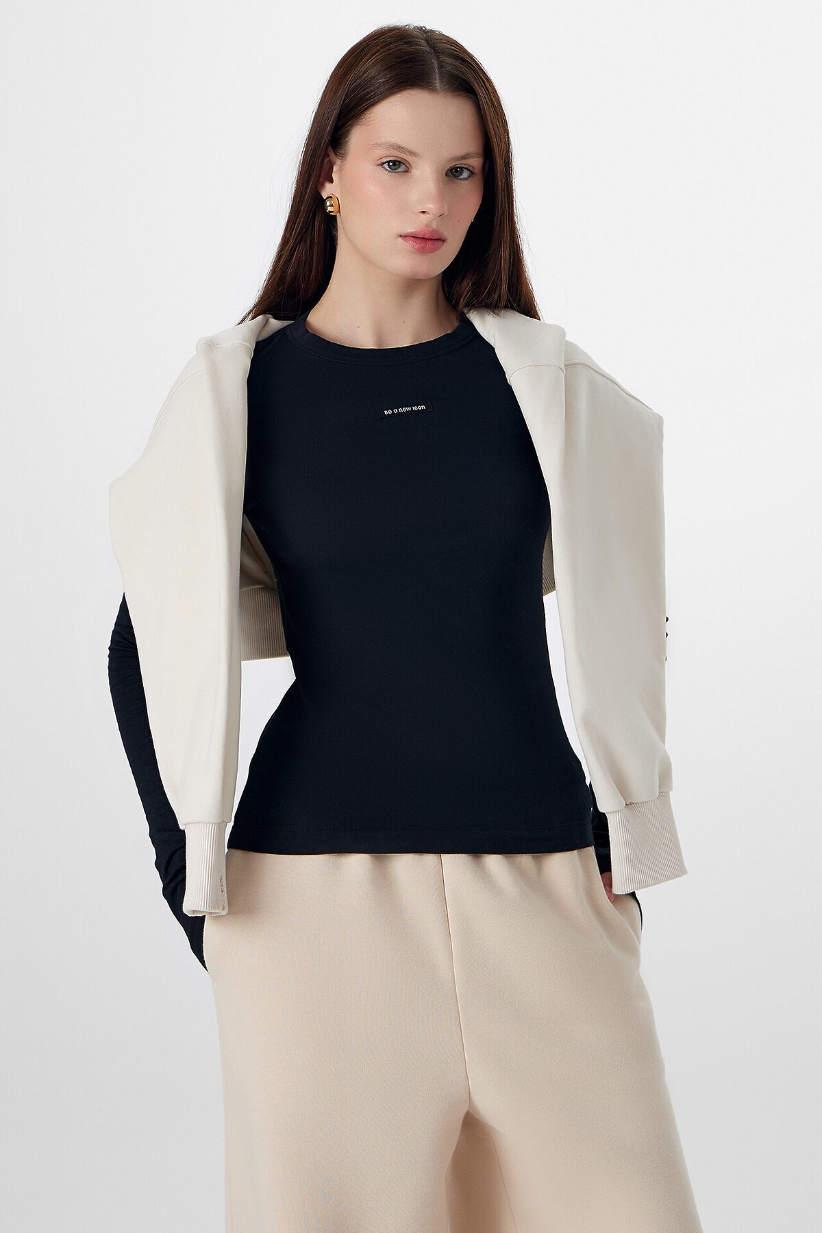 Женский лонгслив с надписью — это базовая модель для создания стильных повседневных образов. Лонгслив прилегающего силуэта выполнен из мягкого хлопка. Состав материала обеспечивает естественную воздухопроницаемость, гипоаллергенность и комфорт. Плотность и структура хлопка оптимальны для повседневной носки: ткань устойчива к деформации, переносит частые стирки и сохраняет опрятный вид.