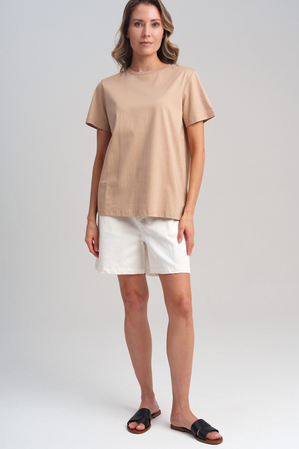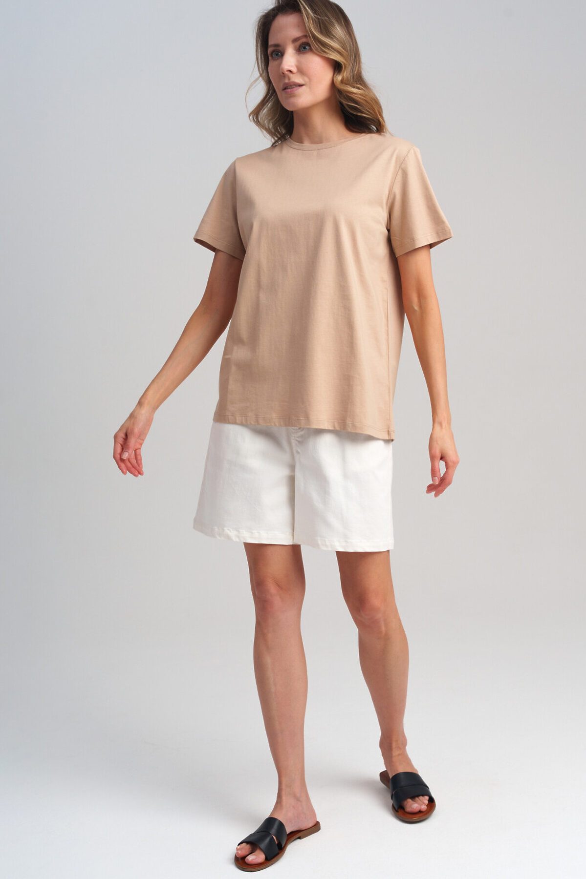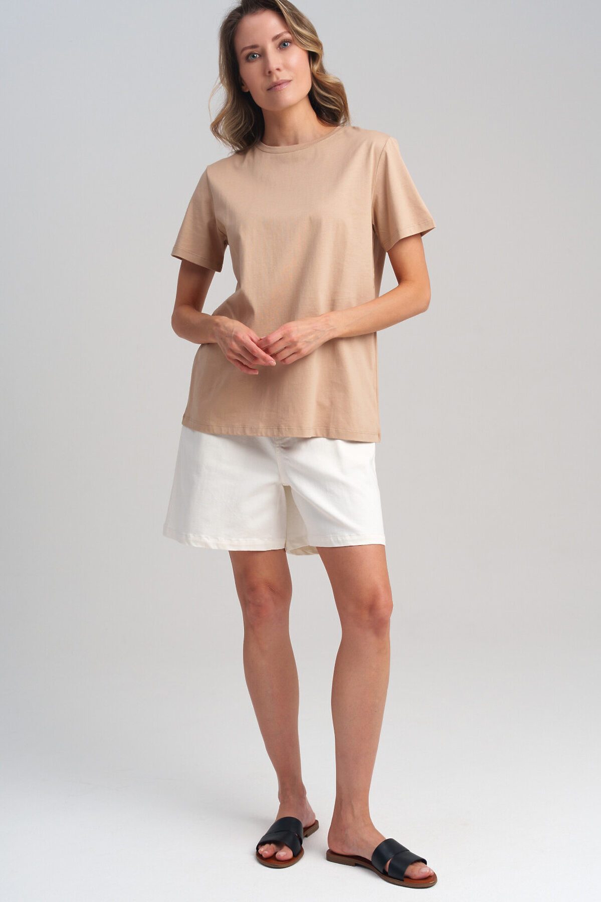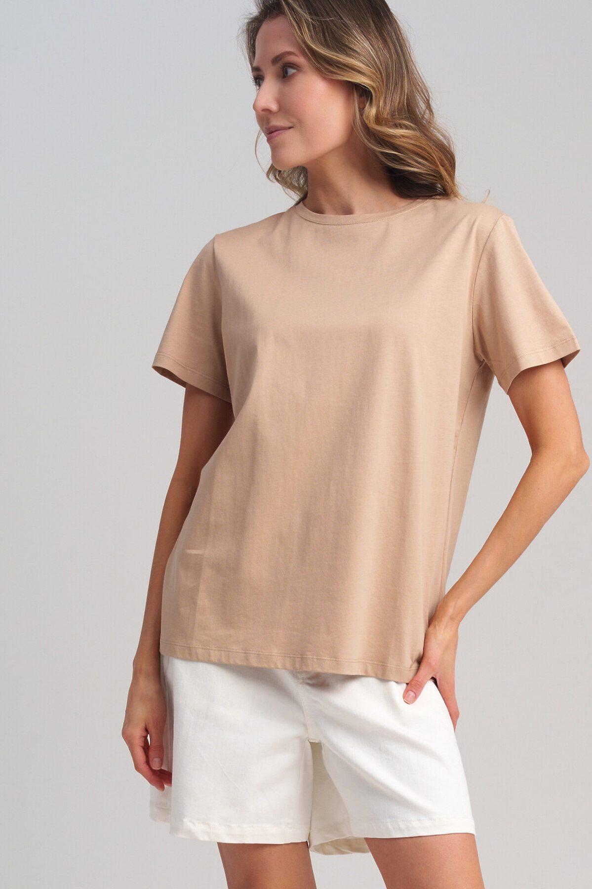 Футболка женская. Базовая женская футболка из 100% хлопка. Модель выполнена из качественного и приятного на ощупь трикотажа.