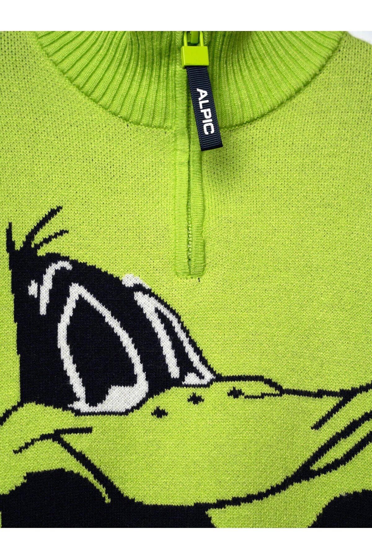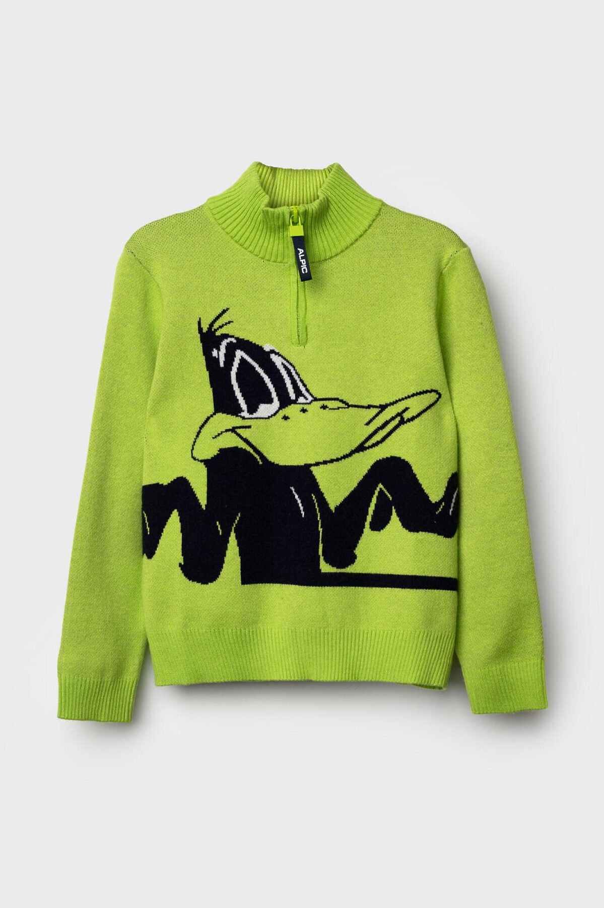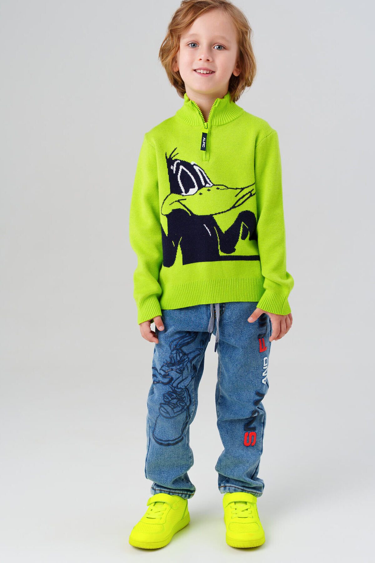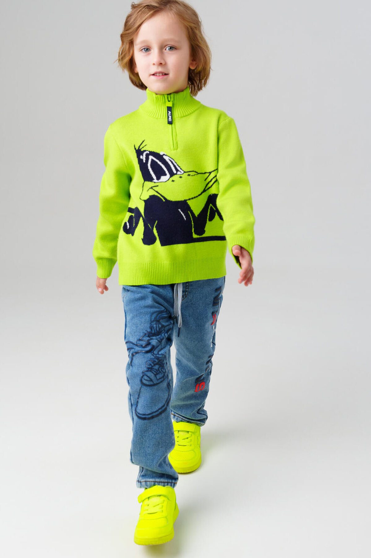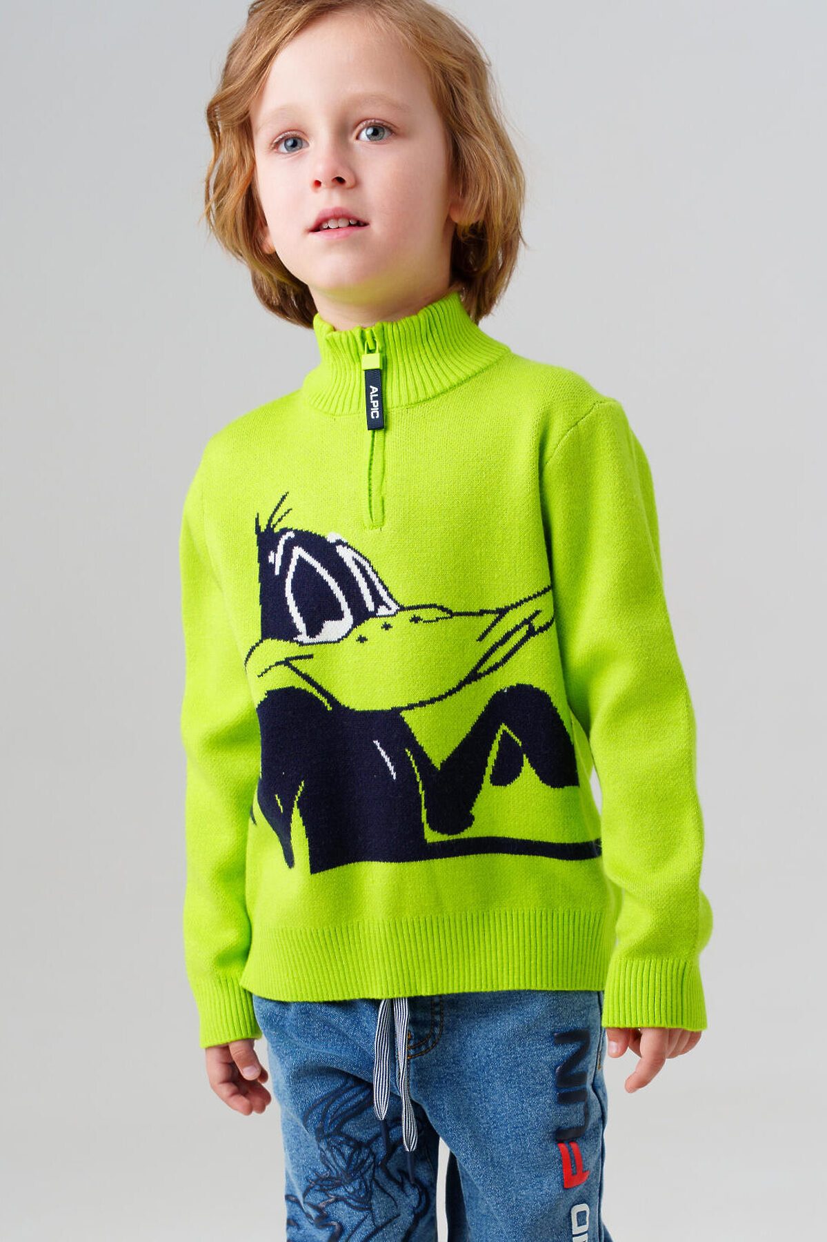 Детский зелёный свитер с принтом Даффи Дака для мальчика от PlayToday — яркая и комфортная модель с лицензионной графикой. Такой свитер поднимает настроение, легко комбинируется с базовой одеждой и идеально подходит как для прогулок, так и для повседневной носки. Преимущества модели: + вискоза в составе — мягкая и дышащая, комфортна к телу, не вызывает раздражения + нейлон — сохраняет форму и устойчив к износу + высокий ворот с молнией — защита от ветра и лёгкость при переодевании + яркий принт с Даффи Даком — эффектный акцент в образе + плотная, но лёгкая вязка — комфорт в прохладное время Советы по стилю: Этот зелёный свитер отлично сочетается с джинсами, спортивными брюками или утеплёнными штанами. Добавьте жилет или куртку — и стильный аутфит для прогулки готов. Для более домашнего варианта подойдёт комбинация с трикотажными брюками. Яркий цвет и мультяшный герой сделают образ запоминающимся и весёлым. Когда и как носить: Идеален для осени, зимы и начала весны. Удобен для детского сада, дома, прогулок или поездок. Высокий ворот защищает шею, а дышащая пряжа не перегревает — комфортно даже в помещении. Подходит для носки под куртку или комбинированно с термобельём в морозные дни. Размеры: 98-122 подойдет для мальчиков дошкольного и младшего школьного возраста. Свитер детский с Даффи Даком для мальчика от PlayToday — это тепло, яркость и немного мультяшного веселья каждый день!